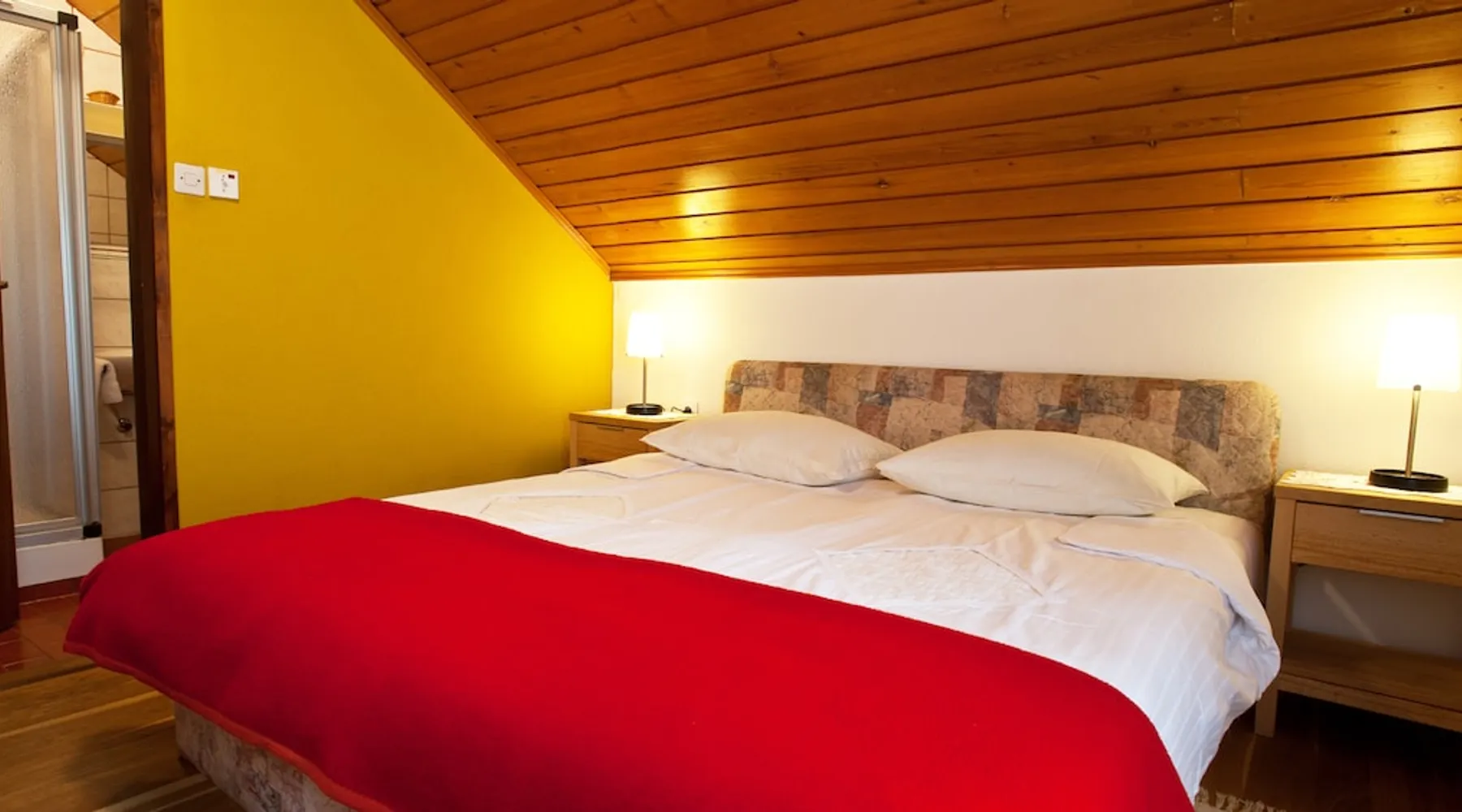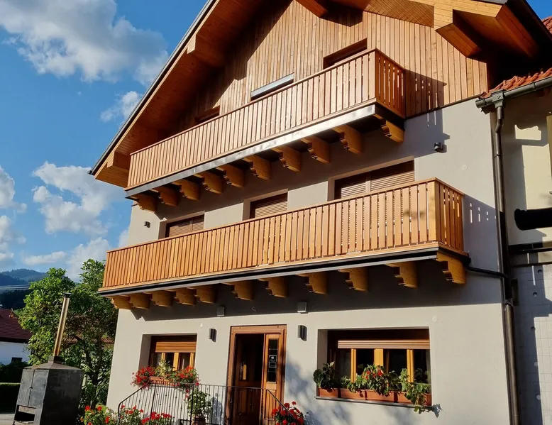 Private room with wooden furniture and floor, there is a big comfortable double bed and private bathroom. Balcony access, mountain view and free WiFi. Free parking in front of the house. The space We are a small countreyside familly-run Guest House located in a picturesque village of the Slovenia Alps. People from all backgrounds are welcome. Guest access Guest can access balcony from the room. Outside terrace, common room in restaurant & bar in the ground floor.