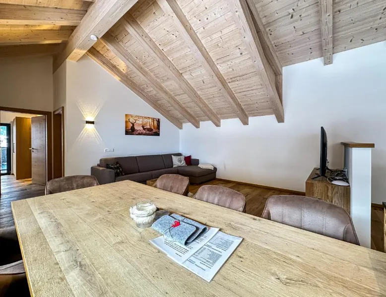 Modern Comforts: Our's Living Penthouse in Hollersbach im Pinzgau offers a fully equipped kitchen, private bathroom, terrace with garden and mountain views, and free WiFi. The apartment includes a sauna, dining area, and outdoor furniture. Convenient Facilities: Guests enjoy free on-site private parking, a elevator, minimarket, waterpark, hairdresser/beautician, bicycle parking, express check-in and check-out, tour desk, luggage storage, and ski storage. Additional amenities include a sofa bed, dishwasher, and TV. Local Attractions: Located 73 mi from Innsbruck Airport, the property is near Krimml Waterfalls (15 mi), Zell am See-Kaprun Golf Course (17 mi), and Casino Kitzbühel (17 mi). Other attractions include Kitzsteinhorn (21 mi) and Kitzbüheler Horn (29 mi). Guest Satisfaction: Highly rated by guests, the kitchen is most liked for its quality and functionality. The sauna is a top feature of this apartment. This spacious apartment comes with 1 living room, 2 separate bedrooms and 2 bathrooms with a shower and a hairdryer. The well-fitted kitchen has a stovetop, a refrigerator, a dishwasher and kitchenware. Boasting a terrace with garden views, this apartment also features a coffee machine and a flat-screen TV. The unit has 3 beds.
