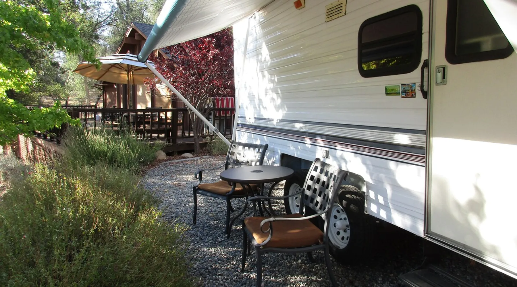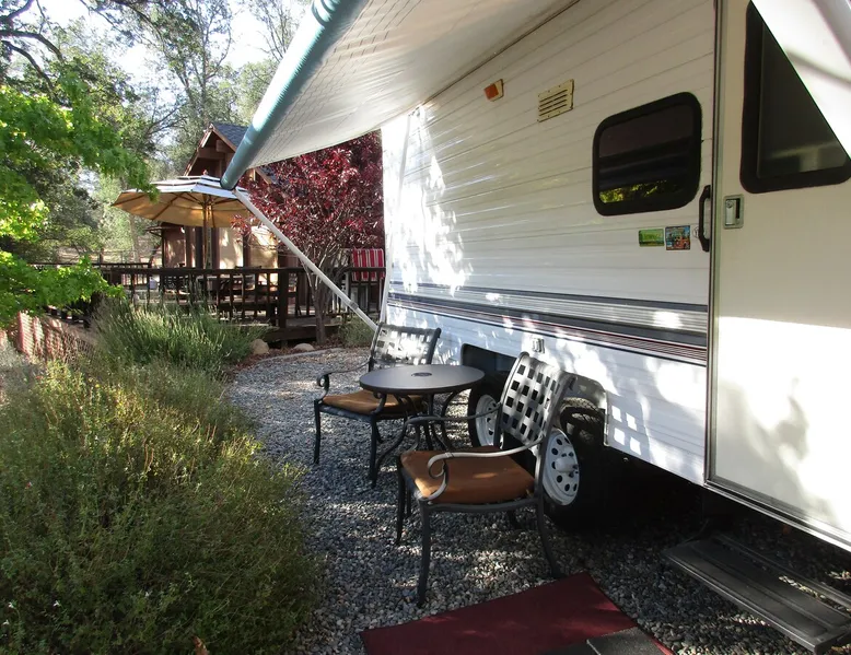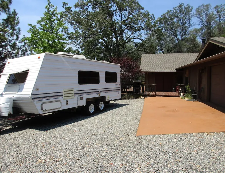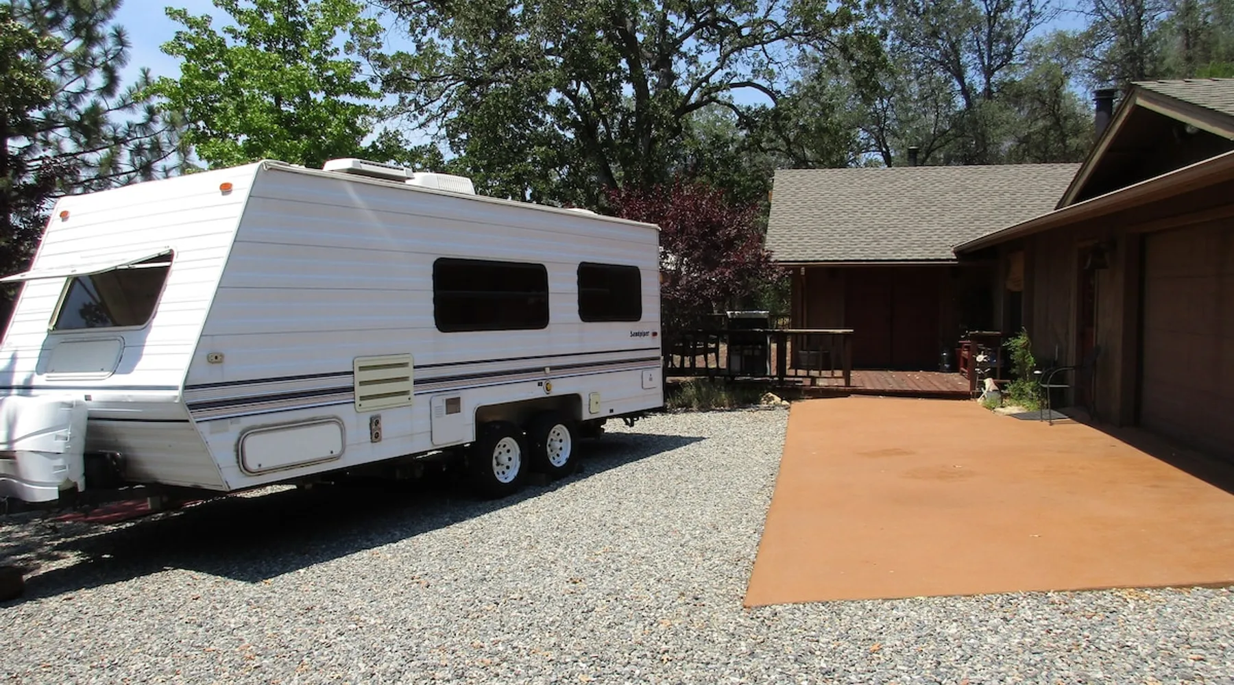 Private quiet setting with views. 20 miles to the south entrance of YNP and the Mariposa Grove on Hwy 41. Then 35 miles to the Valley Floor. 5 miles from Oakhurst. Camper has ac/heat, kitchen with stove top/ micro/ fridge/freezer NO OVEN Shower w/tub with hot water. Very comfortable bedding and wifi. Accommodates 2 people only. PLEASE NOTE: NOT A GOOD FIT FOR TALL PEOPLE.. Check in time 3PM to 10PM. NO NIGHT TIME COOKING ALLOWED AT THIS TIME DUE TO POTENTIAL BEAR ACTIVITY. The space This camper has a partially enclosed DOUBLE gel foam bed and a couch that opens to make a SINGLE bed with a gel foam topper. BOTH BEDS ARE 72 INCHES IN LENGTH. Please notify in advance if two sleeping arrangements are necessary. Guest access Parking in front of camper for easy access. Lights will be on for late arrivals. No later than 10PM.