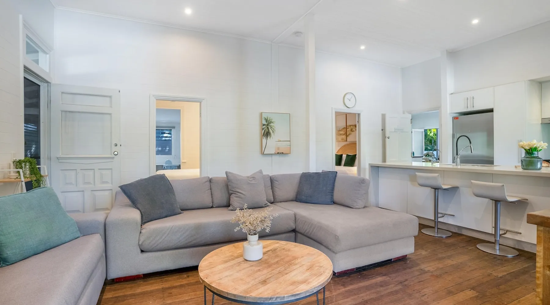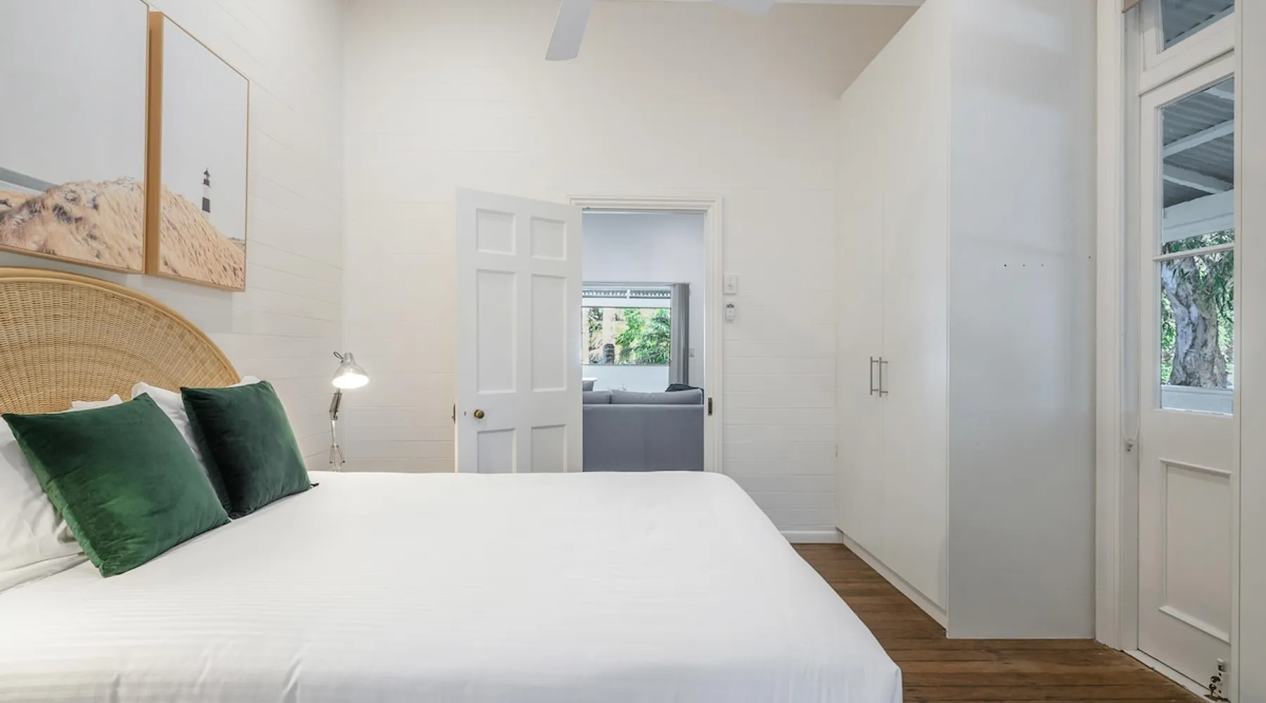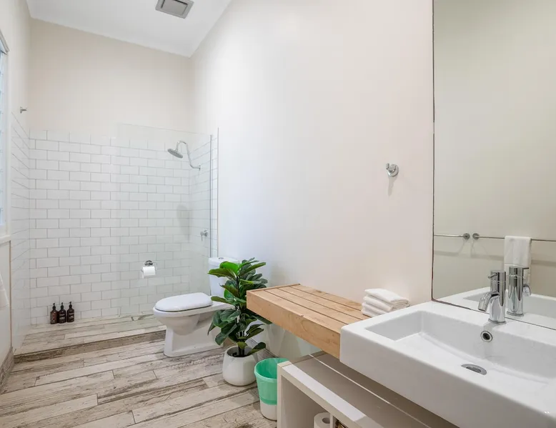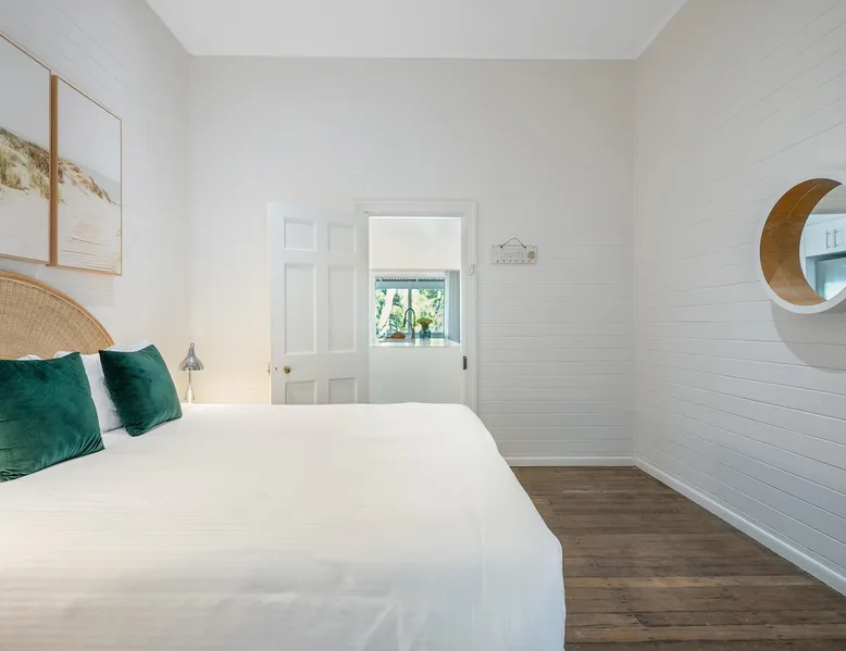 Cove Quarters is nestled close to the heart of Byron Bay, and less than a minute walk by native bush track over small sand dunes to pristine Belongil Beach. The original homestead is a beautiful 2 bedroom space with a glorious wrap around deck and private courtyard featuring a full kitchen, dining, large bathroom, study nook and laundry facilities. The master bedroom features a Queen bed and bedroom two a splittable King. 2 Bedroom, 4-Share, 1 Bathroom The space The original homestead is a beautiful 2 bedroom space with a glorious wrap around deck and private courtyard featuring a full kitchen, dining, large bathroom, study nook and laundry facilities. The master bedroom features a Queen bed and bedroom two has a King. Cove Quarters has a private entrance and use of a shared plunge pool, sauna and steam room. 2 Bedrooms Sleeps up to 4 guests 1 Bathroom Outdoor Parking Equipped Kitchen Dishwasher Microwave Fridge Coffee Beans and Cafe Style Coffee Machine Free WiFi Linen and Bath towels Bathroom Amenities Lounge and dining area Outdoor entertaining area Outdoor shared plunge pool Wrap around decking with outdoor dining table 1 x Flat Screen TV Air conditioner Laundry with Washing Machine and Clothes Dryer Tea and coffee making facilities Other things to note Cove Collective is conveniently located close to Byron Bay town centre, and less than a minute walk by native bush track and over small sand dunes to the sparkling Belongil Beach. The comfortable, airy, open layout of Cove Studios & Cove Quarters is a perfect retreat for singles, couples, newlyweds & honeymooners, as well as intimate groups of up to 14 friends to relax in complete privacy, while still enjoying the atmosphere and activities of Byron Bay. Cove Collective comprises of 5 x fully self-contained studios, sleeping up to 10 people along with a two bedroom cottage which accommodates up to 4-guests. Each room is equipped with its own ensuite and private entrance. With a relaxing outdoor lounge area, there is no better spot to enjoy a lazy afternoon with a book or a post-beach drink. A tranquil spa-courtyard offers the ultimate relaxation retreat with a steam room, dry sauna, Roman plunge pool and private sun-bathing just steps from your room. Experience the cozy, coastal cottage vibes of Cove Collective. Registration Details PID-STRA-31597