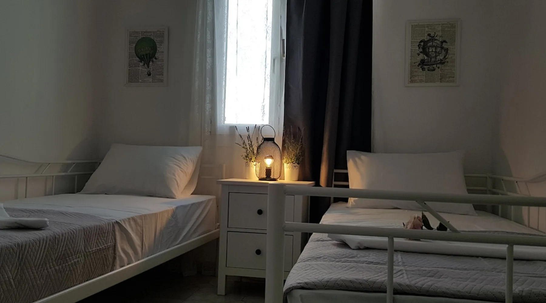 This traditional island residence has been hosting all our summer memories ever since my local grandparents inherited to us. I’m sure you’ll love it like all my guests loved it all these years. Its unique location at the very heart of the Chora makes it ideal for everyone looking for the real island vibes. One step away from the central square yet quiet enough for relaxation. Its 2 comfortable bedrooms can accommodate up to six island-lovers. The space The house includes one bathroom, a cozy living room with an extra double sofa bed decorated in delicate white shades, a spacious bathroom and a fully newly equipped kitchen (coffee machine, boiler, electric oven, sandwich toaster and slice toaster, hairdryer, washing machine ). You don’t have to worry about the warm Greek temperatures as this place disposes two newly established eco-friendly air condition machines of highest technology. Registration Details 00001767392
