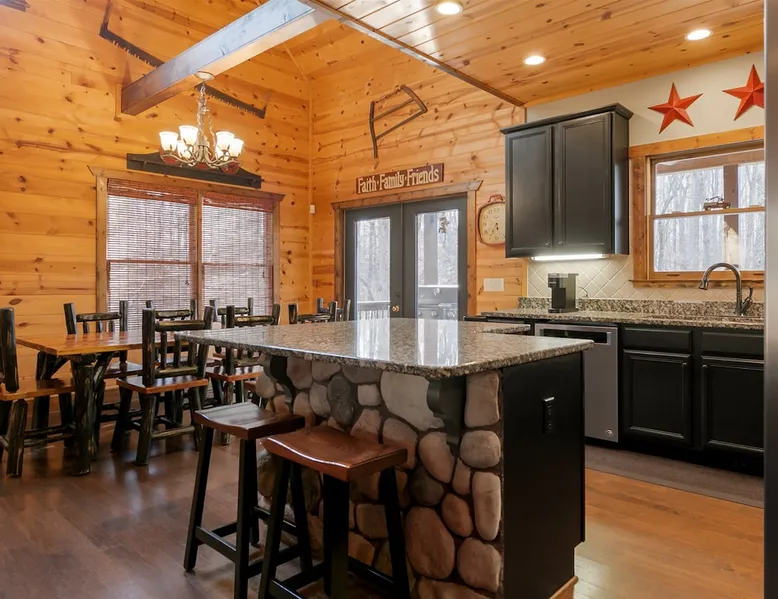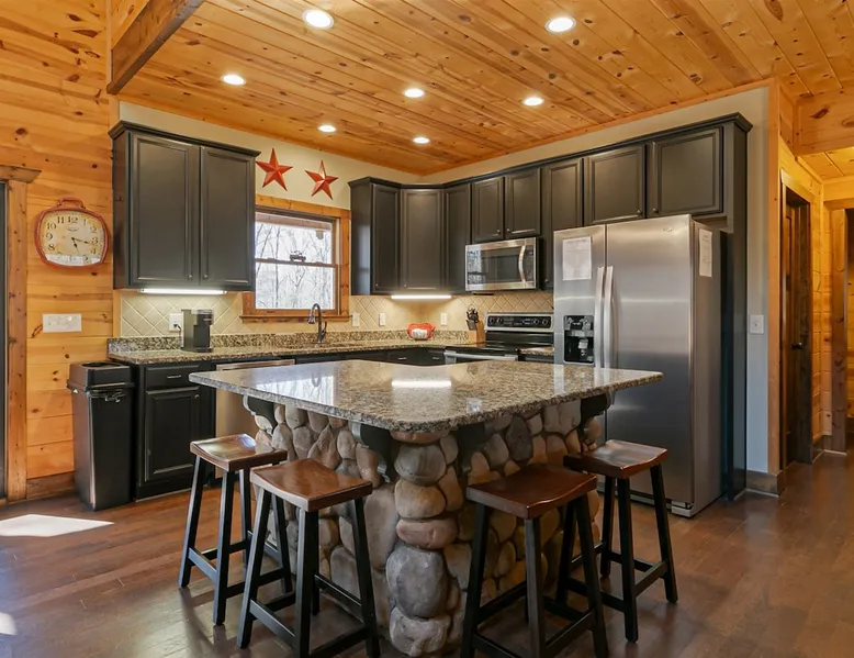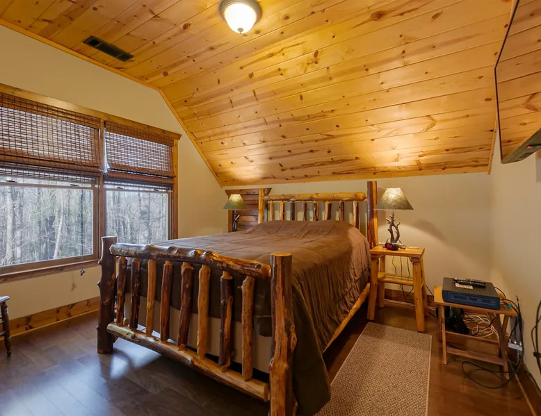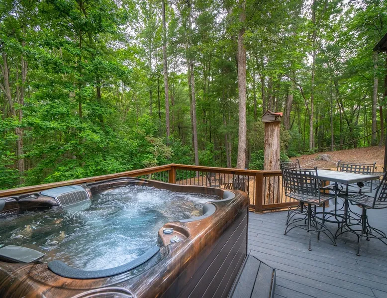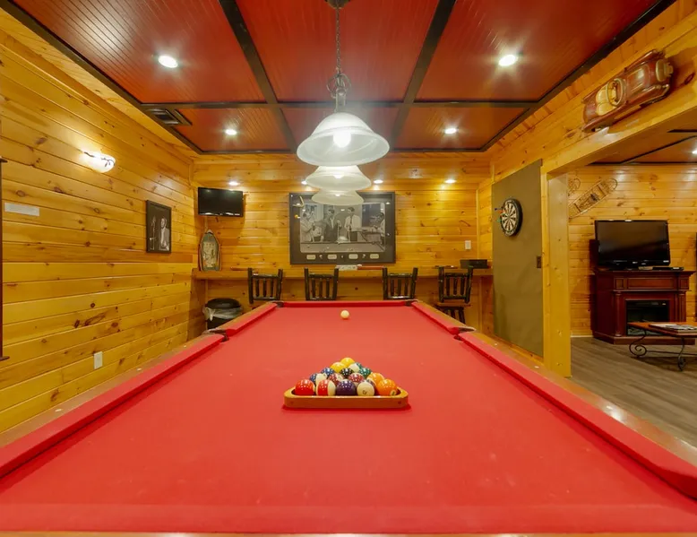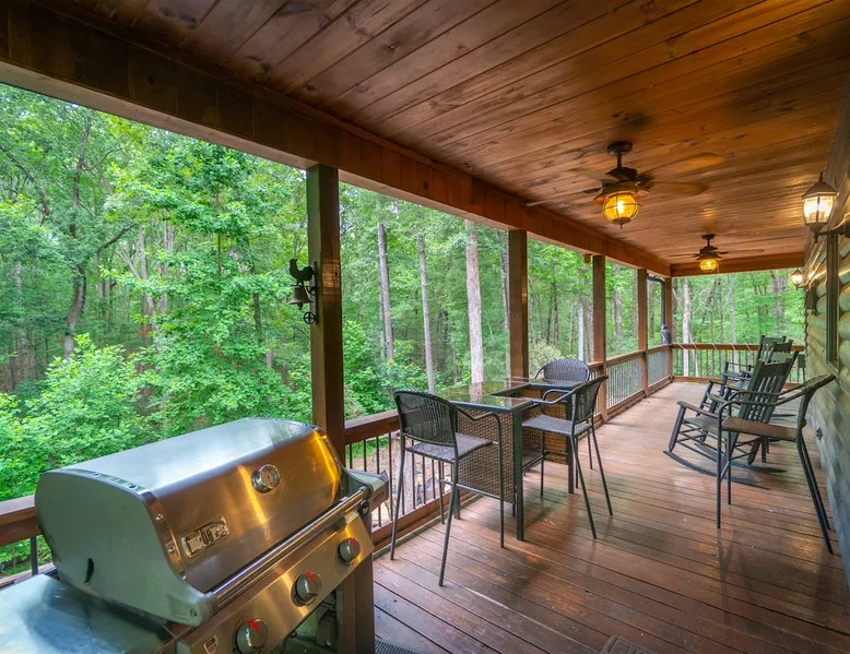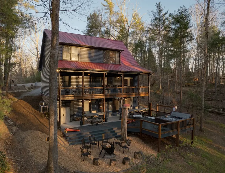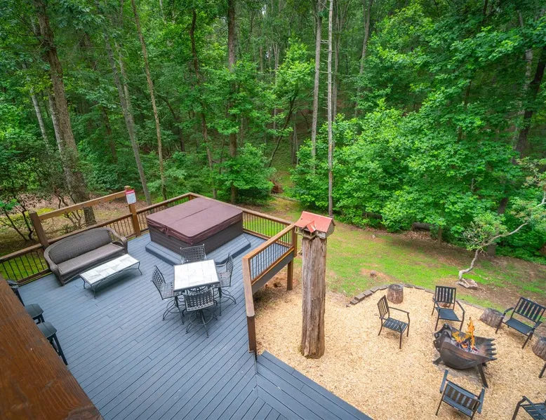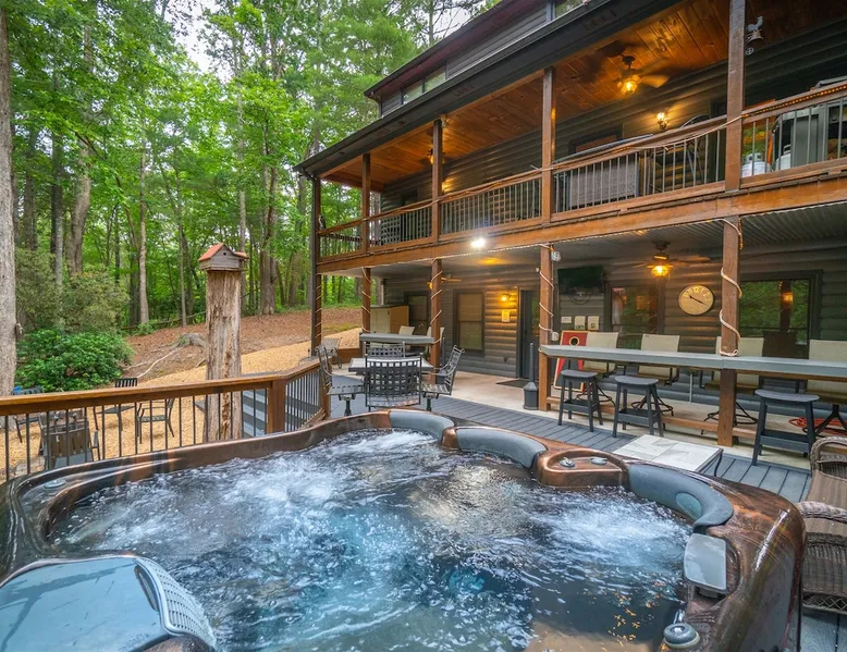 Big Timber is a Prime Mountain retreat with hot tub on a beautiful pond with gated privacy ideally located just south of Helen, Ga. in beautiful mountain surroundings on an idyllic private mountain lake. Whether you want to relax in privacy on the front or back covered porches or have fun swimming, canoeing, or fishing on the private lake, Big Timber has so much to offer! The space Big Timber Lodge is an experience you do NOT want to miss! Big Timber is ideally located just south of Helen, GA in beautiful mountain surroundings on an idyllic private lake. Whether you want to relax in privacy on the front or back covered porches or have fun swimming, canoeing, or fishing on the private lake, Big Timber has so much to offer. For fall and winter time guests on those cold evenings, cozy up around the outdoor firepit and roast some marshmallows or sip on some hot chocolate as you gaze into the firelight. Enjoy preparing food in the well-equipped kitchen for friends and family while you chill your newly bought bottle of wine from one of the many local wineries. Or for that afternoon nap or a good night’s sleep, you can find seclusion in the private master suite and wash the day away in the jetted garden tub. There is more than enough room for your friends and family in this grand lodge! This spacious 2-story home has an overhanging loft and ample room for up to twenty people to sleep comfortably. Once you find yourself wandering downstairs, you'll find the fully finished terrace level with a full-size pool table and additional family room with a bar to kick back and cheer on your favorite team on the 2 large HD TVs. After you've explored inside Big Timber Lodge, step outside and look at all the possibilities for fun and relaxation. Relax in the large 7-person hot tub under the stars. You may even decide to walk down Big Timber Trail to the small private community lake and enjoy the private dock with supplied canoes for fishing and boating. Other things to note 25+ age requirement for lead guest. No exceptions. This property is not pet-friendly. No exceptions. Digital rental agreement will be required to sign and complete after property is booked. Firewood not supplied.