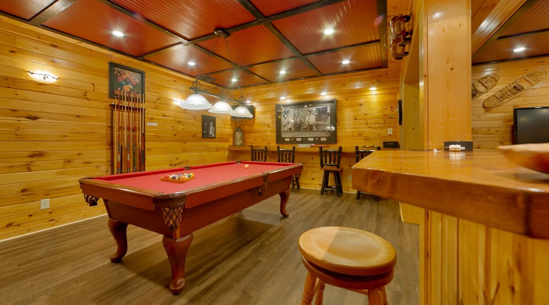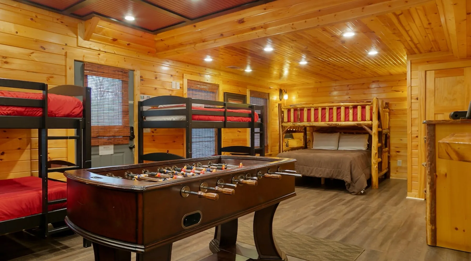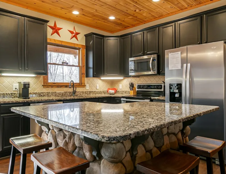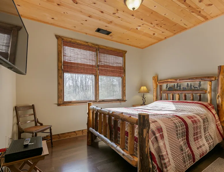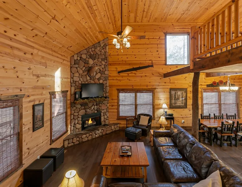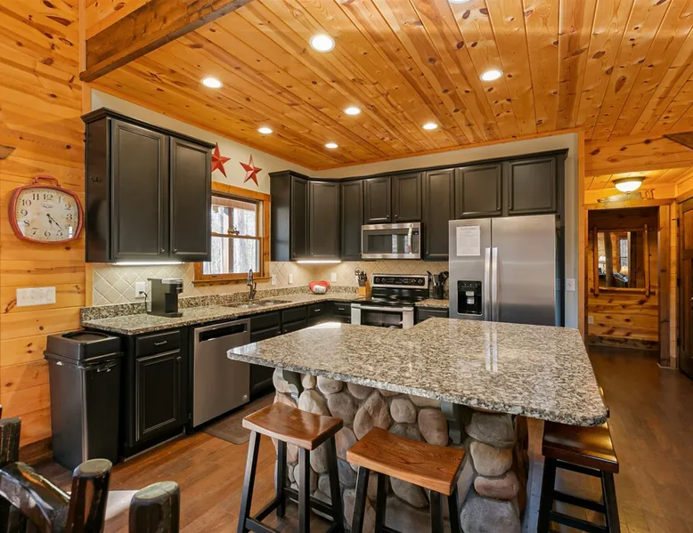 Big Timber is a Prime Mountain retreat with hot tub on a beautiful pond with gated privacy ideally located just south of Helen, Ga. in beautiful mountain surroundings on an idyllic private mountain lake. Whether you want to relax in privacy on the front or back covered porches or have fun swimming, canoeing, or fishing on the private lake, Big Timber has so much to offer! The space Big Timber Lodge is an experience you do NOT want to miss! Big Timber is ideally located just south of Helen, GA in beautiful mountain surroundings on an idyllic private lake. Whether you want to relax in privacy on the front or back covered porches or have fun swimming, canoeing, or fishing on the private lake, Big Timber has so much to offer. For fall and winter time guests on those cold evenings, cozy up around the outdoor firepit and roast some marshmallows or sip on some hot chocolate as you gaze into the firelight. Enjoy preparing food in the well-equipped kitchen for friends and family while you chill your newly bought bottle of wine from one of the many local wineries. Or for that afternoon nap or a good night’s sleep, you can find seclusion in the private master suite and wash the day away in the jetted garden tub. There is more than enough room for your friends and family in this grand lodge! This spacious 2-story home has an overhanging loft and ample room for up to twenty people to sleep comfortably. Once you find yourself wandering downstairs, you'll find the fully finished terrace level with a full-size pool table and additional family room with a bar to kick back and cheer on your favorite team on the 2 large HD TVs. After you've explored inside Big Timber Lodge, step outside and look at all the possibilities for fun and relaxation. Relax in the large 7-person hot tub under the stars. You may even decide to walk down Big Timber Trail to the small private community lake and enjoy the private dock with supplied canoes for fishing and boating. Other things to note 25+ age requirement for lead guest. No exceptions. This property is not pet-friendly. No exceptions. Digital rental agreement will be required to sign and complete after property is booked. Firewood not supplied.