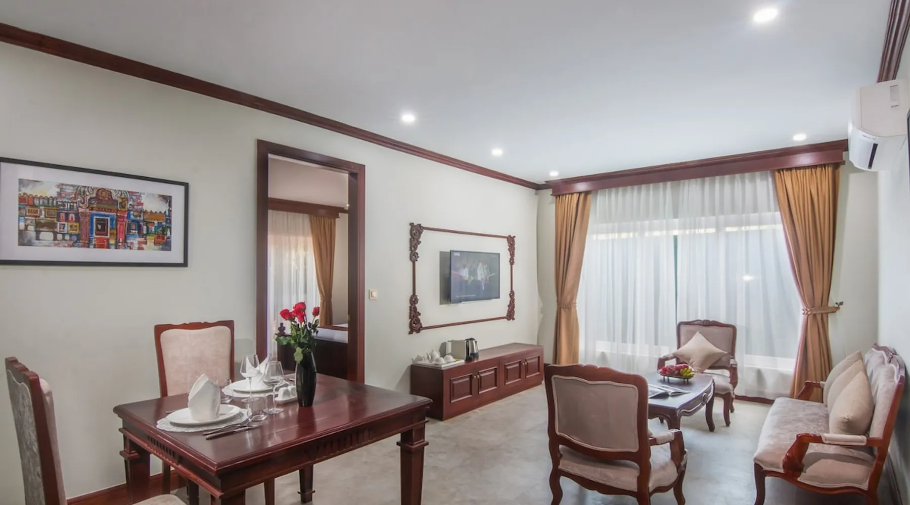 Peacefully situated in the heart of Siem Reap, Anachak Angkor Residence is away from all the traffic of the bustling city. It’s a real pleasure to enjoy Siem Reap in a complete sense of relaxation at Anachak Angkor while visiting the world’s largest religious monument, Angkor Wat. The awe-inspiring residence is designed to host discerning travelers in a classic luxury Cambodian townhouse where the Khmer hospitality has to offer at its finest. The space Peacefully situated in the heart of Siem Reap, Anachak Angkor Residence is away from all the traffic of the bustling city. It’s a real pleasure to enjoy Siem Reap in a complete sense of relaxation at Anachak Angkor while visiting the world’s largest religious monument, Angkor Wat. Guest access It is a classic design with a luxury concept. It's more then a bedroom which suitable for short or long term stay. During your stay If you stay with us. There are many thing to do around the area, also we have in house Restaurant (Asian and Wester cuisine), Spa service, Pool, Fitness center, tour arrangement, transportation. Other things to note Check in time: 14:00 Check out time: 12:00