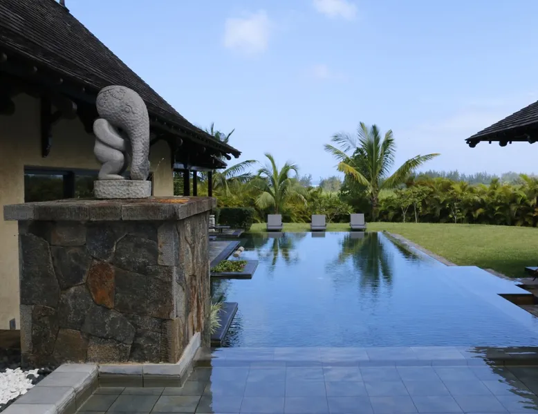 In the area of Belle Rivière, near the Sofitel So Mauritius, this magnificent villa of 370 m2, with 6 tastefully decorated rooms, can accommodate families or groups of friends. The warm and attentive housekeeping staff will always take care of everything (Mauritian hospitality is not a legend!). There are many excursions and discoveries in this beautiful southern region, still wild, which is why we recommend a car The space 3 suites and 3 bedrooms with double bed, 5 baths Large private infinity pool with children's pool Security deposit: €500 Other things to note You will be able to benefit from the infrastructure and services of Sofitel So Mauritius, which is located in the same property - non-motorized water activities (windsurfing, dinghy, canoeing, pedal boat, paddle board, snorkeling,), package of 1200 Rs (approx. 32€) per person per day - Glass bottom boat at Rs 400 (approx. 10€) per adult and Rs 200 (approx. €5) per child (below 12 years) -10% discount on restaurants and bars - 20% discount on the spa from 9am to 1pm and 10% discount after 1pm - free beach but no beach towels provided - Access to sunbeds and free pool - Access to the gym in Rs 2000 (approx. 54€) per person per week - Access to Kids Clubs at Rs 2400 (approx. 64€) per child (3-12 years) per day - Rental of a pack of 2 rackets and 4 tennis balls at Rs 500 per hour Services and conditions that may change; to be confirmed by the hotel upon arrival