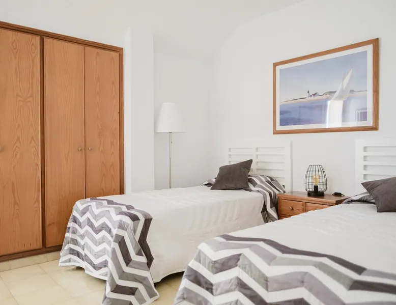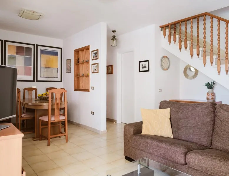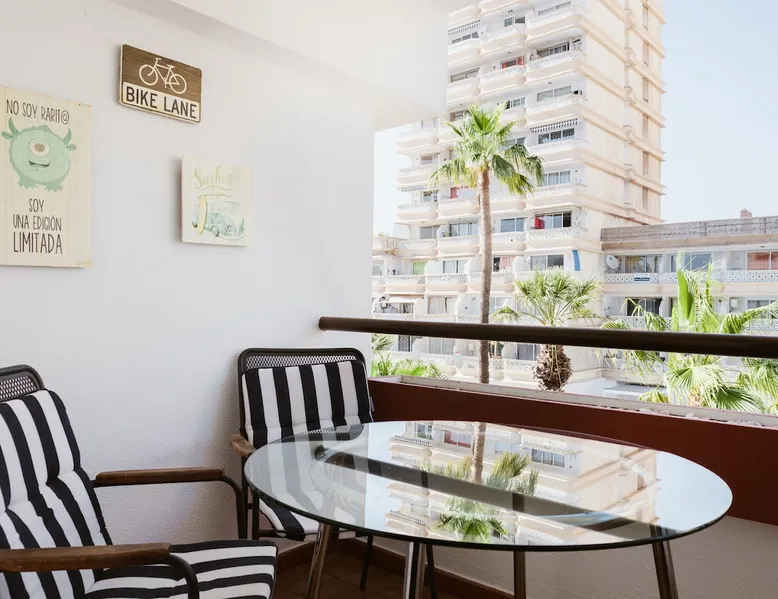 The Melo Sur apartment is a bright two-bedroom duplex, located in the heart of Playa Las Américas. Ideal for walking, relaxing, going to the beach, shopping or having fun. After the pandemic, we clean and disinfect. A three-minute walk away, you can enjoy the “Golden Mile”, an impressive promenade parallel to the seafront avenue where you can find all kinds of shops, a variety of restaurants, and shows. After the pandemic, we clean and disinfect. The space The idea is to make you feel comfortable and safe at home. Enjoy the apartment. Use everything in it. TV, free WiFi, card games, books, dominoes... hammocks in case you want to spend the day lying on the beach. If there's a baby in your family, let me know and we'll put up a crib. If you need a gym, you'll find the best gym in Playa Las Américas across the street. The pools are NOT heated. We don't need it because they have a pleasant temperature. Guest access The complex has swimming pools. One of them is just for boys and girls. The other, larger one is 25x8 meters. Sunbathing area. Gardens with benches to enjoy the environment. Other things to note I like to travel with my family. That's why I'm in favor of hosting dogs in my apartment, as they're one of the family. And because we love them like other family members, we're responsible for them. Therefore, I strongly urge you to let me know if you are coming with a pet animal and, for the sake of coexistence and hygiene, please pick up their droppings inside and outside the house. Keep it on a leash and abide by community standards. Registration Details A-38-4-0006845