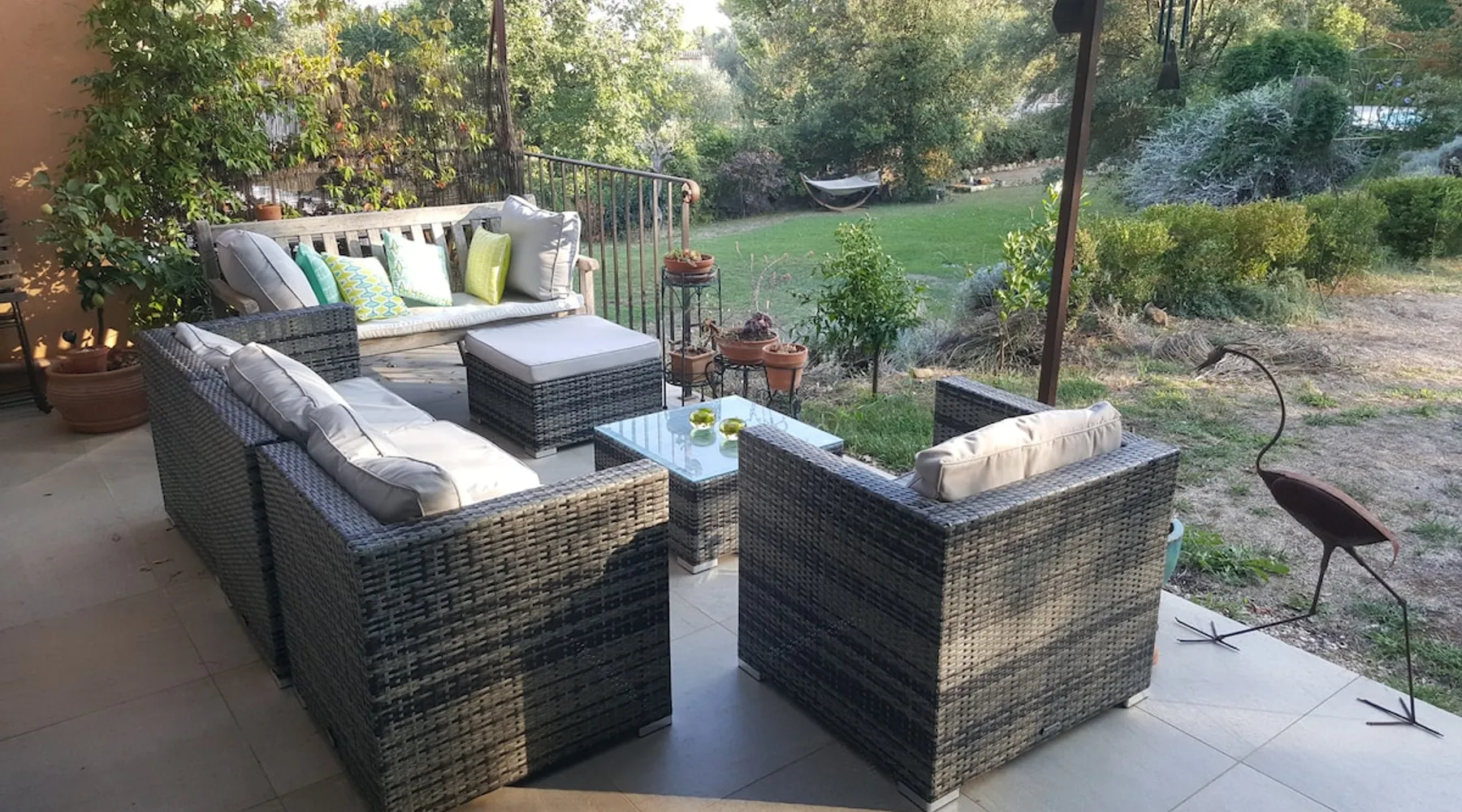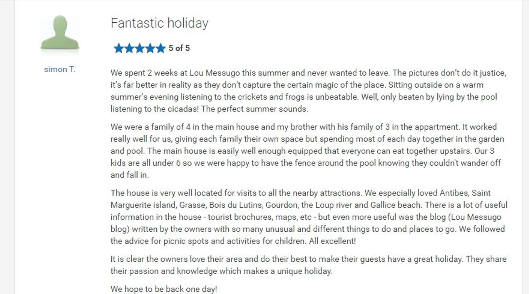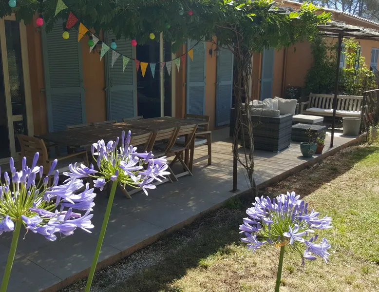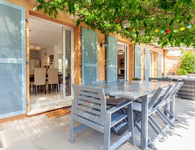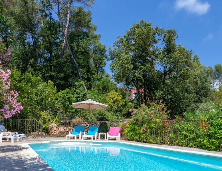 Beautiful sunny villa with fenced pool suitable for a large family/2 smaller families or multi-generational family holidays in quiet neighbourhood close to shops and restaurants. NOT SUITABLE FOR GROUPS OF FRIENDS/PARTIES. 15 minutes drive to nearest beach, ideally located to visit the French Riviera. 2 EV charging plugs. The space This beautiful, light, sunny house, 'Lou Messugo', is our family home which we rent out for a few weeks every summer (mid July - mid August approx). It comprises the main house with a 60 m2 living space and open plan kitchen dining room, 3 double bedrooms and a fully self-contained, independent apartment which sleeps up to 4 people (which we rent out for the rest of the year as a holiday let, see my other listing). There are 3 bathrooms and toilets (one ensuite from the master bedroom). The house is decorated throughout with a fresh modern look. It is south-facing, sunny & light and has 2 separate terraces equipped with outdoor furniture for 10 and 2 BBQs (gas), perfect for relaxed outdoor dining under the wisteria. The large child-friendly garden has a trampoline, boules pitch, ping-pong table and a fully fenced pool. Both the main house and the apartment are equipped with satellite TV, HiFi/smart speaker, USB ports for your own music and free fast WiFi. The main kitchen is modern and of the highest quality. It comes fully equipped with all cooking utensils, crockery, cutlery, a large fridge/freezer, dishwasher, microwave, induction hob, fan oven and espresso maker coffee machine (pads not capsules) + cafetières. Being keen cooks ourselves there are many extra items available (such as blenders, food processors etc) to cook up a provençal feast. The apartment kitchen is small but practical with everything you need provided too. There is a large laundry room with washer and dryer and storage space for bikes and other bulky equipment. The house is located in a quiet residential area within walking distance of the centre of a small town with shops, restaurants, banks, etc. We have a large garden (2000 m2), as do all our neighbours so no one is on top of each other. It is planted with Mediterranean plants, lots of lavender and other aromatic plants, majestic 30 m tall pines and oaks, providing plenty of shady spots to keep cool in on hot summer days. On site, as well as the POOL, we have a range of facilities including a large trampoline, pétanque pitch, table tennis, badminton & croquet. To make your holiday perfectly relaxing there is also a hammock for snoozing in after a long lunch! To make life easy for families we can provide all necessary equipment for travelling with babies/toddlers such as a travel cot, high chair, plastic plates/cutlery/cups, changing mat and a good selection of toys/books/DVDs. We know just how much paraphernalia the smallest members of the family come with as we've been there! Lou Messugo is ideally located between mountains and sea, only 20-30 mins to beautiful beaches and the buzzing towns of Cannes, Nice, Antibes and Grasse, 50 mins to Monaco and an hour to Italy as an added bonus! This area really does offer something for everyone: stunning scenery, adventure sports, beaches, shopping, hiking, mountain biking, golf, fabulous food, gorgeous medieval hill villages, art galleries, provençal markets, wine tasting at local vineyards and much much more. Please see the reviews from past guests in the apartment for verification of this! The village is on the main bus route from Nice to Grasse (the world centre of the perfume industry) and the stop is 5 mins walk away but to get the most out of this fabulous area we strongly suggest you have your own vehicle. There is onsite secure parking for 3 cars. We are 25 mins drive from Nice International airport which is served by BA, Easyjet, Air France, Delta, KLM, Emirates and many more national and budget airlines. Our house is perfect for 2 families holidaying together or one large family with several generations (grandparents in the apartment for example). Please take a look at the Guide Book I prepared for my other listing (the apartment on site available all year round) to give you an idea of some of the great things you can do in the area. It's far from exhaustive as there's just so much more on offer particularly in the category of restaurants. It would be impossible to list all the fabulous places to eat from cosy local cafés to gourmet bistros and gastronomic palaces! Many of my favourite places don't show up on the map search for this guide book but I'd be delighted to tell you about them. Please feel free to ask me for tips and local knowledge. Guest access Everything except locked cellar and 1 locked room Other things to note We have 2 EV chargers available for your use free of charge during your stay