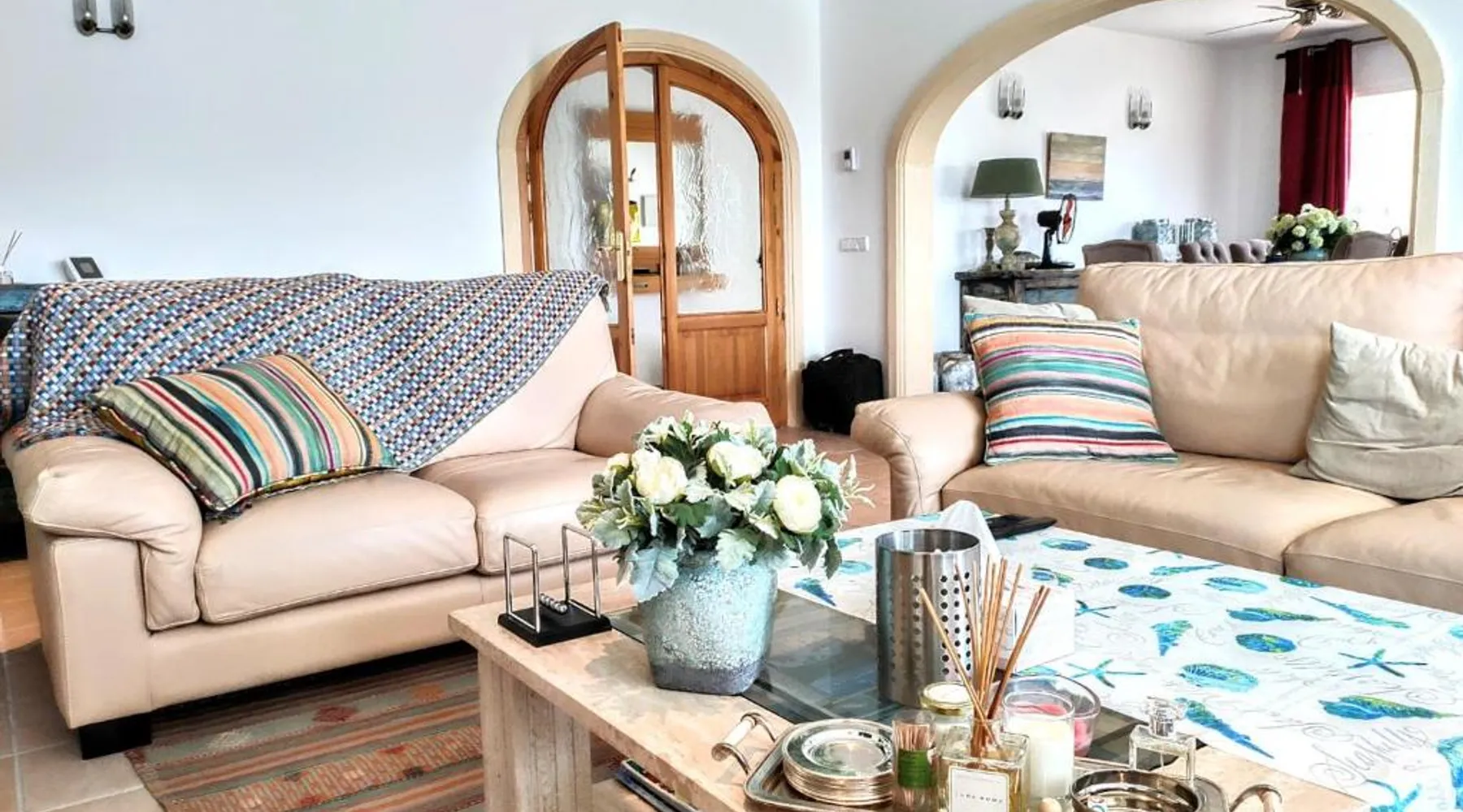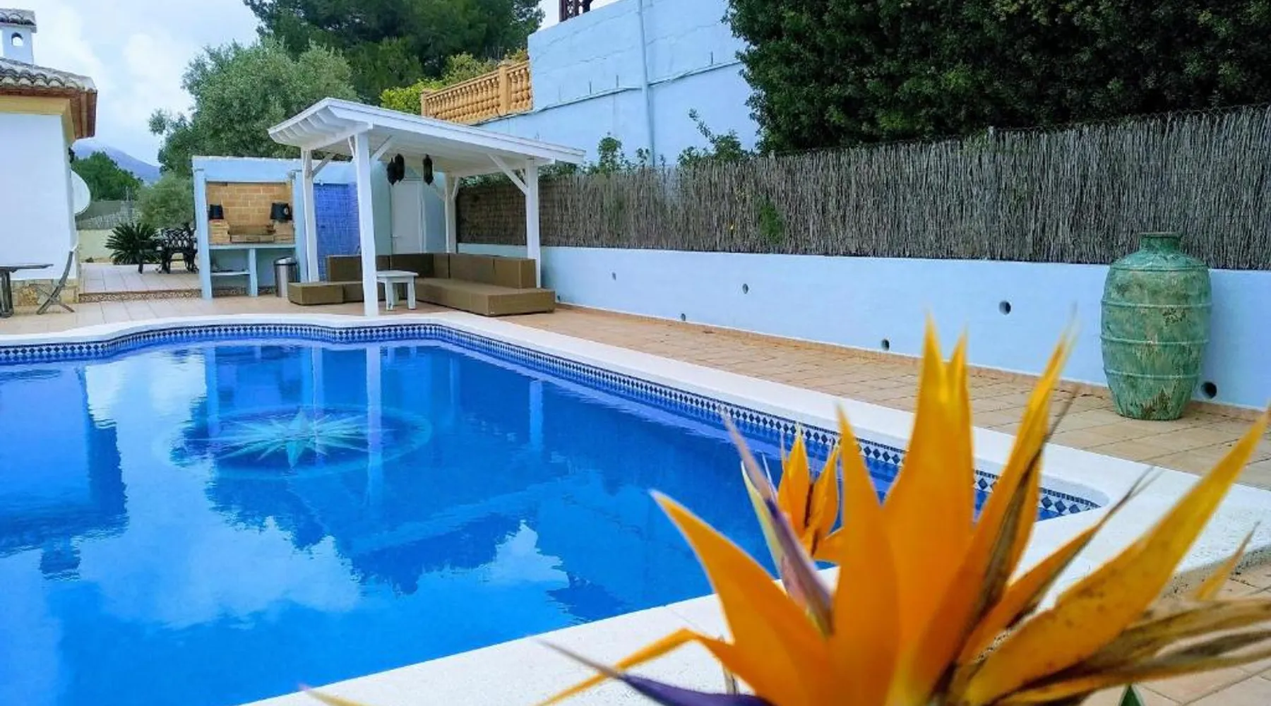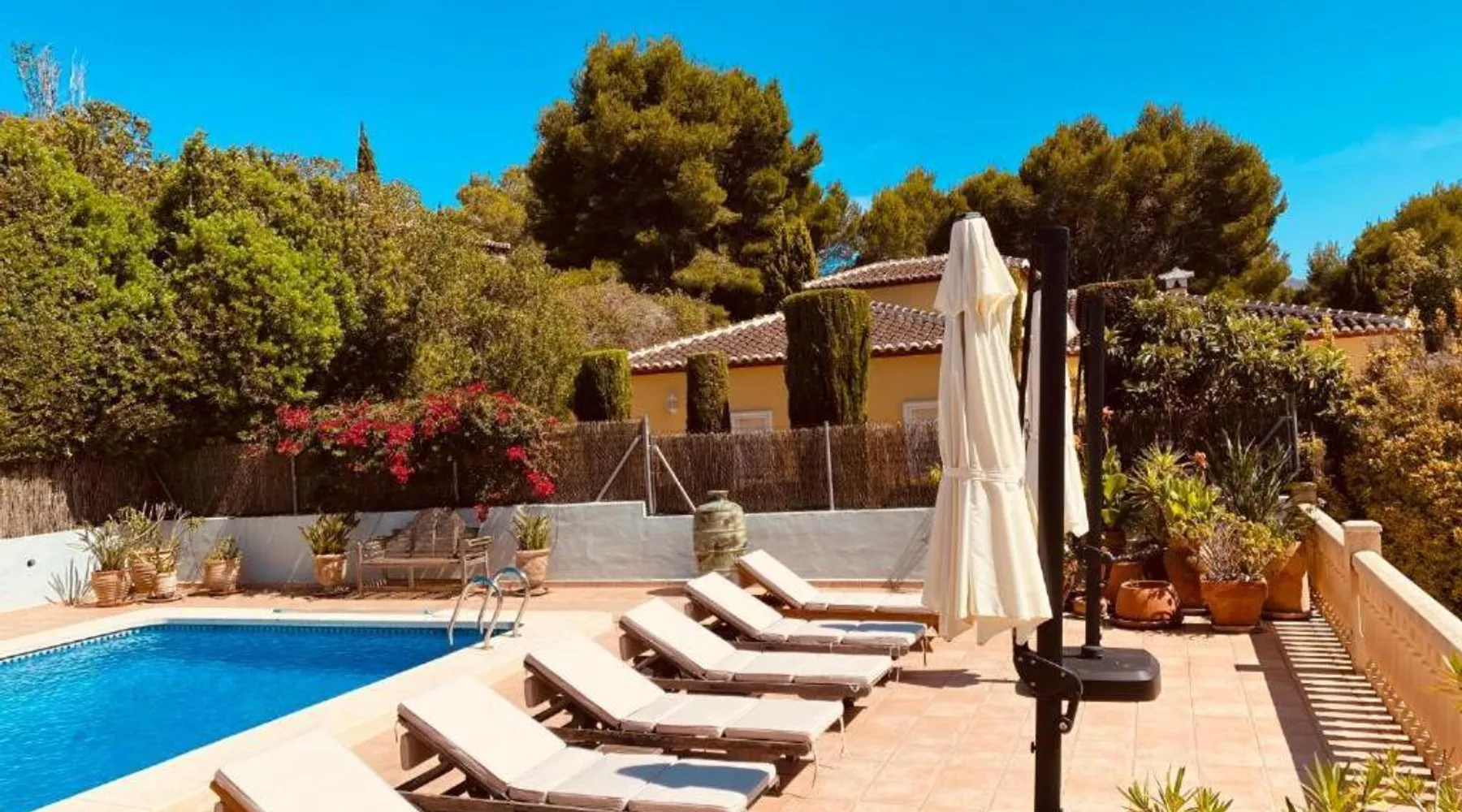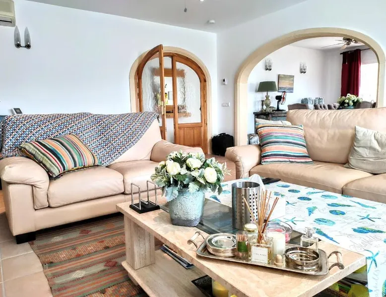 Spacious Accommodations: Holiday Home Rafalet Javea in Jávea offers a spacious villa with three bedrooms and three bathrooms. The property includes a living room and family rooms, ensuring comfort for all guests. Outdoor Amenities: Guests can enjoy a swimming pool with a view, sun terrace, and garden. Additional features include an open-air bath and free WiFi, providing relaxation and connectivity. Convenient Facilities: The villa provides free on-site private parking, air-conditioning, and a fully equipped kitchen. Outdoor seating areas and a barbecue enhance the leisure experience. Local Attractions: Located 61 mi from Alicante–Elche Miguel Hernández Airport, the property is near La Sella Golf (6.8 mi) and El Montgó (8.1 mi). Other attractions include Terra Natura and Aqualandia, each 28 mi away. Guests will have a special experience as the villa offers a pool with a view. Featuring a private entrance, this air-conditioned villa consists of 2 living rooms, 3 separate bedrooms and 3 bathrooms with a walk-in shower and a bath. Guests will find a stovetop, a refrigerator, a dishwasher and kitchenware in the well-fitted kitchen. The villa also provides guests with a barbecue. The spacious villa provides a washing machine, a tea and coffee maker, a seating area, a flat-screen TV with satellite channels, as well as garden views. The unit offers 5 beds.