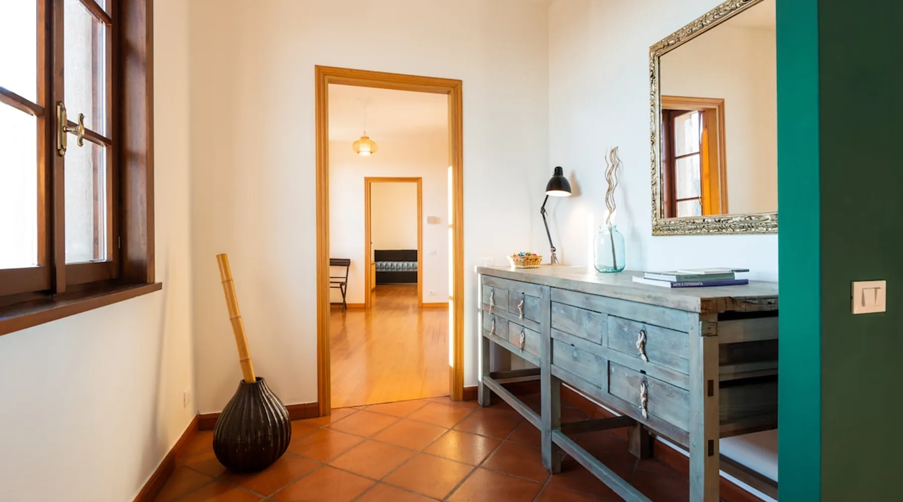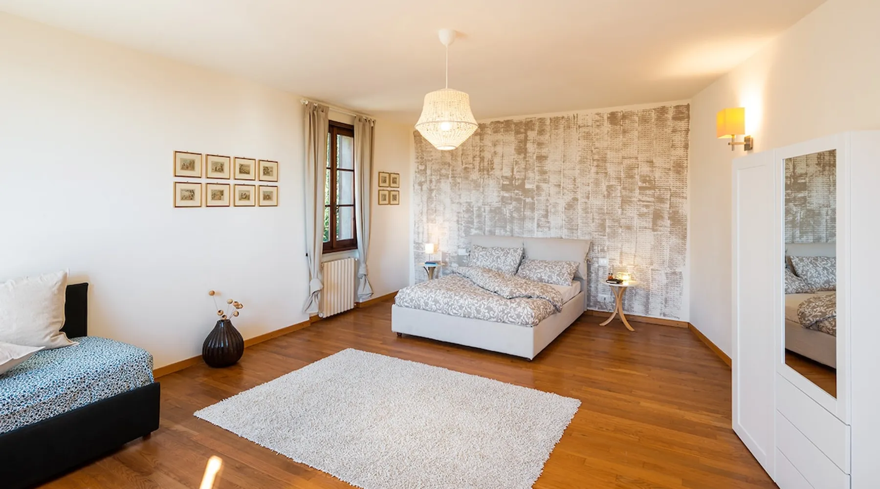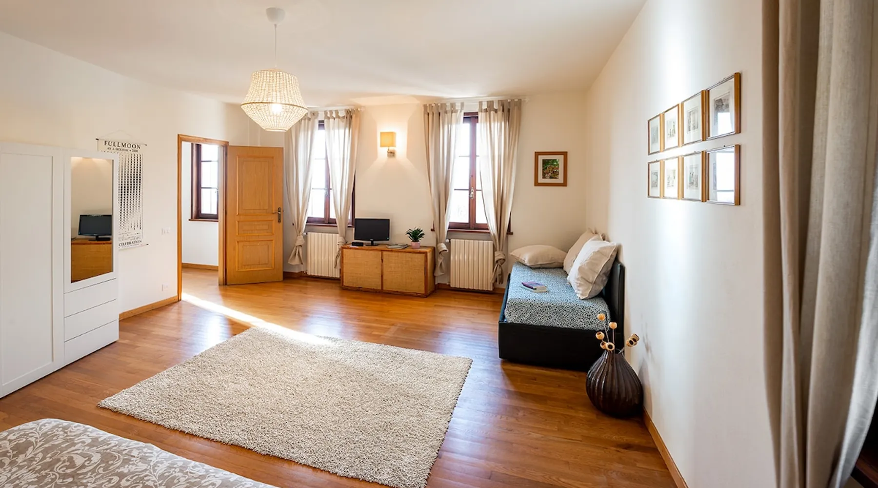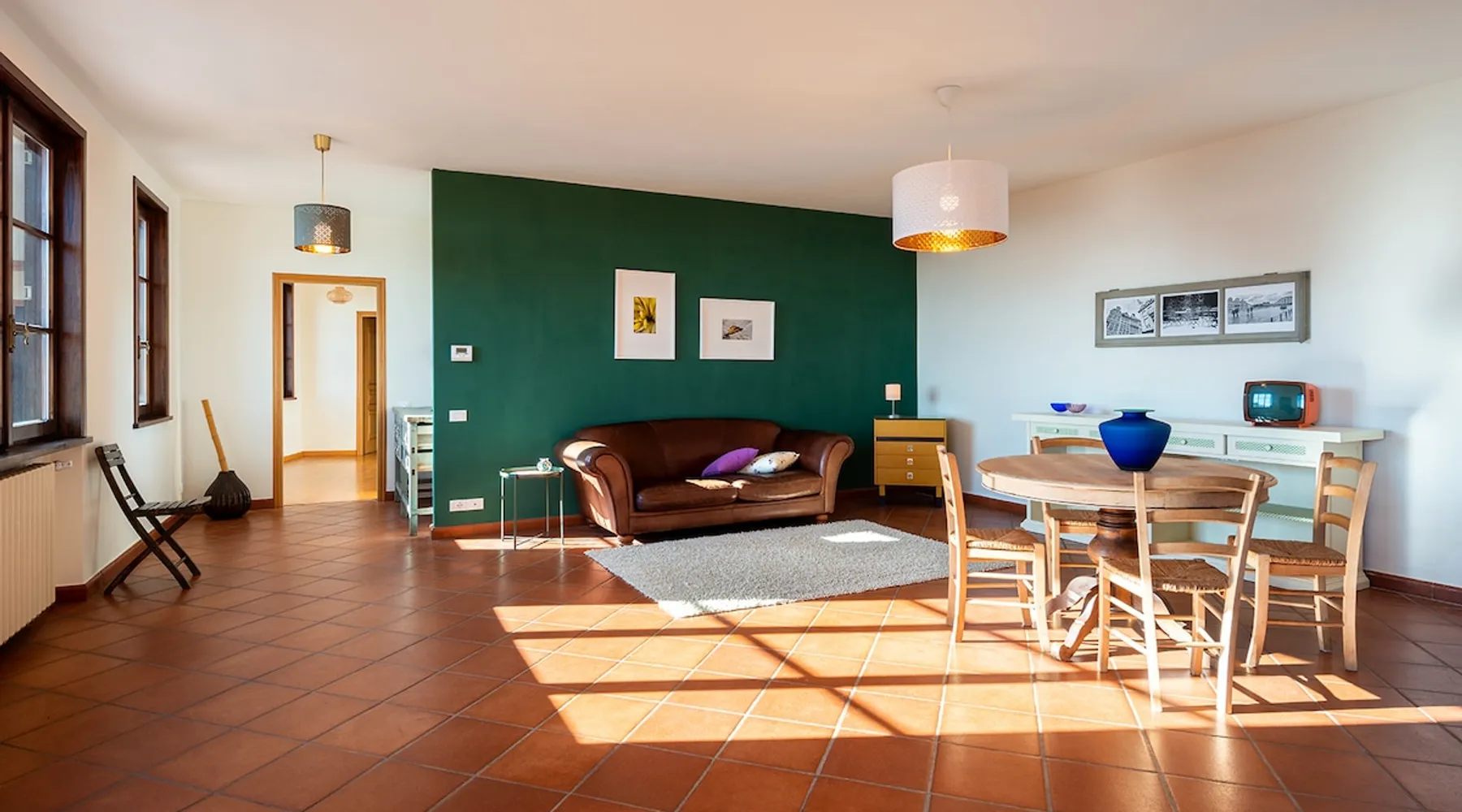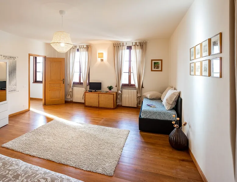 L'edificio si trova ad una altitudine di circa 500 m, immerso nei boschi di castagno, robinia e faggio. La nostra proprietà comprende un ampio frutteto con orti e zona verde per il riposo. L'appartamento luminoso e ampio (170 mq) è arredato con mobili e complementi recuperati o realizzati da noi . Le camere e i bagni decorati sono ispirati al tema "Macramè" e "Clorofilla". La grande cucina abitabile è attrezzata e possiede un camino a legna funzionante per cucinare e diversi piani d'appoggio Nella stagione calda sarà possibile consumare la colazione sulla grande terrazza al piano terra, sotto il pergolato dell'uva. Vi allieterà la rilassante vista sulla pianura ed i colli di Bergamo. Abitando al piano inferiore, saremo a disposizione per qualsiasi problema logistico, per consigli sui diversi percorsi turistici e solo per chi lo desidera, socializzare con i nostri ospiti. La casa di Paolo si trova a Casagno, Lombardia, Italia. La zona circostante offre molteplici e variegate proposte per il tempo libero. Dalla semplice passeggiata nei boschi di castagno, a percorsi montani più impegnativi. Dal percorso ad anello attorno al campo da golf, per gli amanti del jogging, al volo con parapendio. Molto apprezzato il percorso artistico /architettonico che comprende l'eccellenza Romanica del Tempio di San Tomè, le chiese di San Giorgio e San Nicola. Presente in quest'ultima, l'Organo Antegnati, uno dei pochissimi esempi di organo rinascimentale di scuola italiana. Con orgoglio, segnaliamo l'attribuzione da parte del Touring Club della BANDIERA ARANCIONE, riservata alle località con interesse storico, artistico e paesaggistico. Vedi link allegato: https://www.bandierearancioni.it/borgo/almenno-san-bartolomeo Mentre per chi desidera momenti di estremo relax, a 9 km, potrà godere dei benefici di un'ottima Family SPA. A breve distanza potrete percorrere a piedi o in bicicletta (possibilità di noleggio ) la ciclabile che corre lungo in fiume Adda, circondati dalla ricca flora e fauna, attraversarlo utilizzando il famoso Traghetto di Leonardo o visitare l'omonimo Ecomuseo. Distiamo 15 km dal centro di Bergamo, con l'incantevole Old Town circondata dalle mura Venete, e 30 km dalla cittadina di Lecco che si affaccia sul lago di Lecco/Como. La metropoli di Milano dista 50 km e con una trasferta di circa 1,5 h si può raggiungere il Lago di Garda per visitare l'incantevole piccola penisola di Sirmione, con le Grotte di Catullo, Salò, Limone, o la città di Verona. L'aeroporto Internazionale di Orio al Serio, dista 25 km dalla nostra abitazione, con possibilità di collegamenti a mezzi pubblici ( autobus e treno ). Previa richiesta, possiamo fornire il servizio navetta ad un costo di € 20.00 a viaggio. Non serviamo personalmente la prima colazione, ma offriamo ai nostri ospiti gli alimenti di prima necessità: Tè, caffè, zucchero, marmellata, burro, olio... Tra le attività che proponiamo, per arricchire e rendere maggiormente piacevole il vostro soggiorno, sarà possibile, a richiesta, apprendere le basi del tiro con l'arco, partecipare a mini corsi di fotografia e disegno