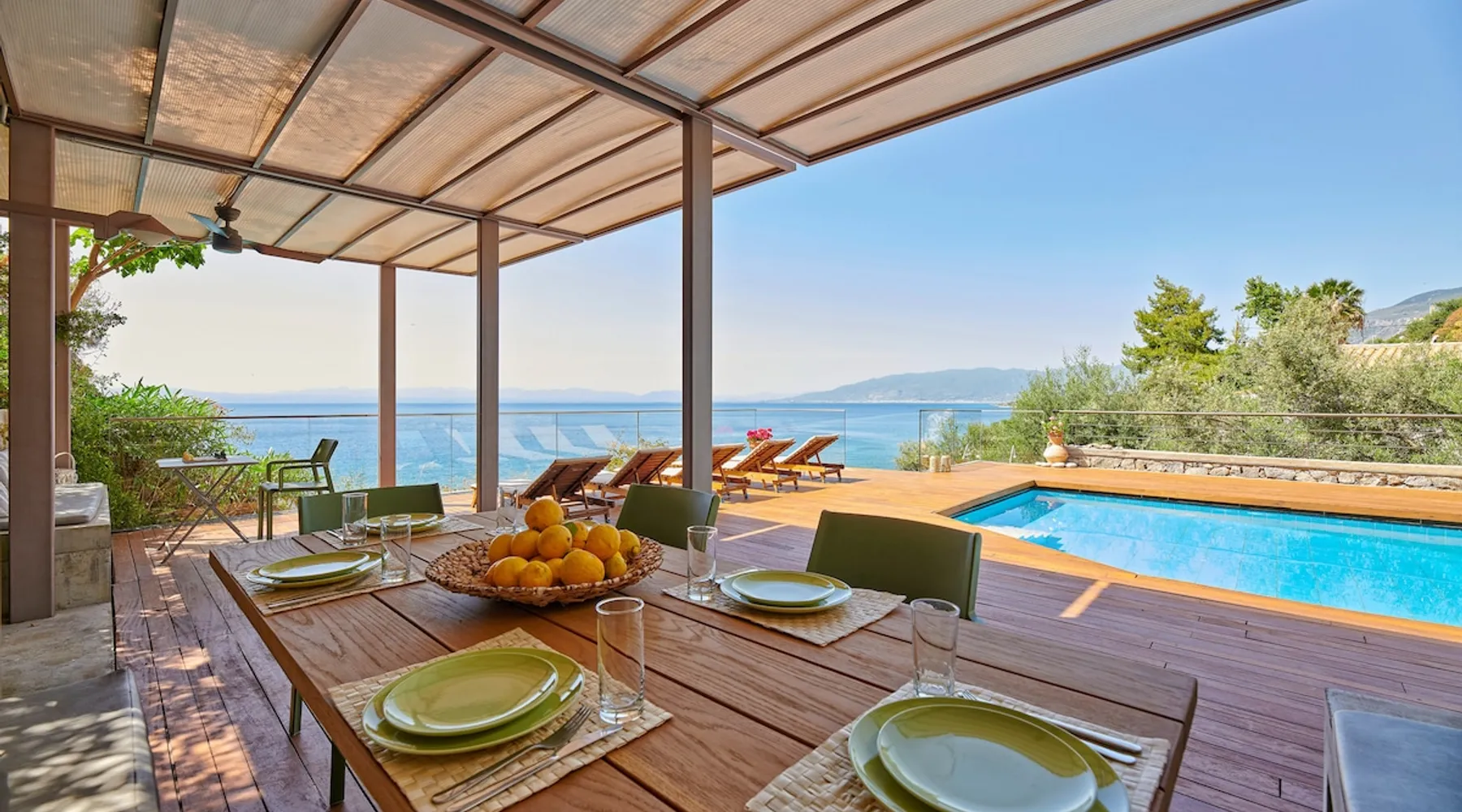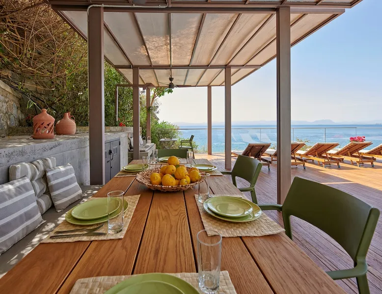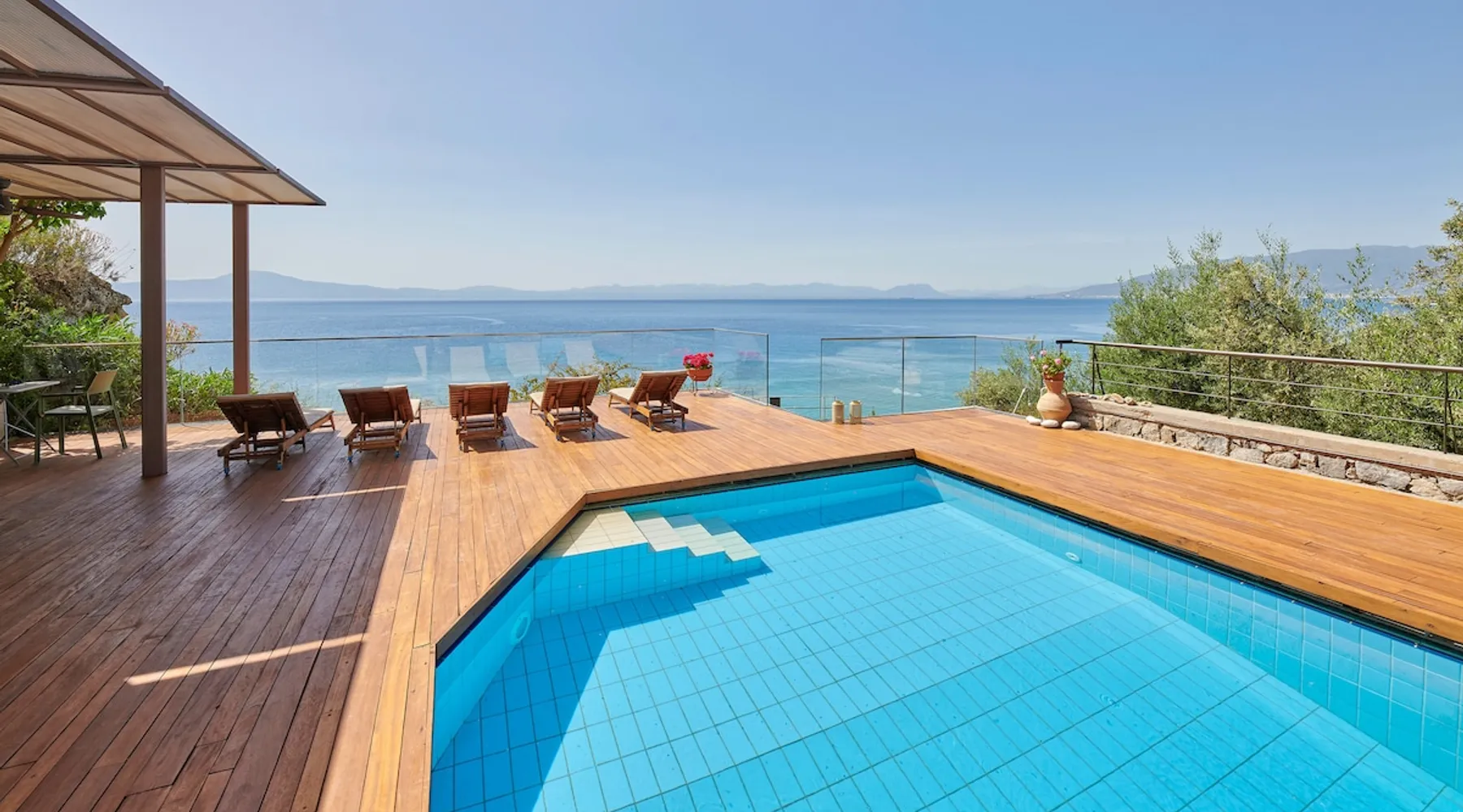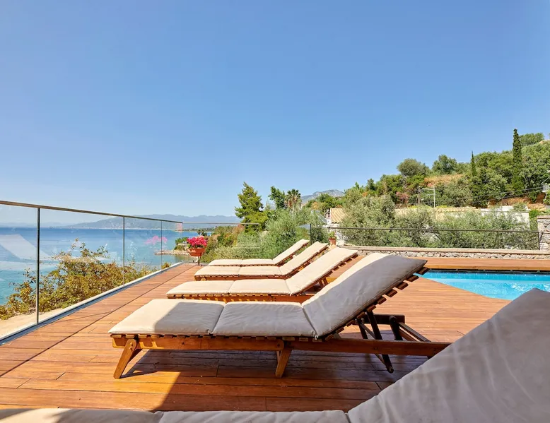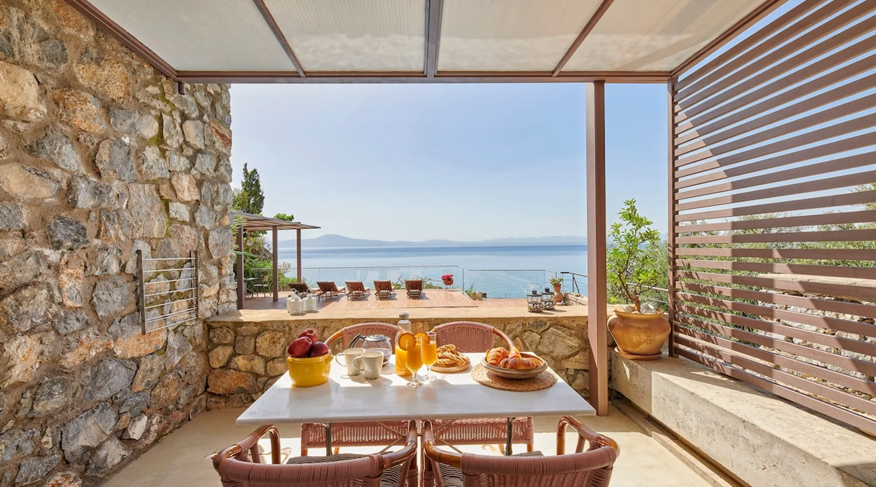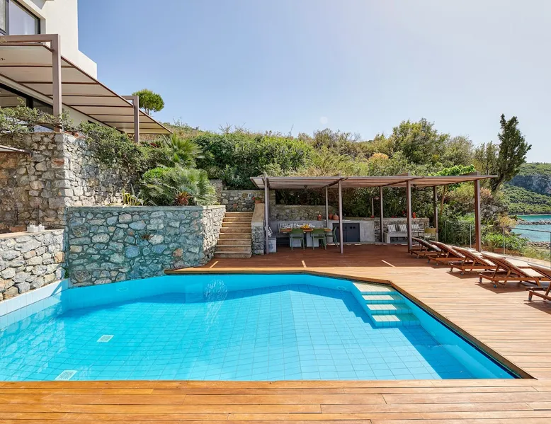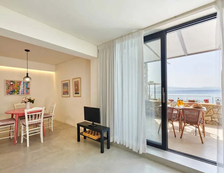 Cape Kitries is located near the capital of Messinia, in the picturesque fishing village of Kitries. The complex has 3 luxurious and comfortable apartments with excellent view in the Messinian Bay. The apartments are independent and fully equipped . Guests can enjoy the pool and the sunset deck. The space Apartment number three is on the ground level. It features a master bedroom with walk-in wardrobe. There is a spacious living room with a sofa bed, leading to a private balcony with views to the swimming pool and sea. The kitchen is fully equipped; there is central air-conditioning and complimentary Wi-Fi. Guest access Guests have access to the swimming sharing pool and the area around it, which includes 6 lawn chairs and a large dining table. Other things to note Arrival after 15:00 and departure before 11:00. Cleaning and new towels/sheets twice per week. Registration Details 00586854707