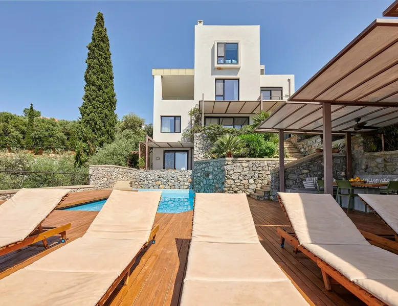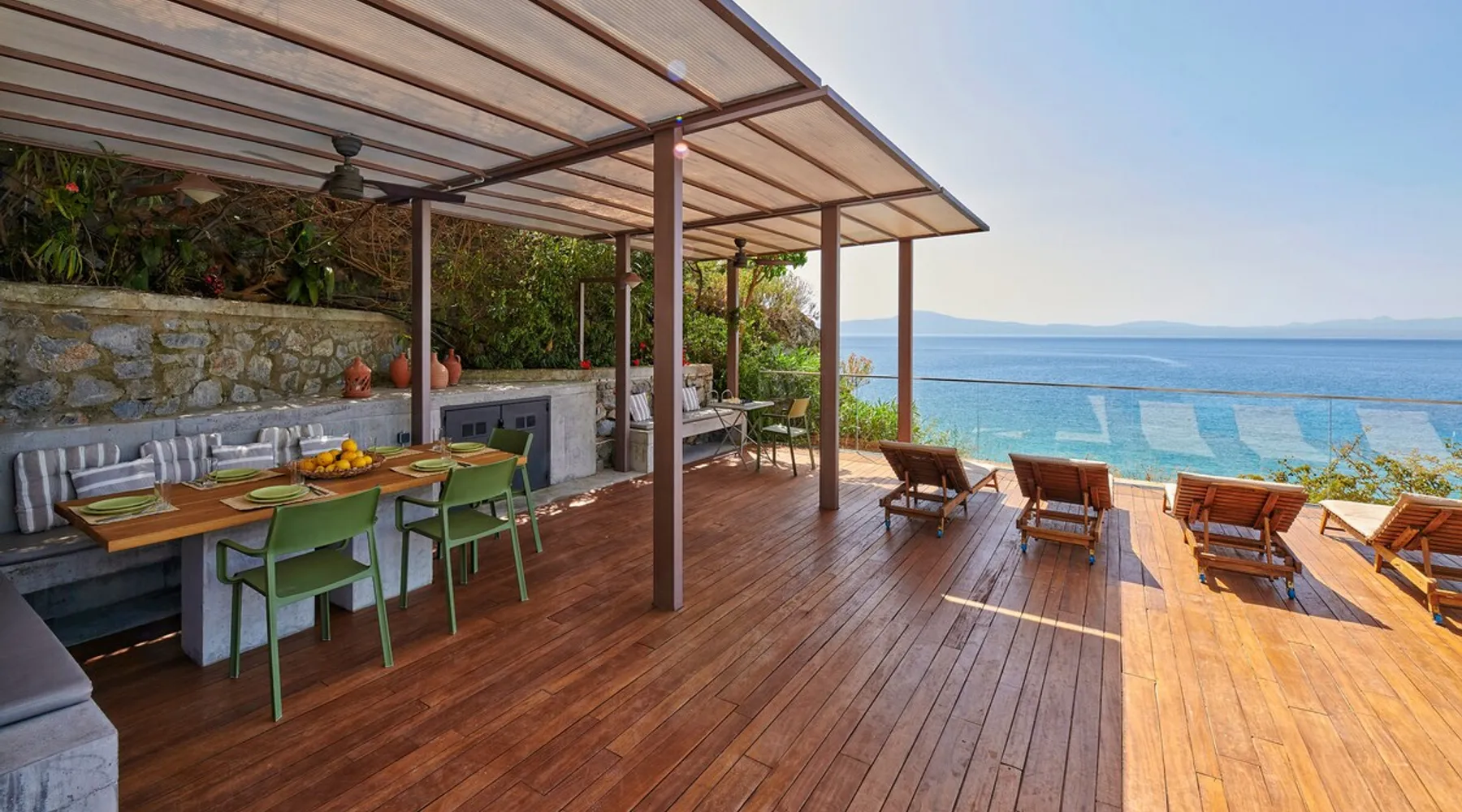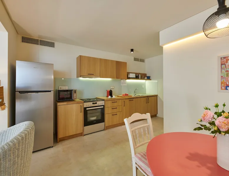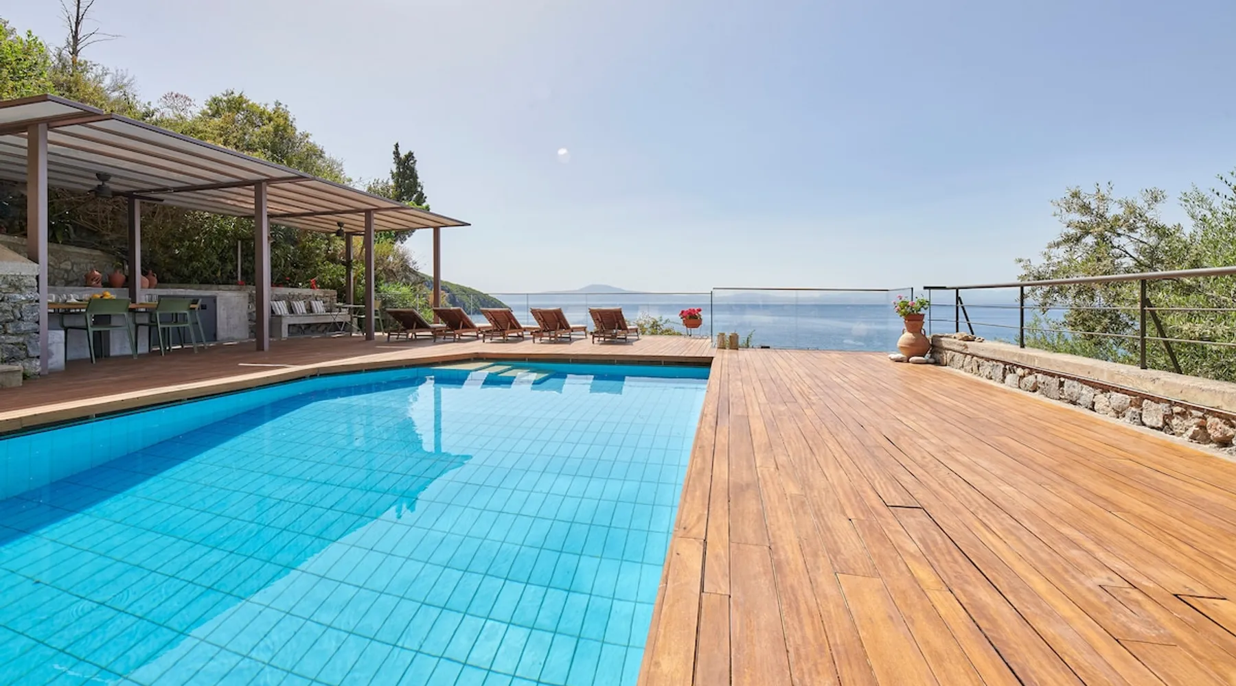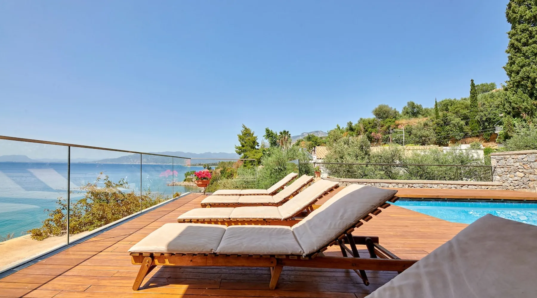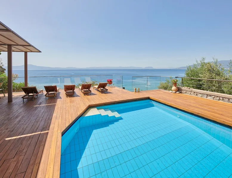 Cape Kitries is located near the capital of Messinia, in the picturesque fishing village of Kitries. The complex has 3 luxurious and comfortable apartments with excellent view in the Messinian Bay. The apartments are independent and fully equipped . Guests can enjoy the pool and the sunset deck. The space Apartment number three is on the ground level. It features a master bedroom with walk-in wardrobe. There is a spacious living room with a sofa bed, leading to a private balcony with views to the swimming pool and sea. The kitchen is fully equipped; there is central air-conditioning and complimentary Wi-Fi. Guest access Guests have access to the swimming sharing pool and the area around it, which includes 6 lawn chairs and a large dining table. Other things to note Arrival after 15:00 and departure before 11:00. Cleaning and new towels/sheets twice per week. Registration Details 00586854707