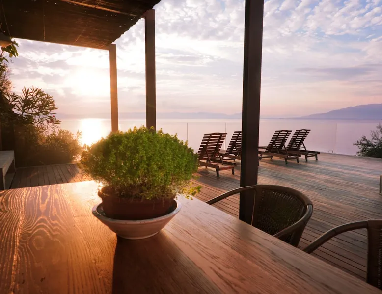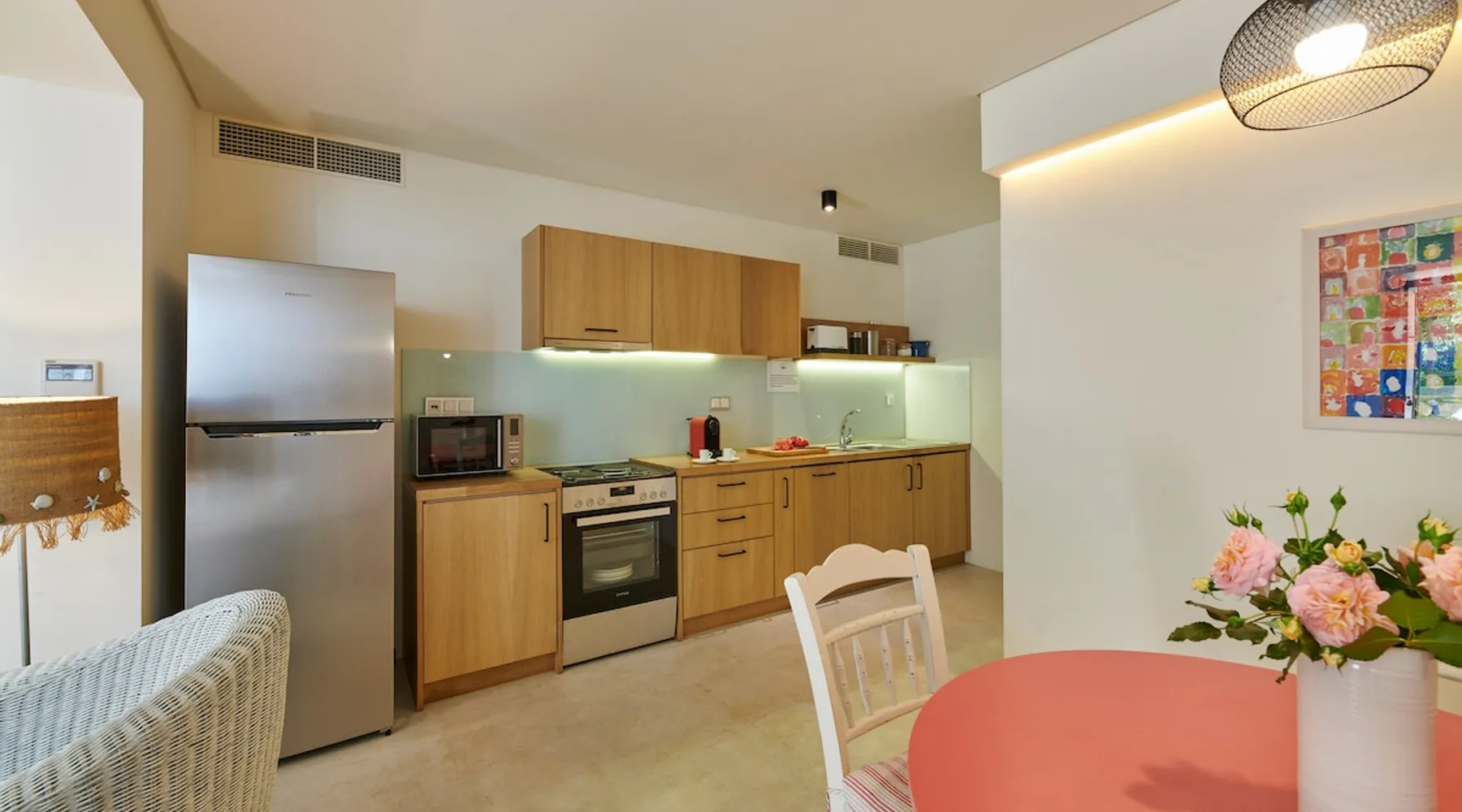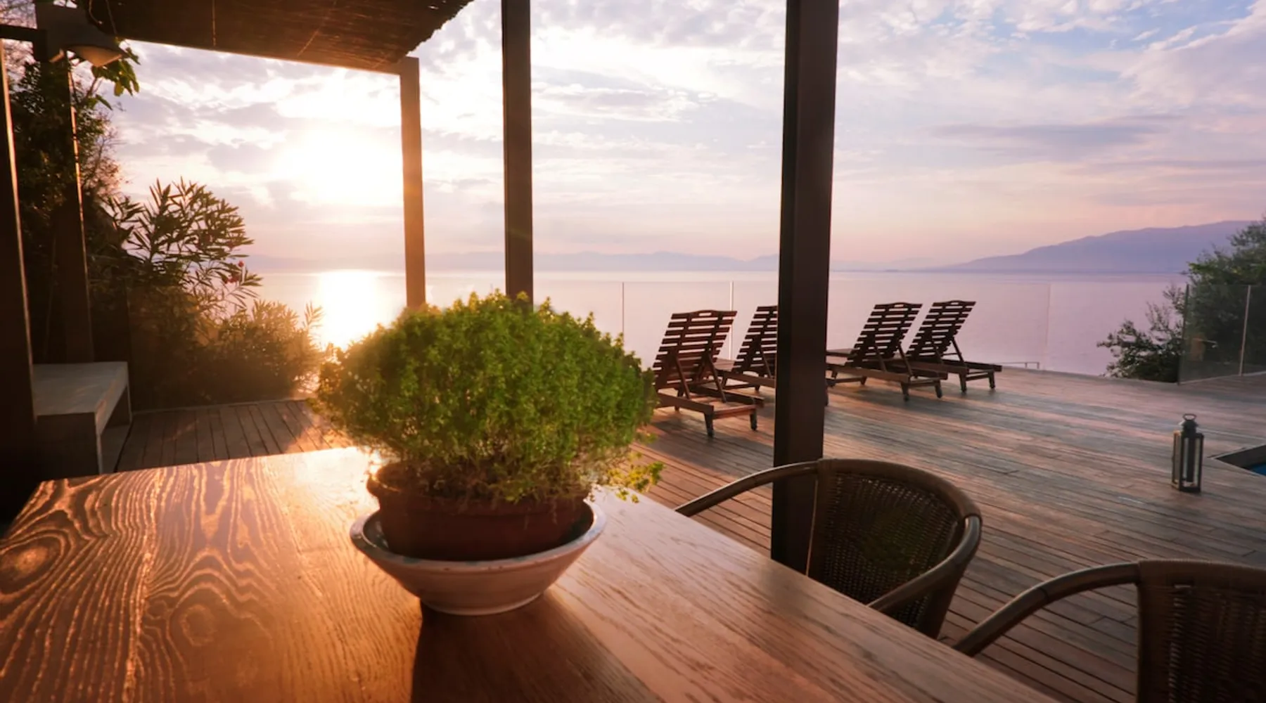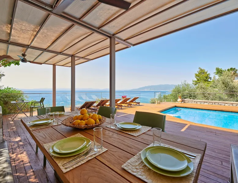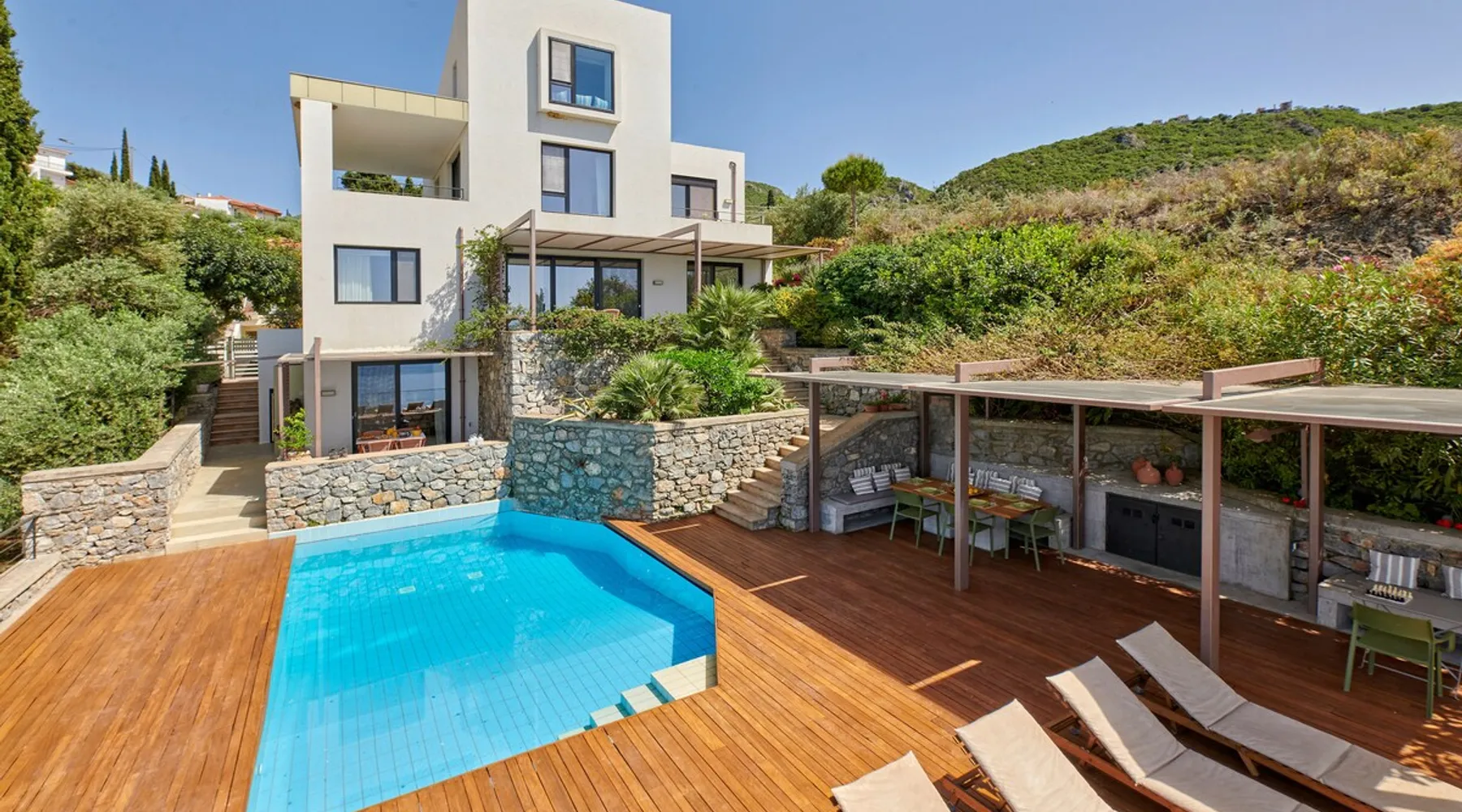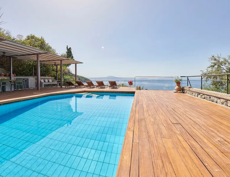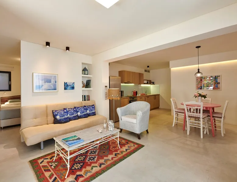 Cape Kitries is located near the capital of Messinia, in the picturesque fishing village of Kitries. The complex has 3 luxurious and comfortable apartments with excellent view in the Messinian Bay. The apartments are independent and fully equipped . Guests can enjoy the pool and the sunset deck. The space Apartment number three is on the ground level. It features a master bedroom with walk-in wardrobe. There is a spacious living room with a sofa bed, leading to a private balcony with views to the swimming pool and sea. The kitchen is fully equipped; there is central air-conditioning and complimentary Wi-Fi. Guest access Guests have access to the swimming sharing pool and the area around it, which includes 6 lawn chairs and a large dining table. Other things to note Arrival after 15:00 and departure before 11:00. Cleaning and new towels/sheets twice per week. Registration Details 00586854707