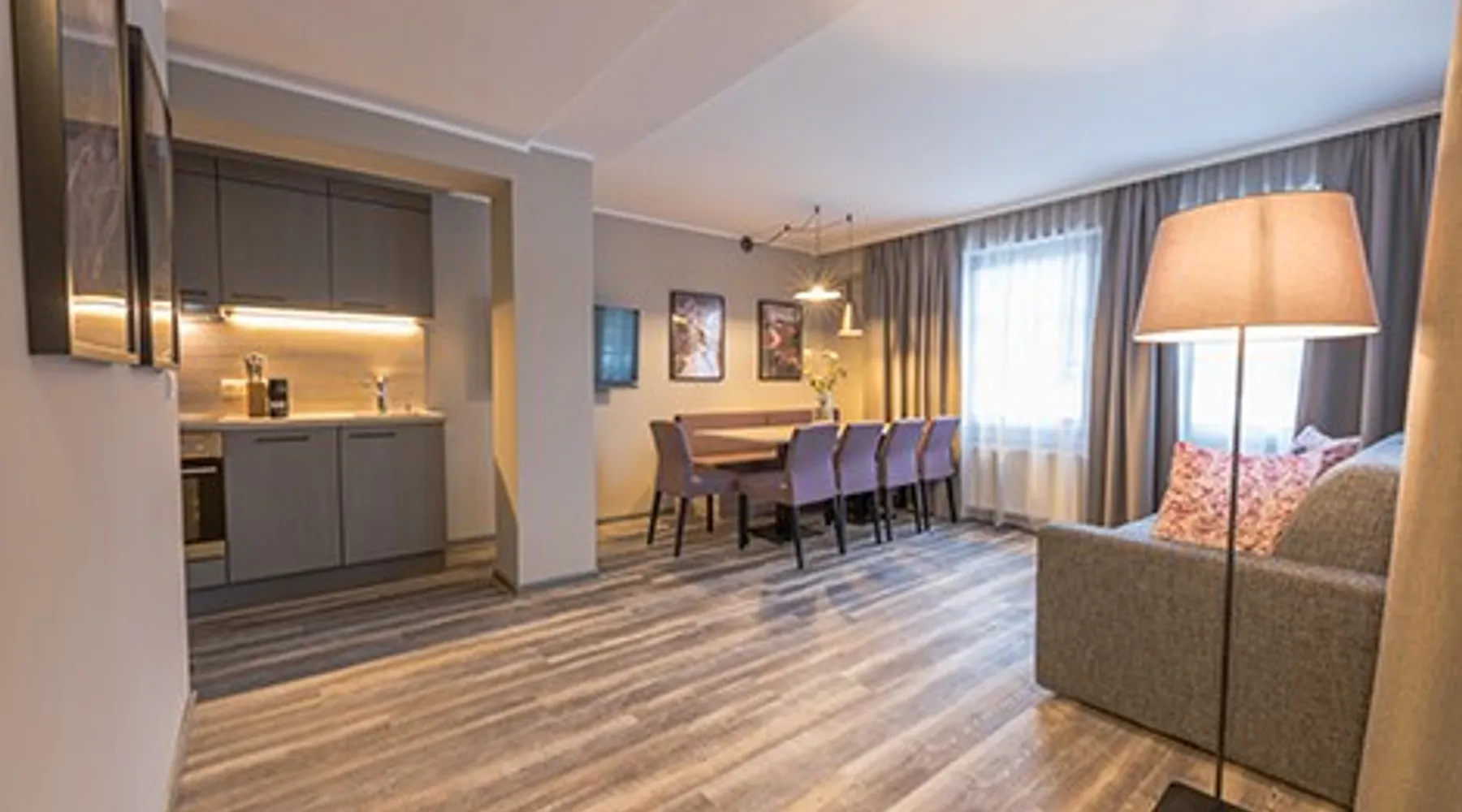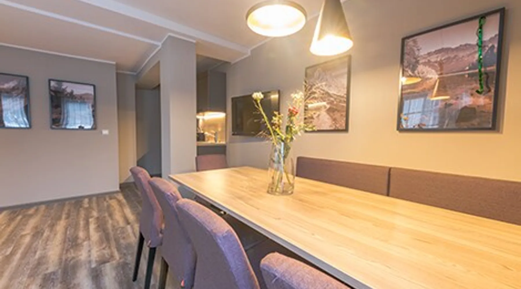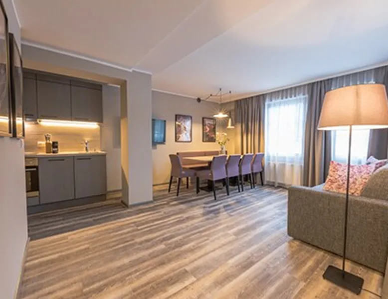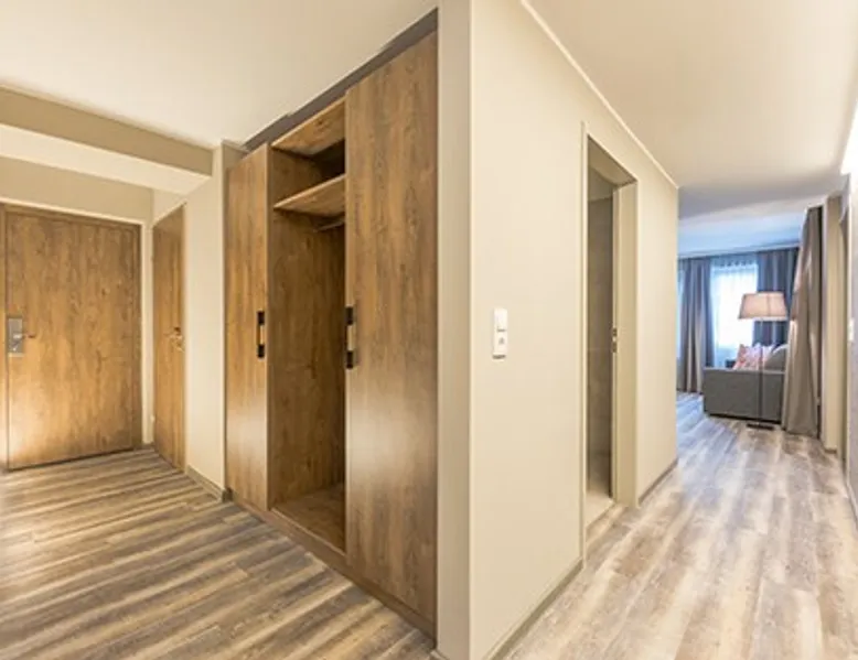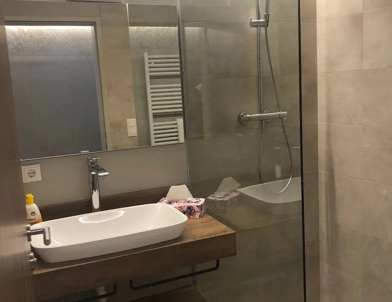 Arrive, check in, be at home and feel good! ♥ The space Our LakeSide flat house with 17 exclusively furnished flats is situated in a truly marvellous location between the lake and the golf course. Our cosy flats are spread over 3 floors. However, the lift in the building makes it easy to reach every flat at any time. Pets are welcome: Dogs are very welcome! We charge €20 per day for this on site, for a stay of more than 5 days a flat rate of €100.00 will be charged. In winter you have the option of using the ski room. The whole thing is rounded off with a small wellness room - equipped with infrared cabin, sauna and loungers, shower, toilets. This flat is very spacious at approx. 70m² and offers space for 2 - 8 people. It is located on the ground floor and has 3 bedrooms, 2 with double beds and 1 with bunk beds, a living room with sofa bed and 2 bathrooms. Guest access Leave your car in our free parking spaces around the apartment house and enjoy the walk into the heart of Seefeld. In only 5 - 7 minutes you are in the middle of the center, where you can find a lot of shops, restaurants and a lot more. Right next to our apartment house there is a supermarket where you can easily buy all the groceries you need for self-sufficiency. There is also a gas station for the needs of your car. We ourselves have 2 e-filling stations, which can be found directly at our apartment house on the back. Other things to note As equipment we offer: • Free WiFi • Bed linen already freshly made up • Towels for full occupancy (initial supply)
