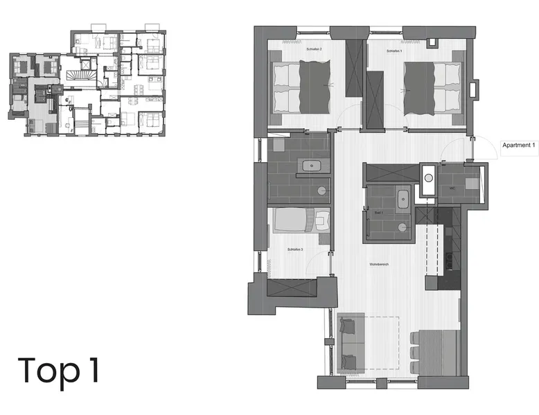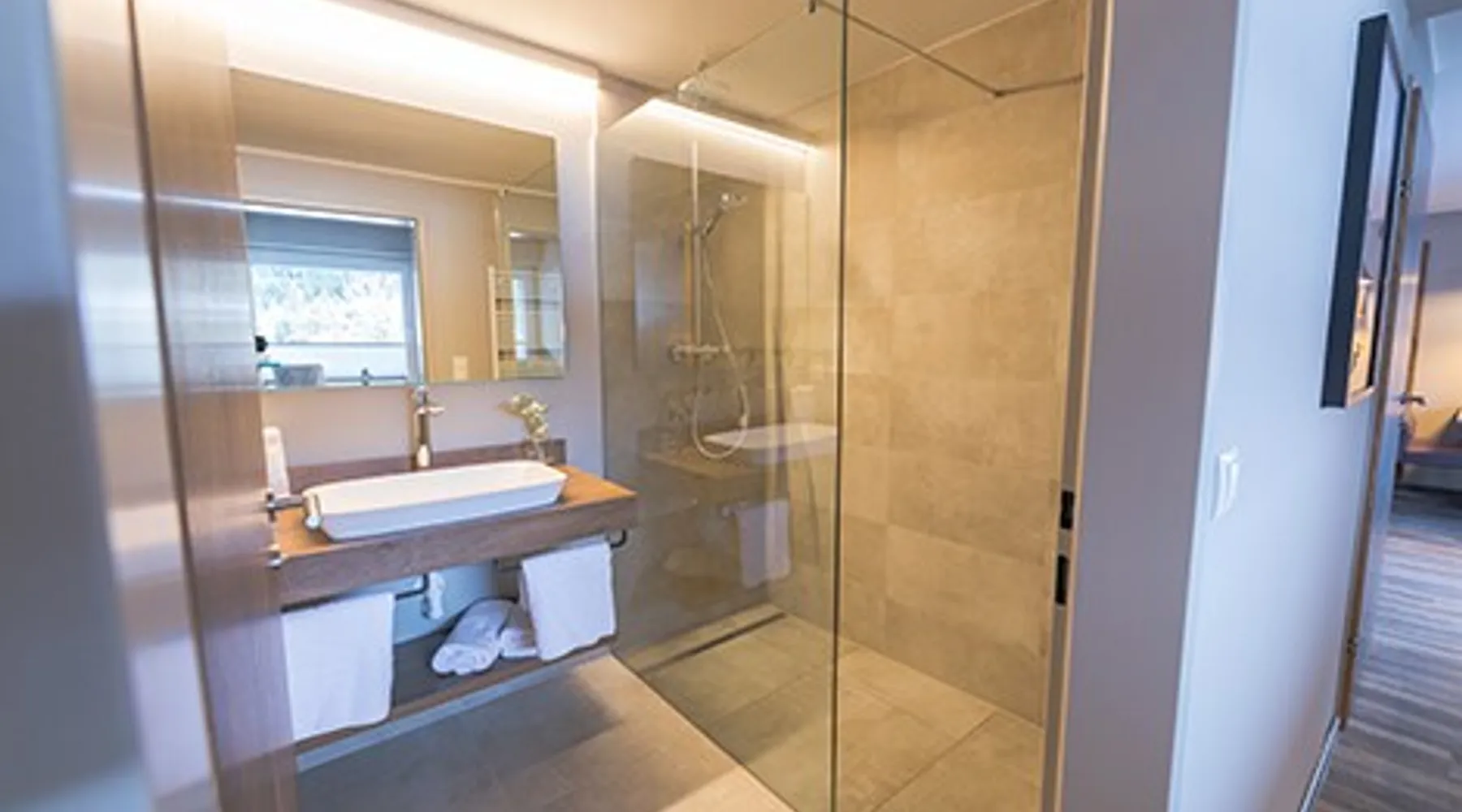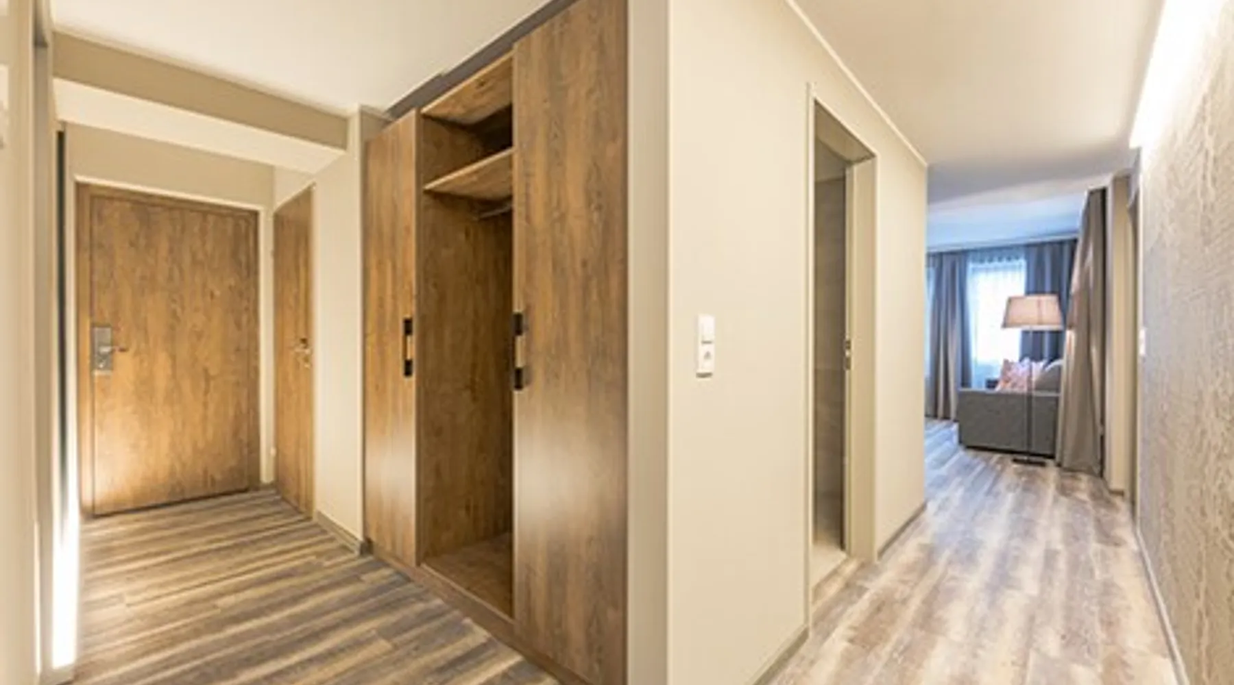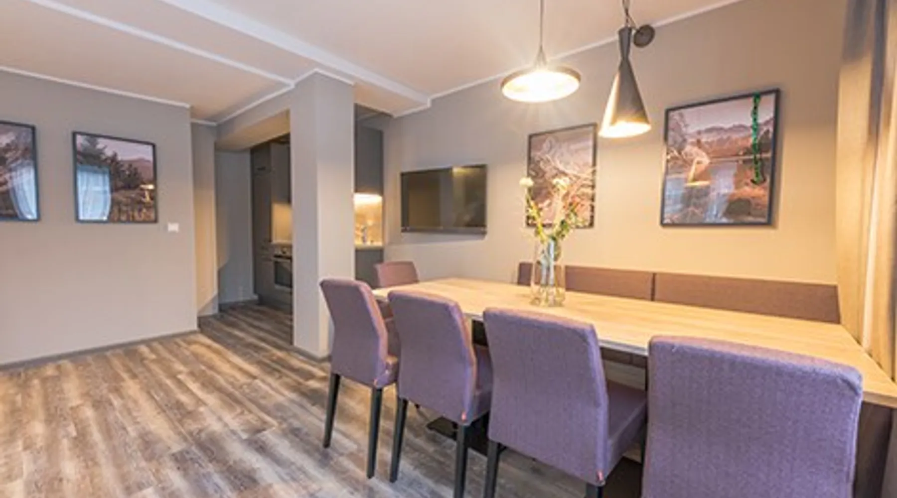 Arrive, check in, be at home and feel good! ♥ The space Our LakeSide flat house with 17 exclusively furnished flats is situated in a truly marvellous location between the lake and the golf course. Our cosy flats are spread over 3 floors. However, the lift in the building makes it easy to reach every flat at any time. Pets are welcome: Dogs are very welcome! We charge €20 per day for this on site, for a stay of more than 5 days a flat rate of €100.00 will be charged. In winter you have the option of using the ski room. The whole thing is rounded off with a small wellness room - equipped with infrared cabin, sauna and loungers, shower, toilets. This flat is very spacious at approx. 70m² and offers space for 2 - 8 people. It is located on the ground floor and has 3 bedrooms, 2 with double beds and 1 with bunk beds, a living room with sofa bed and 2 bathrooms. Guest access Leave your car in our free parking spaces around the apartment house and enjoy the walk into the heart of Seefeld. In only 5 - 7 minutes you are in the middle of the center, where you can find a lot of shops, restaurants and a lot more. Right next to our apartment house there is a supermarket where you can easily buy all the groceries you need for self-sufficiency. There is also a gas station for the needs of your car. We ourselves have 2 e-filling stations, which can be found directly at our apartment house on the back. Other things to note As equipment we offer: • Free WiFi • Bed linen already freshly made up • Towels for full occupancy (initial supply)