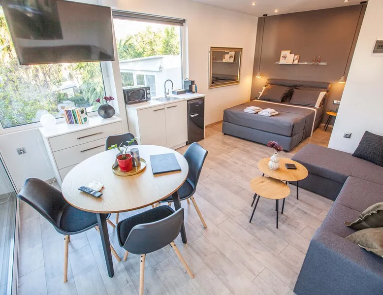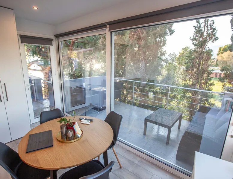 The two apartmentsare (30 sq.m. and 30 sq.m.) separated, they are on the same floor and they share the same balcony(60sq m ). Both of them have sea view and a lot of green. The two apartments are on the same level that while they have a common balcony(60 square meters) are separate (30 square meters one and 30 square meters the other).The view is sea and very green. The space The whole floor consists of two separated from each other apartments (30 sq.m. and 30 sq.m.) with bathrooms and they shared the same balcony(60 sq.m.). The space consists of two apartments (30 k 30 sq.) separate from each other on the same level with a common balcony(60 sq.) .Each has its own bathroom Registration Details 00000876677