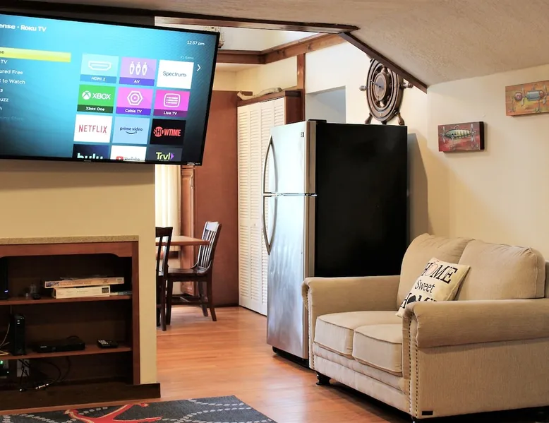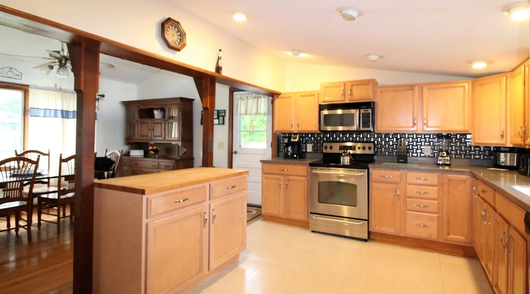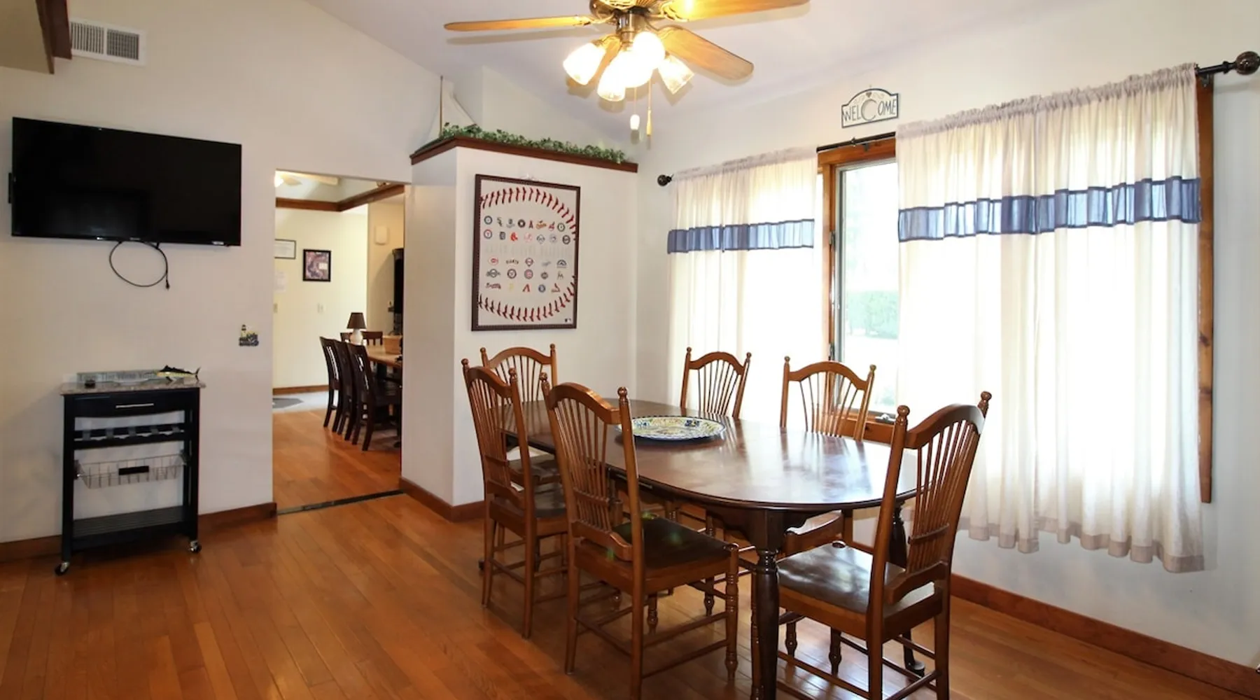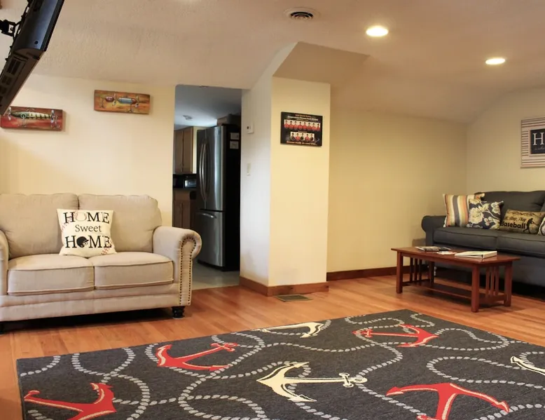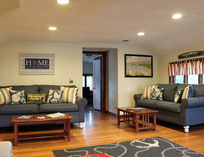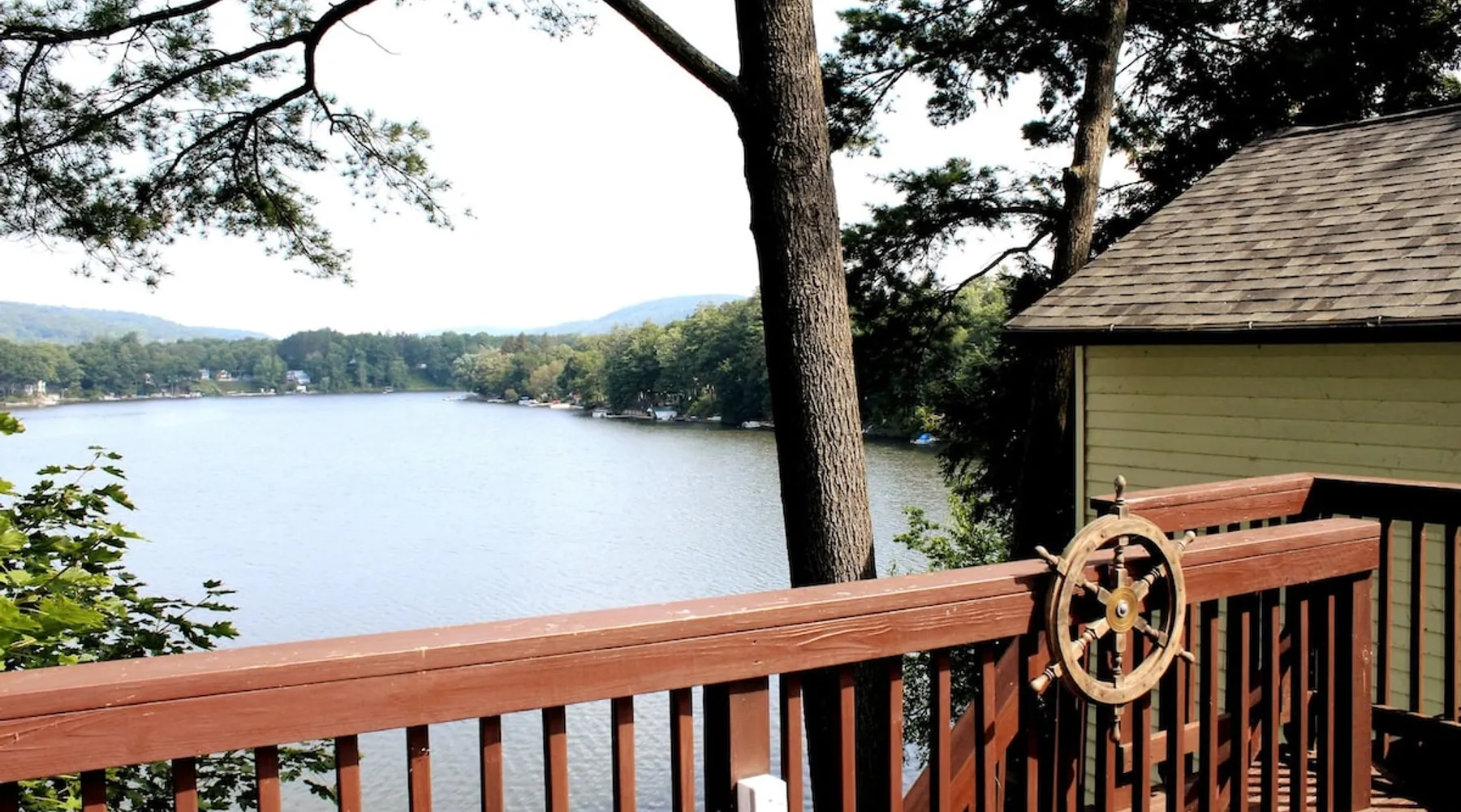 Perched above Goodyear Lake, Captain's Lookout has an awesome view of the lake from a series of decks overlooking the water, and there is room for grilling and dining on the top deck. Some of the features you will enjoy include a wet bar with quartz countertop in the main living area, heated floors in the bathrooms, laundry facilities on each level, and a summer kitchen on the lower level adjacent to the game room. There are 2 kayaks for guests to use at the waterfront. The space Centrally located, this spacious rental home is located: - 10.6 miles to Cooperstown Dreams Park - 11.3 miles to Cooperstown All Star Village - 15.3 miles to National Baseball Hall of Fame Guest access This 2,125 square foot waterfront home is nestled into the hillside, with the main living area and two bedrooms on the top floor - street level. Both street level bedrooms have queen size beds and their own private bathrooms. There are three more bedrooms on the lower level, two with king size beds, and private full bathrooms, and one bedroom with two twin size beds. There is a fifth full bathroom with whirlpool tub off the hallway on the main floor. There are 7 smart Roku flat screen TVs - a 55" (or larger) in the living room and 43" (or larger) TVs in each bedroom and in the dining area, all connected to Wi-Fi, just bring your favorite streaming apps. A well manicured yard in front of the home is large enough for playing a game of catch. For your comfort and convenience, this vacation home also features central air-conditioning, high speed wireless internet (Wi-Fi), and a fully equipped kitchen with dishwasher and refrigerator with automatic ice maker. A gas grill on the upper deck is available for your use. Other things to note - No smoking - No pets - No team parties or large gatherings - Building security rules require a signed Renter Agreement, and the completion of our Guest Registration form. - A security/damage deposit hold will placed on your credit card in the amount of $500 apart from anything held by Airbnb. It will be automatically held on a credit card you will need to provide to the host when completing your reservation. In lieu of a credit card hold, you may pay cash at check-in.