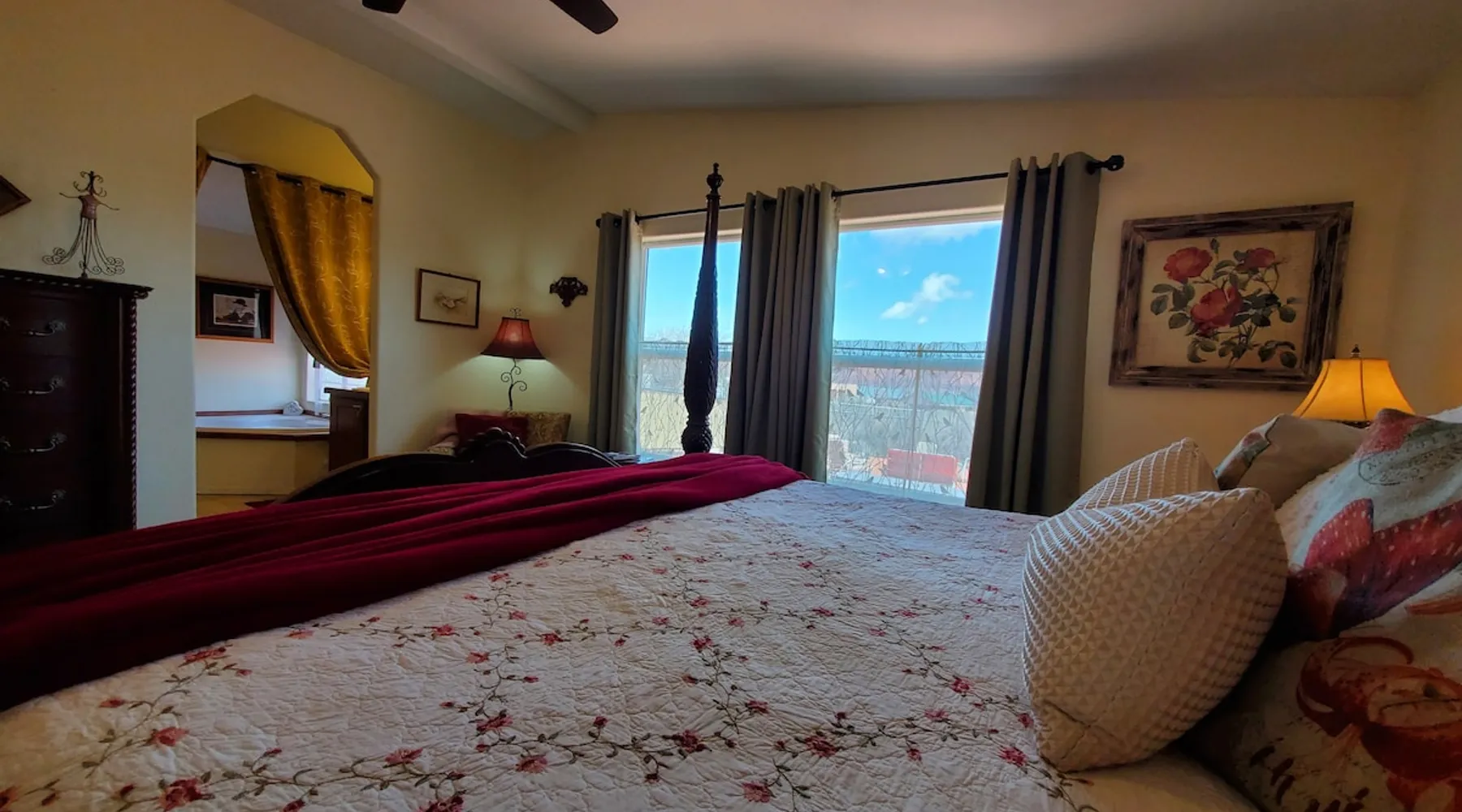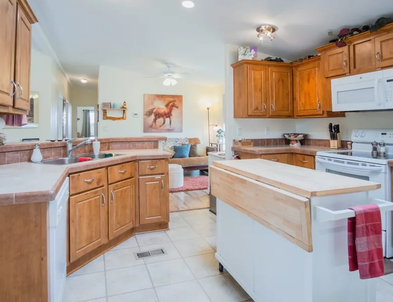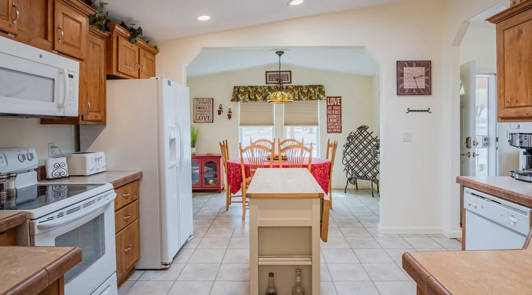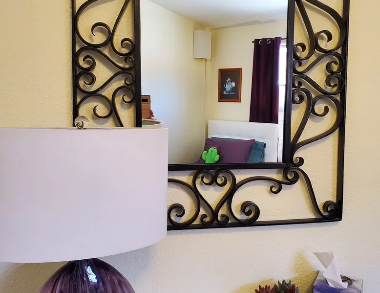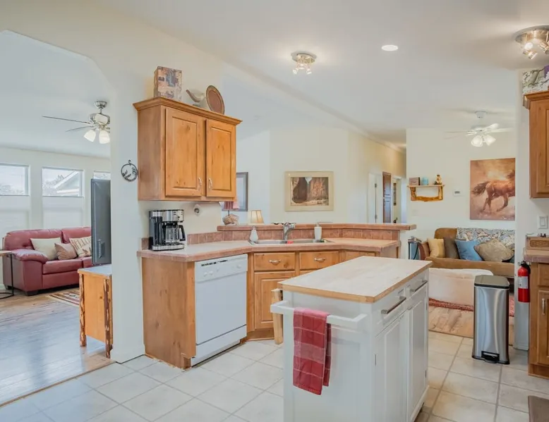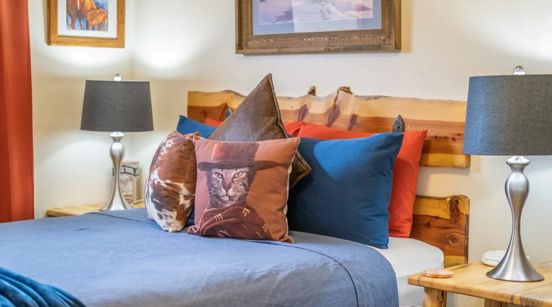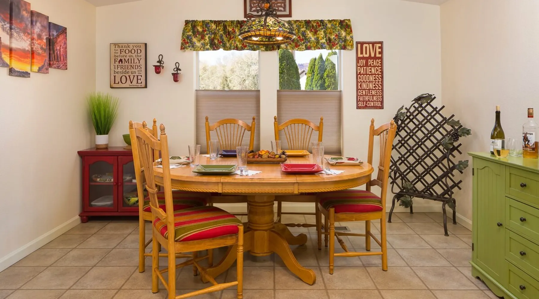 Our goal is for you to say, This is the BEST vacation rental ever! We want you to relax in comfort amid the art-filled, Western decor. Feel at home in the well-stocked, labeled kitchen & baths cleaned w/scent free products. Stay connected w/fast 1GB wifi. Drink in the red rock views from the BBQ patio. Stargaze beside the fire in the PRIVATE, fully fenced back yard! Keep kids busy w/board games & outdoor activities. All in Kanab which has 2 grocery stores, 35 eateries, 2 theaters & fun nitelife Unit A of Zionab Vacation Homes features a tasteful and fun decor with many original works of art, custom-made furnishings and hand-forged ironwork crafted by the owner. We have tried to supply the home so that all you need in order to vacation comfortably is your clothing. Each unit enjoys it's own private, unshared outdoor space. Cleanliness has always been a priority, but since the Pandemic, we've taken extra measures to ensure you arrive to a clean, sanitized home that is safe and comfortable. In 2022, we switched our laundry soap to scent free and started using more natural, low scented cleaning products like vinegar and Simple Green. Zionab is a great place to enjoy a working vacation with a dedicated work space and fast, reliable 1GBPS fiber-optic internet. The roomy kitchen is well-stocked for cooking up your family's favorites. Besides the glasstop stove/oven combo and microwave, there is a large and mini crock pot, an electric griddle for pancakes and such, a food processor for quick prep, a blender for your frozen favorites and a dishwasher for quick clean-up. There's also a 12-cup drip coffee pot with a single cup option and an electric water pot for tea. As for cooking essentials, Zionab provides a more than adequate supply of pots, pans, lids and bowls to prepare most dishes, along with a nice array of spices and staples like flour, sugars, oils and condiments. We have outfitted the house with indoor games, puzzles and quick crafts. For outdoor fun, there's corn hole and yard darts, a basketball hoop, soccer and footballs, and frisbees that can be enjoyed on site or across the street at the Ranchos City Park. Zionab has a huge outdoor fire-pit complete marshmallow roasters for S'mores. When you are ready to chill, our HUGE flat screen TV with ROKU streams dozens of channels. We offer Amazon Prime as well as a variety of DVD's and an HDMI cable connection for entertainment streamed from your device through the fast 1GBps fiber optic WIFI. There's also Red Box Rentals at both of the nearby grocery stores for newer releases. At day's end you can soothe those tired muscles in a hot, soaking bath in the Master Suite's garden tub outfitted with complimentary bath salts. The 50 gallon, quick-recovery water heater will ensure everyone has plenty of hot water to bathe before bed. Speaking of bed, the Master Suite features a gorgeous king-sized poster bed with a luxurious pillow top mattress piled hight with tons of pillows and invitingly crisp, clean sheets. Cellular shades and black-out curtains make sleeping-in so inviting. The Master bedroom is decorated in a romantic shabby chic decor that is full of soft, inviting textures that make you feel oh so pampered. Enjoy the cozy, mood setting electric fireplace as you wind down from your adventure filled day. The second bedroom is all horses and cowboys with denim and cowhide. The semi-firm, queen-size Serta pillow-top mattress is piled high with pillows and cozy bedding. The headboard is crafted of Juniper wood made from a tree that shaded a livestock shipping corral in it's former life. Blackout curtains and cellular shades close the world out to let you dream peacefully. A comfortable chair makes a great reading nook or spot to relax while you post pictures of the day's adventures. The Cowboy room features double closets with plenty of space to store luggage. This bedroom is located adjacent to the roomy guest bathroom which features a tub/shower combo. The third bedroom, the Cactus Room, features artwork of desert landscapes. It has two twin beds that can convert to a king size bed for added flexibility in accommodating couples. A large, comfortable chair provides a cozy spot for catching up on your social media. Luggage racks and a sizeable dresser help you stay organized. The fourth sleeping option is a futon couch that converts to a double bed located in the office area off to the side of the living room and kitchen. This sunny spot is perfect for enjoying your morning coffee or an afternoon nap. The office area includes a desk that is outfitted with a charging station, a complimentary laptop and our insider's guide to Kanab and the surrounding area. You are sure to enjoy Zionab's fiber optic internet speed of 1GBps - a rarity for a small town like Kanab. The West facing dining room seats eight and provides gorgeous views of the red rocks and lush green surroundings. A separate breakfast bar has seating for two. The back patio has a bistro table that seats two. Further out in the backyard by the outdoor fire pit is a picnic table that seats 6. It's the perfect area for singing campfire songs and roasting marshmallows or just soaking in the amazing red rock views. If you prefer to dine out, downtown Kanab is just 2 miles away and offers 35 eateries (of which only 4 are franchises). Zionab has central air conditioning and heat with ceiling fans in every room. There is an extra large washer and dryer for your convenience. Need to stretch your legs? Zionab is conveniently located across from a grassy, tree filled city park which offers the perfect place for travelers to stretch after being cramped in a car all day. Take a leisurely stroll around the 1/2 mile track, enjoy a heart pumping game of soccer, throw some Frisbee or fly a kite - all using the equipment available in Zionab's toy box. Prefer relaxing? Then you can enjoy the views of contrasting crimson red and verdant green scenery while you do some grilling on Zionab's private back pa