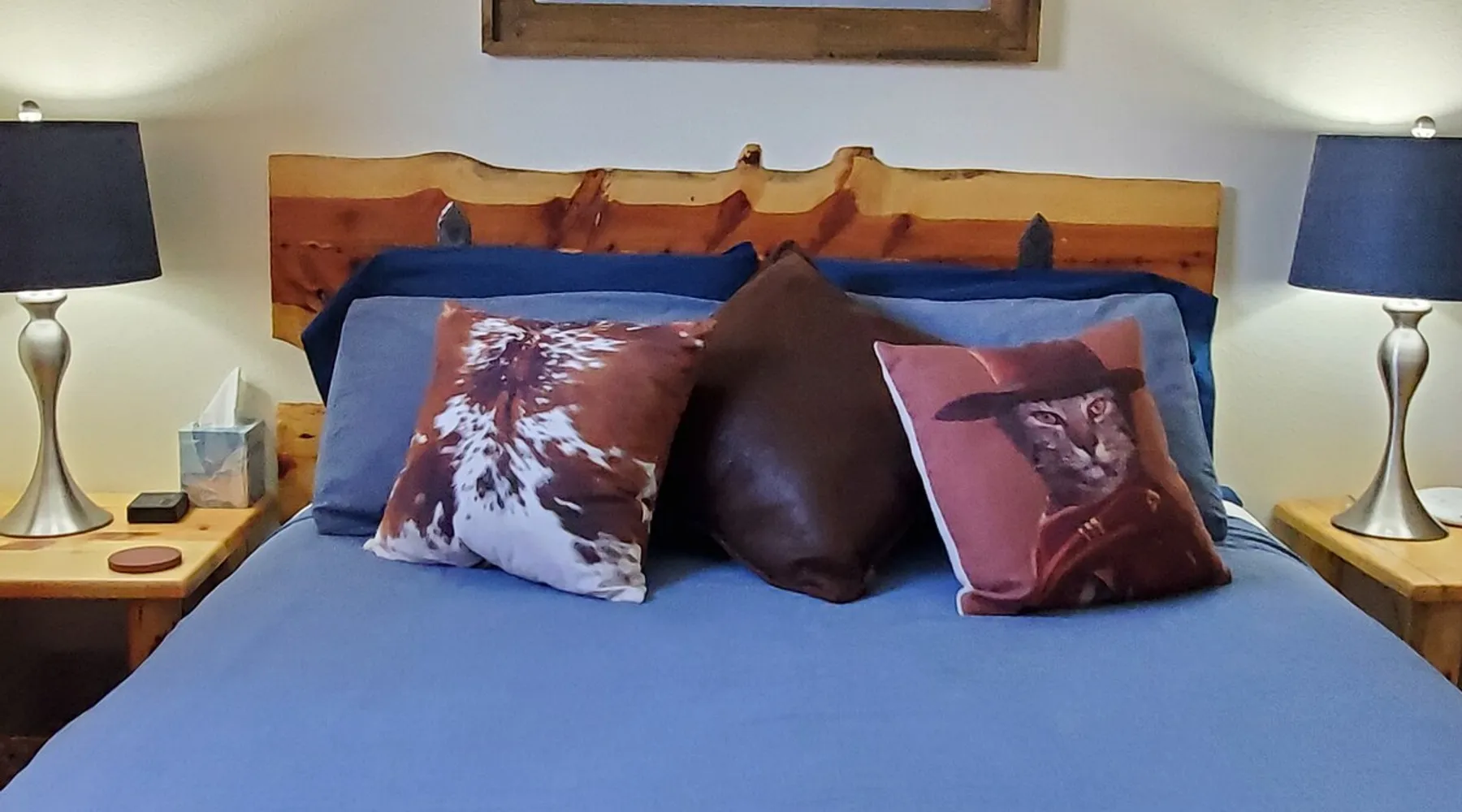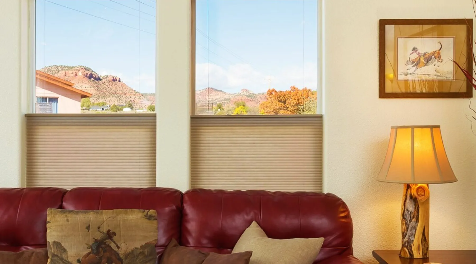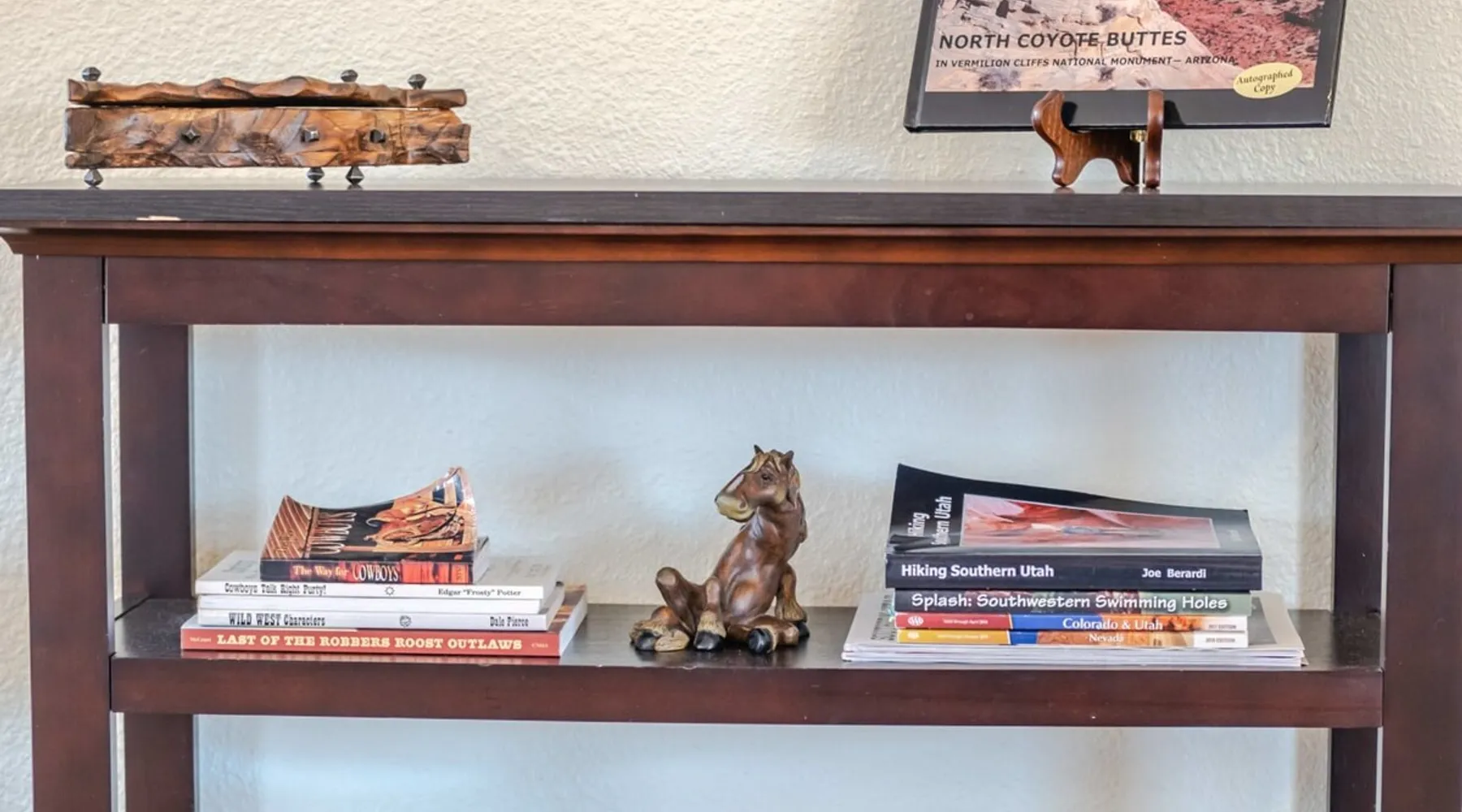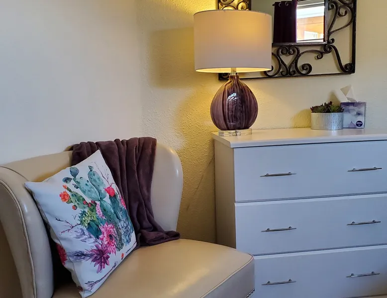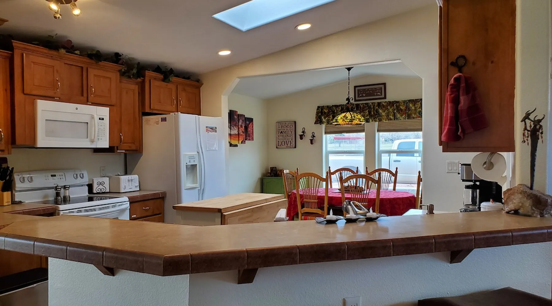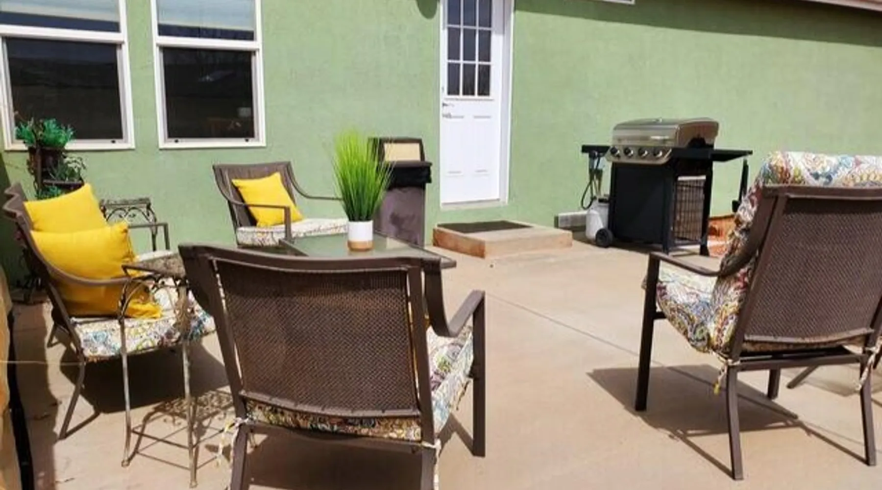 Our goal is for you to say, This is the BEST vacation rental ever! We want you to relax in comfort amid the art-filled, Western decor. Feel at home in the well-stocked, labeled kitchen & baths cleaned w/scent free products. Stay connected w/fast 1GB wifi. Drink in the red rock views from the BBQ patio. Stargaze beside the fire in the PRIVATE, fully fenced back yard! Keep kids busy w/board games & outdoor activities. All in Kanab which has 2 grocery stores, 35 eateries, 2 theaters & fun nitelife Unit A of Zionab Vacation Homes features a tasteful and fun decor with many original works of art, custom-made furnishings and hand-forged ironwork crafted by the owner. We have tried to supply the home so that all you need in order to vacation comfortably is your clothing. Each unit enjoys it's own private, unshared outdoor space. Cleanliness has always been a priority, but since the Pandemic, we've taken extra measures to ensure you arrive to a clean, sanitized home that is safe and comfortable. In 2022, we switched our laundry soap to scent free and started using more natural, low scented cleaning products like vinegar and Simple Green. Zionab is a great place to enjoy a working vacation with a dedicated work space and fast, reliable 1GBPS fiber-optic internet. The roomy kitchen is well-stocked for cooking up your family's favorites. Besides the glasstop stove/oven combo and microwave, there is a large and mini crock pot, an electric griddle for pancakes and such, a food processor for quick prep, a blender for your frozen favorites and a dishwasher for quick clean-up. There's also a 12-cup drip coffee pot with a single cup option and an electric water pot for tea. As for cooking essentials, Zionab provides a more than adequate supply of pots, pans, lids and bowls to prepare most dishes, along with a nice array of spices and staples like flour, sugars, oils and condiments. We have outfitted the house with indoor games, puzzles and quick crafts. For outdoor fun, there's corn hole and yard darts, a basketball hoop, soccer and footballs, and frisbees that can be enjoyed on site or across the street at the Ranchos City Park. Zionab has a huge outdoor fire-pit complete marshmallow roasters for S'mores. When you are ready to chill, our HUGE flat screen TV with ROKU streams dozens of channels. We offer Amazon Prime as well as a variety of DVD's and an HDMI cable connection for entertainment streamed from your device through the fast 1GBps fiber optic WIFI. There's also Red Box Rentals at both of the nearby grocery stores for newer releases. At day's end you can soothe those tired muscles in a hot, soaking bath in the Master Suite's garden tub outfitted with complimentary bath salts. The 50 gallon, quick-recovery water heater will ensure everyone has plenty of hot water to bathe before bed. Speaking of bed, the Master Suite features a gorgeous king-sized poster bed with a luxurious pillow top mattress piled hight with tons of pillows and invitingly crisp, clean sheets. Cellular shades and black-out curtains make sleeping-in so inviting. The Master bedroom is decorated in a romantic shabby chic decor that is full of soft, inviting textures that make you feel oh so pampered. Enjoy the cozy, mood setting electric fireplace as you wind down from your adventure filled day. The second bedroom is all horses and cowboys with denim and cowhide. The semi-firm, queen-size Serta pillow-top mattress is piled high with pillows and cozy bedding. The headboard is crafted of Juniper wood made from a tree that shaded a livestock shipping corral in it's former life. Blackout curtains and cellular shades close the world out to let you dream peacefully. A comfortable chair makes a great reading nook or spot to relax while you post pictures of the day's adventures. The Cowboy room features double closets with plenty of space to store luggage. This bedroom is located adjacent to the roomy guest bathroom which features a tub/shower combo. The third bedroom, the Cactus Room, features artwork of desert landscapes. It has two twin beds that can convert to a king size bed for added flexibility in accommodating couples. A large, comfortable chair provides a cozy spot for catching up on your social media. Luggage racks and a sizeable dresser help you stay organized. The fourth sleeping option is a futon couch that converts to a double bed located in the office area off to the side of the living room and kitchen. This sunny spot is perfect for enjoying your morning coffee or an afternoon nap. The office area includes a desk that is outfitted with a charging station, a complimentary laptop and our insider's guide to Kanab and the surrounding area. You are sure to enjoy Zionab's fiber optic internet speed of 1GBps - a rarity for a small town like Kanab. The West facing dining room seats eight and provides gorgeous views of the red rocks and lush green surroundings. A separate breakfast bar has seating for two. The back patio has a bistro table that seats two. Further out in the backyard by the outdoor fire pit is a picnic table that seats 6. It's the perfect area for singing campfire songs and roasting marshmallows or just soaking in the amazing red rock views. If you prefer to dine out, downtown Kanab is just 2 miles away and offers 35 eateries (of which only 4 are franchises). Zionab has central air conditioning and heat with ceiling fans in every room. There is an extra large washer and dryer for your convenience. Need to stretch your legs? Zionab is conveniently located across from a grassy, tree filled city park which offers the perfect place for travelers to stretch after being cramped in a car all day. Take a leisurely stroll around the 1/2 mile track, enjoy a heart pumping game of soccer, throw some Frisbee or fly a kite - all using the equipment available in Zionab's toy box. Prefer relaxing? Then you can enjoy the views of contrasting crimson red and verdant green scenery while you do some grilling on Zionab's private back pa