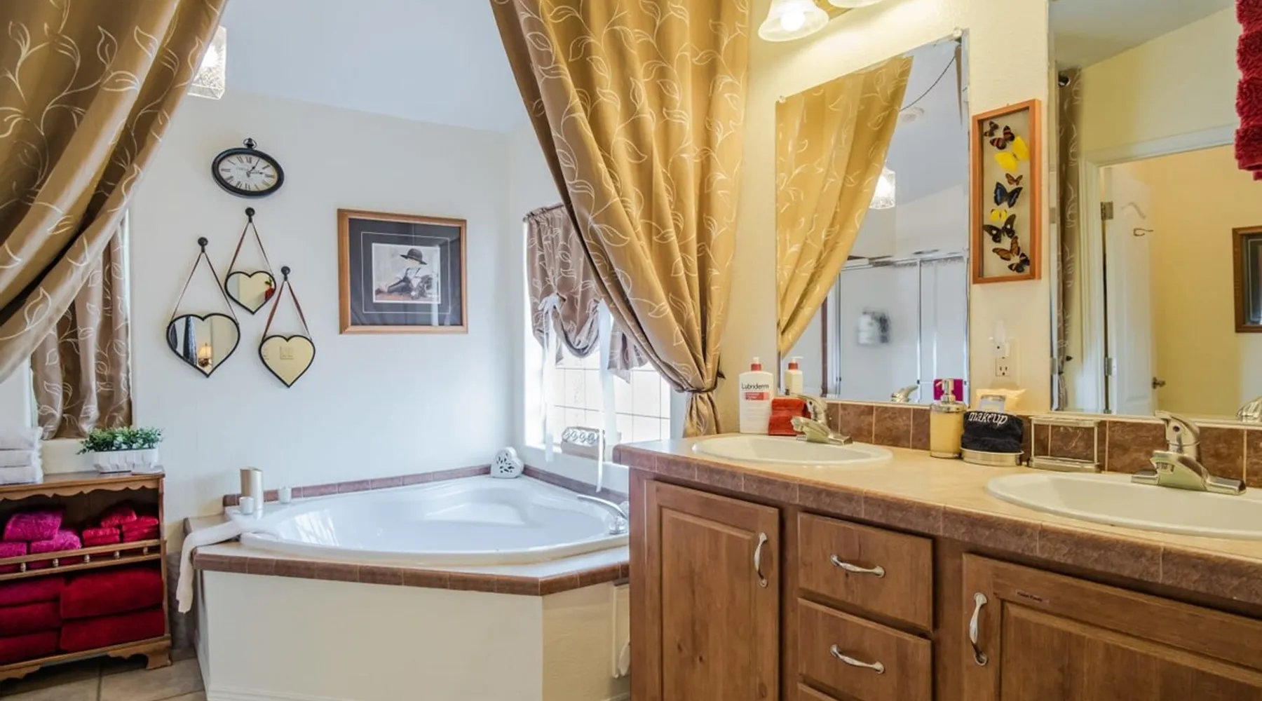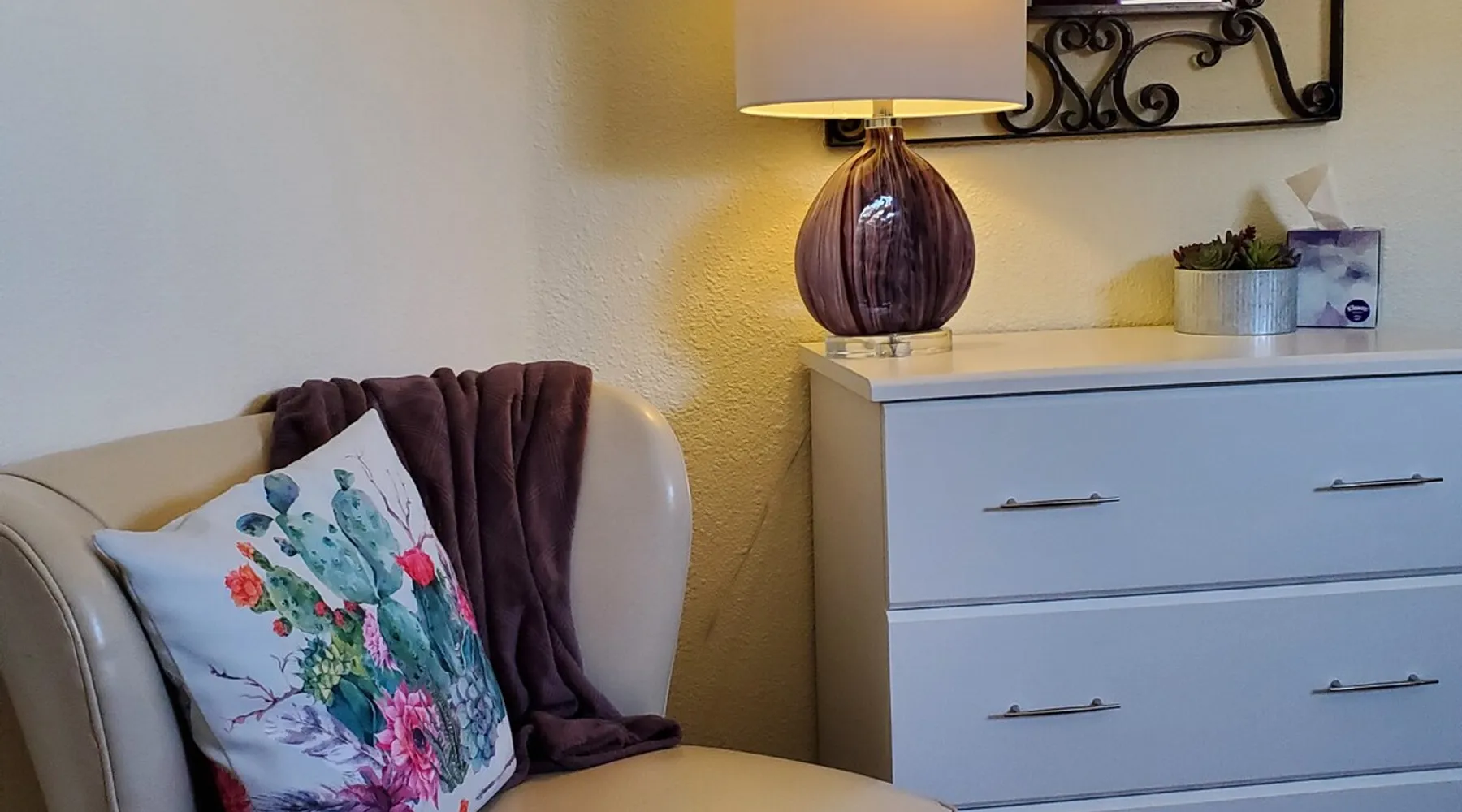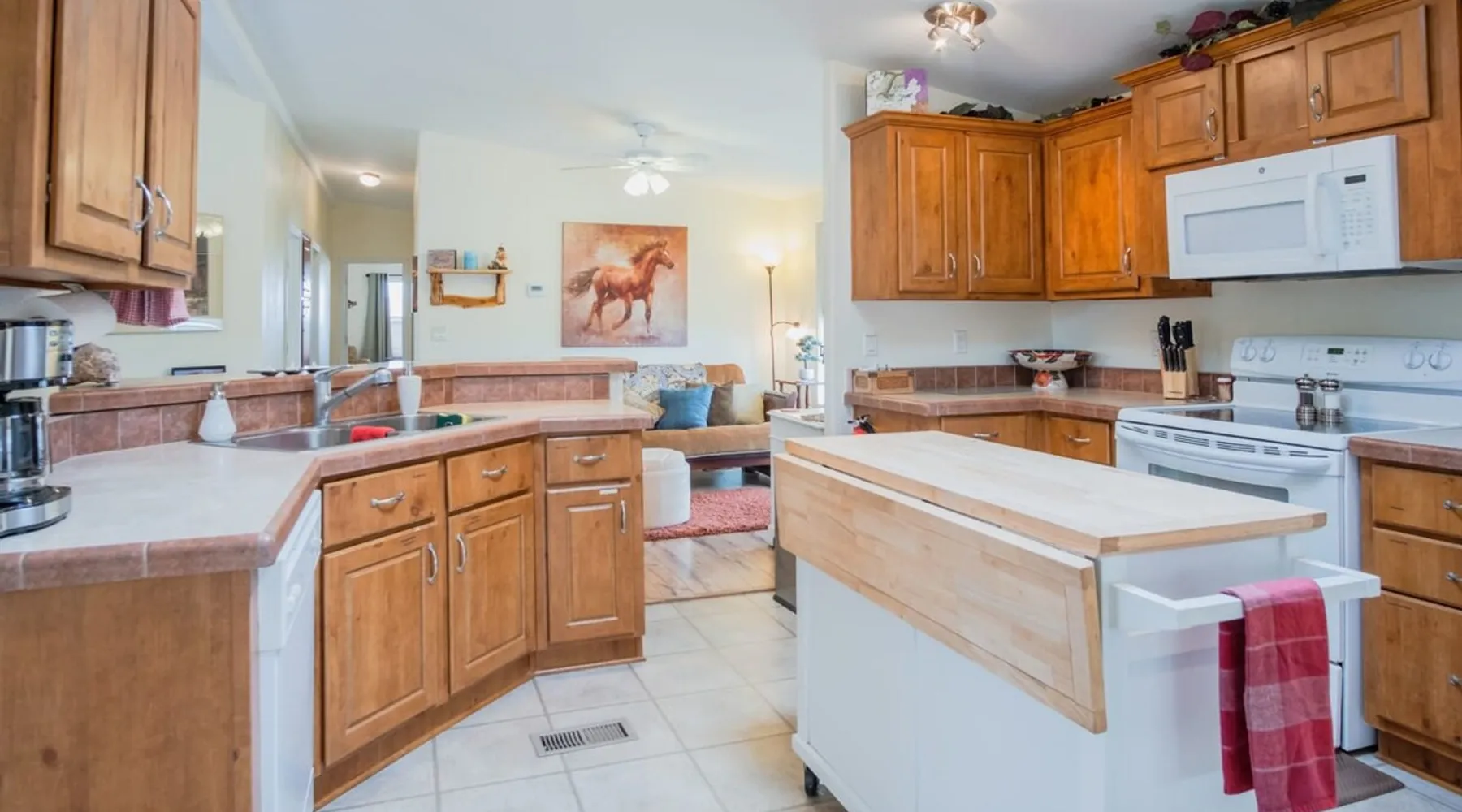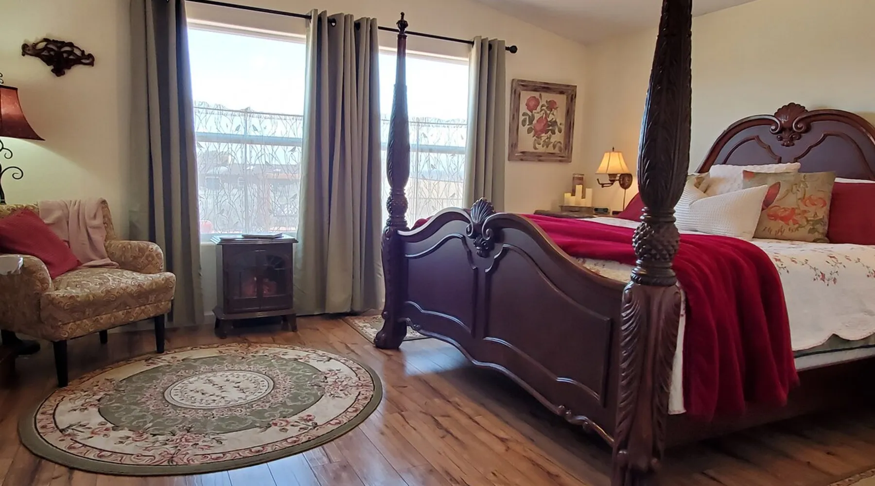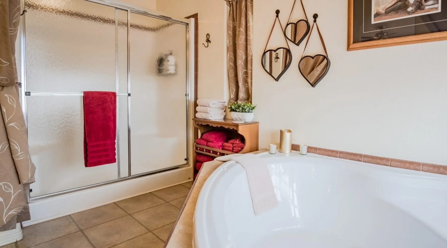 Our goal is for you to say, This is the BEST vacation rental ever! We want you to relax in comfort amid the art-filled, Western decor. Feel at home in the well-stocked, labeled kitchen & baths cleaned w/scent free products. Stay connected w/fast 1GB wifi. Drink in the red rock views from the BBQ patio. Stargaze beside the fire in the PRIVATE, fully fenced back yard! Keep kids busy w/board games & outdoor activities. All in Kanab which has 2 grocery stores, 35 eateries, 2 theaters & fun nitelife Unit A of Zionab Vacation Homes features a tasteful and fun decor with many original works of art, custom-made furnishings and hand-forged ironwork crafted by the owner. We have tried to supply the home so that all you need in order to vacation comfortably is your clothing. Each unit enjoys it's own private, unshared outdoor space. Cleanliness has always been a priority, but since the Pandemic, we've taken extra measures to ensure you arrive to a clean, sanitized home that is safe and comfortable. In 2022, we switched our laundry soap to scent free and started using more natural, low scented cleaning products like vinegar and Simple Green. Zionab is a great place to enjoy a working vacation with a dedicated work space and fast, reliable 1GBPS fiber-optic internet. The roomy kitchen is well-stocked for cooking up your family's favorites. Besides the glasstop stove/oven combo and microwave, there is a large and mini crock pot, an electric griddle for pancakes and such, a food processor for quick prep, a blender for your frozen favorites and a dishwasher for quick clean-up. There's also a 12-cup drip coffee pot with a single cup option and an electric water pot for tea. As for cooking essentials, Zionab provides a more than adequate supply of pots, pans, lids and bowls to prepare most dishes, along with a nice array of spices and staples like flour, sugars, oils and condiments. We have outfitted the house with indoor games, puzzles and quick crafts. For outdoor fun, there's corn hole and yard darts, a basketball hoop, soccer and footballs, and frisbees that can be enjoyed on site or across the street at the Ranchos City Park. Zionab has a huge outdoor fire-pit complete marshmallow roasters for S'mores. When you are ready to chill, our HUGE flat screen TV with ROKU streams dozens of channels. We offer Amazon Prime as well as a variety of DVD's and an HDMI cable connection for entertainment streamed from your device through the fast 1GBps fiber optic WIFI. There's also Red Box Rentals at both of the nearby grocery stores for newer releases. At day's end you can soothe those tired muscles in a hot, soaking bath in the Master Suite's garden tub outfitted with complimentary bath salts. The 50 gallon, quick-recovery water heater will ensure everyone has plenty of hot water to bathe before bed. Speaking of bed, the Master Suite features a gorgeous king-sized poster bed with a luxurious pillow top mattress piled hight with tons of pillows and invitingly crisp, clean sheets. Cellular shades and black-out curtains make sleeping-in so inviting. The Master bedroom is decorated in a romantic shabby chic decor that is full of soft, inviting textures that make you feel oh so pampered. Enjoy the cozy, mood setting electric fireplace as you wind down from your adventure filled day. The second bedroom is all horses and cowboys with denim and cowhide. The semi-firm, queen-size Serta pillow-top mattress is piled high with pillows and cozy bedding. The headboard is crafted of Juniper wood made from a tree that shaded a livestock shipping corral in it's former life. Blackout curtains and cellular shades close the world out to let you dream peacefully. A comfortable chair makes a great reading nook or spot to relax while you post pictures of the day's adventures. The Cowboy room features double closets with plenty of space to store luggage. This bedroom is located adjacent to the roomy guest bathroom which features a tub/shower combo. The third bedroom, the Cactus Room, features artwork of desert landscapes. It has two twin beds that can convert to a king size bed for added flexibility in accommodating couples. A large, comfortable chair provides a cozy spot for catching up on your social media. Luggage racks and a sizeable dresser help you stay organized. The fourth sleeping option is a futon couch that converts to a double bed located in the office area off to the side of the living room and kitchen. This sunny spot is perfect for enjoying your morning coffee or an afternoon nap. The office area includes a desk that is outfitted with a charging station, a complimentary laptop and our insider's guide to Kanab and the surrounding area. You are sure to enjoy Zionab's fiber optic internet speed of 1GBps - a rarity for a small town like Kanab. The West facing dining room seats eight and provides gorgeous views of the red rocks and lush green surroundings. A separate breakfast bar has seating for two. The back patio has a bistro table that seats two. Further out in the backyard by the outdoor fire pit is a picnic table that seats 6. It's the perfect area for singing campfire songs and roasting marshmallows or just soaking in the amazing red rock views. If you prefer to dine out, downtown Kanab is just 2 miles away and offers 35 eateries (of which only 4 are franchises). Zionab has central air conditioning and heat with ceiling fans in every room. There is an extra large washer and dryer for your convenience. Need to stretch your legs? Zionab is conveniently located across from a grassy, tree filled city park which offers the perfect place for travelers to stretch after being cramped in a car all day. Take a leisurely stroll around the 1/2 mile track, enjoy a heart pumping game of soccer, throw some Frisbee or fly a kite - all using the equipment available in Zionab's toy box. Prefer relaxing? Then you can enjoy the views of contrasting crimson red and verdant green scenery while you do some grilling on Zionab's private back pa
