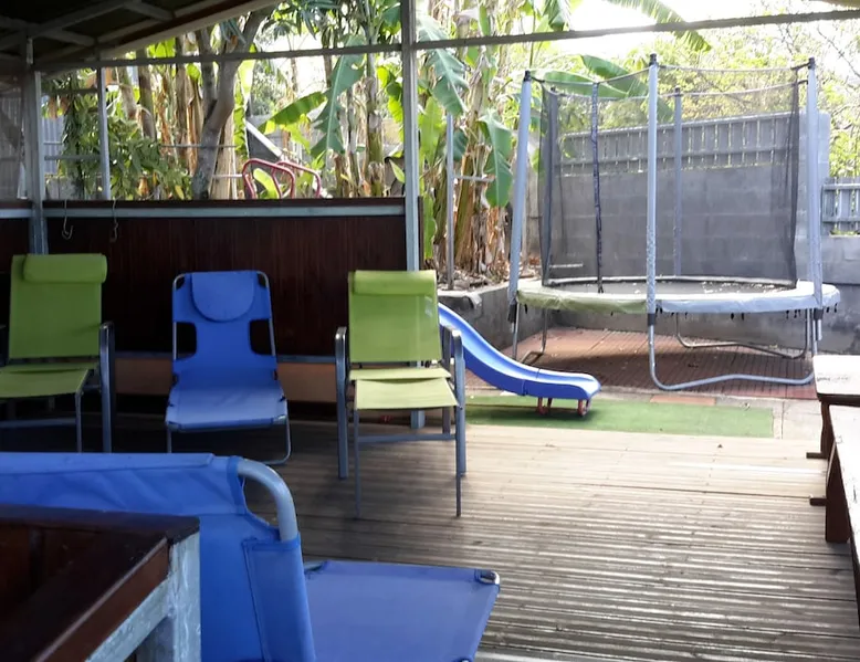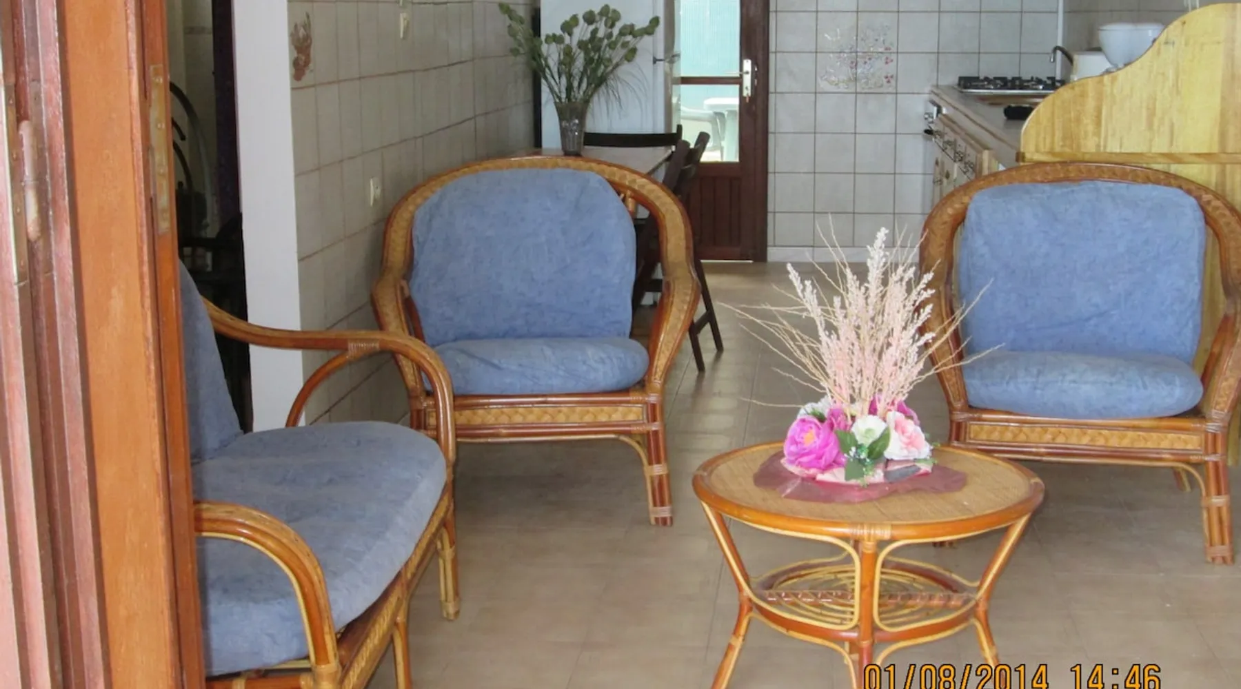 In Piton Saint Leu on the west coast of Reunion, we offer you in a small residence, on the same level with 3 apartments, that of the owner and 2 other entire apartments for rent, a pleasant 2-bedroom and a large fully-equipped studio with independent entrance and unobstructed ocean view. The yard is fenced with an electric car entrance gate. In the garden, you will enjoy a relaxation area with activities for children. The space All the amenities of a big city can be found on site. In 5 minutes you are at the shopping complex and its many shops. The Route des Tamarins (4 lanes) is also 5 minutes away. The city of Saint Leu and its beach is 8 minutes away. Due to its location halfway between St Paul and St Pierre la Côte Ouest, a major tourist attraction, our small family structure is the ideal place to quickly get to your favorite activity, paragliding, beach, diving, heritage tours unless you prefer long hikes in the cirques (Mafate Cilaos, Salazie). For golf lovers, the Bourbon Golf Course is less than a 12-minute drive away. The bus station that serves the beaches and all the cities of the island is a 3-minute walk from the accommodation. Guest access The pleasant T 3 , with an area of 60 m2 and 16 m2 of terrace includes: 2 double bedrooms with the possibility of installing a small crib. A common area with a desk and Wi-Fi connection. Separate bathroom and toiletries are well arranged for access to both bedrooms The living room area includes a coffee table, armchairs, flat-screen TV. Possibility of using an extra bed for children from 0 to 10 years old with a supplement of 6 euros per night The spacious kitchen is fully equipped with dishwasher, it opens onto a space entirely for you with barbecue, table and chairs The large terrace with sea views includes a large dining table with chairs and a small coffee table with armchairs for your comfort. Other things to note The base price is €49 for 2 people and €12 per additional person. You get a discount every 14 nights . In the price of your rental, you have a washing machine, ironing board and iron, vacuum cleaner, sheets, linens and towels are provided. Internet access is free Cleaning will be done upon arrival and you must leave the property clean upon checkout. If you don't want to do the departure cleaning, a cleaning package will be offered on site at a rate of €45. Furniture, appliances, kitchen utensils are in good working condition In the event that no inventory has been requested, the vacationer has 48 hours to inform the owner or their replacement of any discrepancy with the description they have found. After 48 hours, the listing will be considered as described. . MISCELLANEOUS: pets not allowed, no smoking in the rental. To visit Le grand studio: airbnb.fr/h/dattiers1