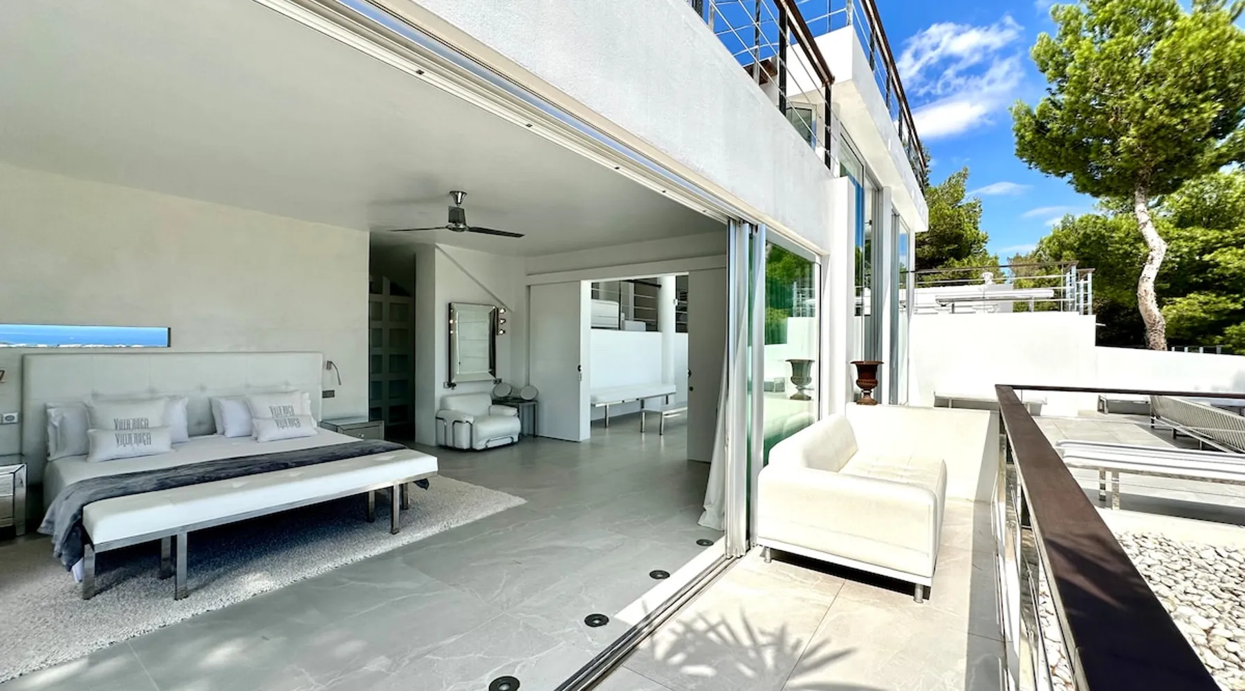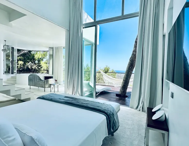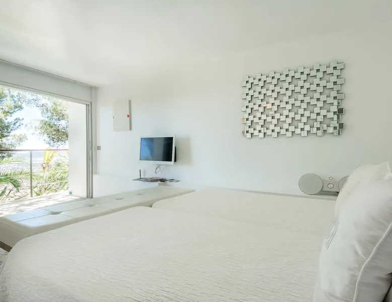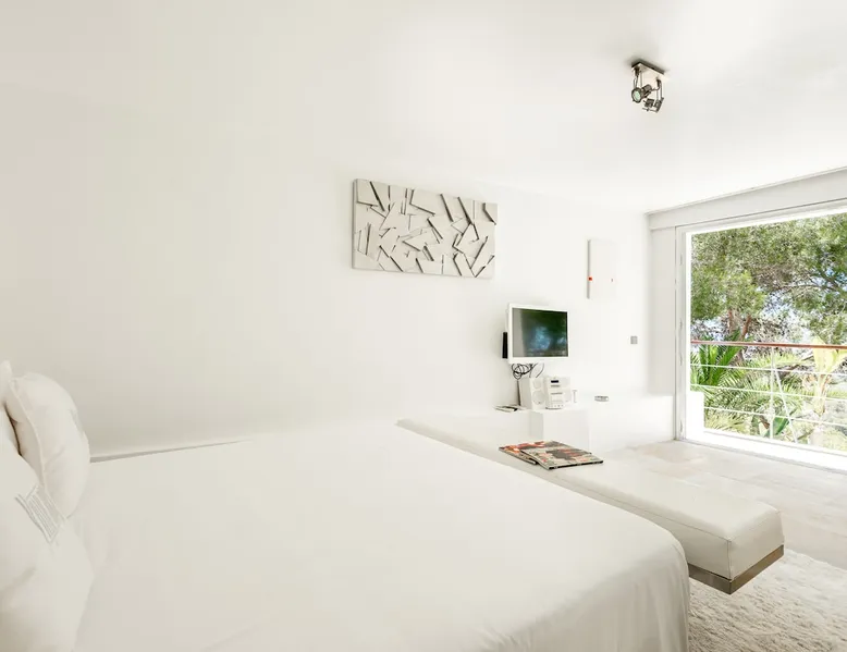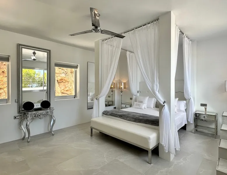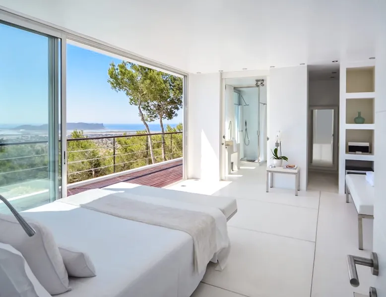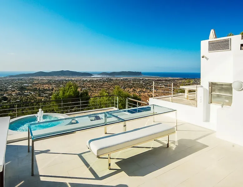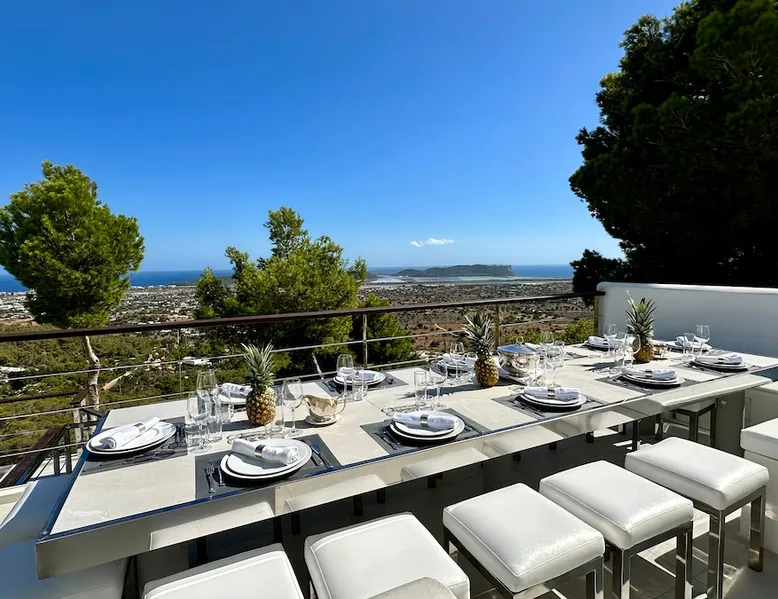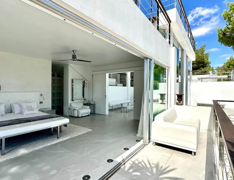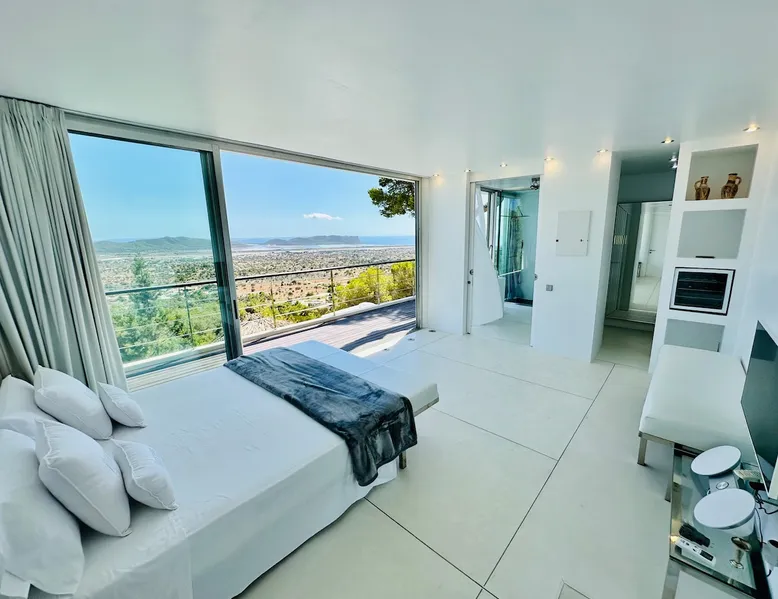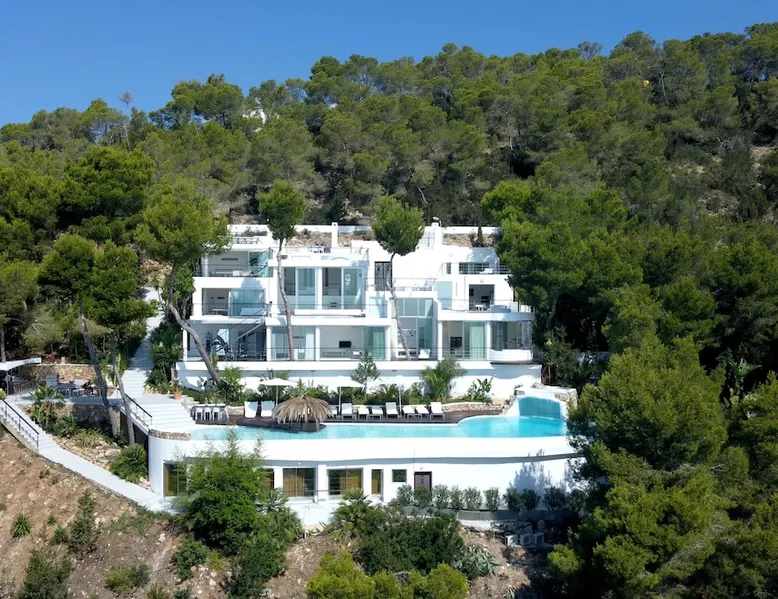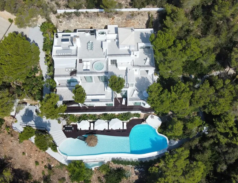 The space Villa Roca is considered to be the most Luxurious and exclusive villa in Ibiza (Conde Nast Traveller) and voted one of the 4th most fabulous Villa in the World (Harper’s Bazaar). Offering the services of a luxury hotel within the privacy of a private villa, this is the ultimate vacation destination in the Balearics. Built on its own mountain with no near neighbours, there are seven personal staff to cater for your every desire. The Chef (at extra cost) can prepare a selection of local organic ingredients and local sea-food (food costs extra), and butlers provide a round-the-clock service. Boasting spectacular 180º panoramic views of Ibiza Old Town, the beaches of Salinas, Es Codolar and the Island of Formentera, the vistas are truly world-class. The outdoor amenities include a large pool (32m/105 ft.) with waterfalls, hidden cave, floating cabana and sub-aquatic pool windows. There are also two hydro massage spa baths when you feel like unwinding in total comfort. To top it all off, you’ll find an infra-red detox sauna, pool-side bar with barman, dining and breakfast area also with barbecue. Villa Roca is one of those places where it’s almost impossible to do it justice with words alone. This ultra-modern mansion is tastefully furnished in minimalist style and is carved into the solid rock 200 m. above sea level, amid its own mature pine forest. Most of the furniture and fittings have been specially designed for Villa Roca with its impeccable 500 m2 (5,380 sq. feet) internal living space and 600m2 (6,450 sq. feet) of terraces and external living areas. In the most desired location on the island, the property is only 5 km to Ibiza Town (on the road to San José). The amazing nightlife, the clubs and bars of Ibiza are about a 10 minute drive, as are some of the best beaches on the island. Ibiza Airport (IBZ) is a mere 4 km away, so your vacation can start in earnest after touching down on Balearic soil. Copyright © Luxury Retreats. All Rights Reserved. Rental License: ETV-0980-E BEDROOM & BATHROOM Ground Level • Bedroom 1: 4-Poster King size bed, En-suite bathroom with shower and bathtub, Air conditioning, Satellite television, Sound system, Fireplace, Mini fridge, Private terrace Second Level • Bedroom 2 - Roman: King size bed, En-suite bathroom with shower and bathtub, Air conditioning, Satellite television, Sound system, Mini fridge, Private terrace • Bedroom 3 - Primary: King size bed, En-suite bathroom with shower and hot tub, Air conditioning, Satellite television, Sound system, Mini fridge, Terrace Third Level • Bedroom 4: King size bed, En-suite bathroom with shower, Air conditioning, Satellite television, DVD player, Sound system, Fireplace, Mini fridge, Terrace, Connects to Primary Bedroom 3 • Bedroom 5 – Junior Suite: King size bed, En-suite bathroom with shower and jetted bathtub, Air conditioning, Satellite television, Sound system, Mini fridge, Terrace Pool Level • Bedroom 6: Double bed, En-suite bathroom with shower, Air conditioning, Satellite television, Sound system, Mini fridge • Bedroom 7: 2 Single beds, En-suite bathroom with shower, Air conditioning, Satellite television, Sound system, Mini fridge • Bedroom 8: King size bed, En-suite bathroom with shower, Air conditioning, Satellite television, Sound system, Mini fridge FEATURES & AMENITIES • Exercise room OUTDOOR FEATURES • Sub-aquatic pool windows • Spring water mist system • Floating cabana • 12-Person bespoke hot tub • Small forest plunge pool • Dance floor/disco area • Bedouin chill-out tent • 180 degree panoramic view • Waterfalls STAFF & SERVICES At Extra Cost – advance notice may be required: • Activities and excursions • Event fee • Food cost • Stays shorter than one week Other things to note Chef at extra cost. Registration Details Ibiza - Regional registration number ETV-0980-E