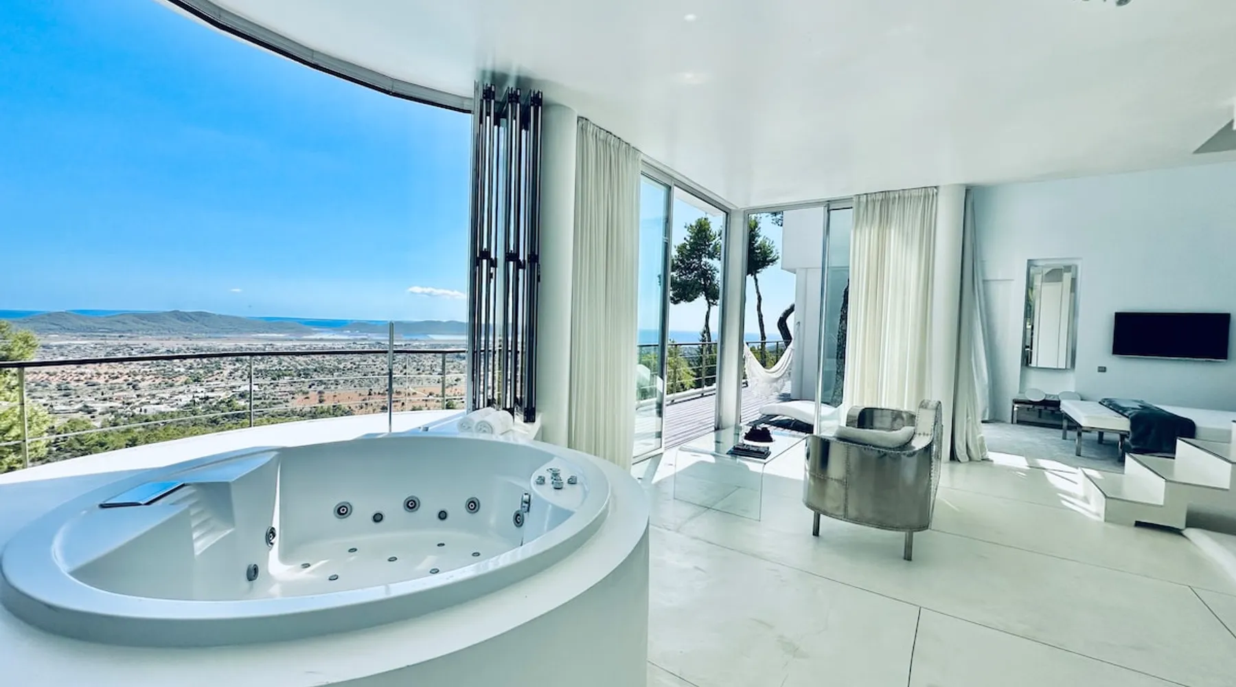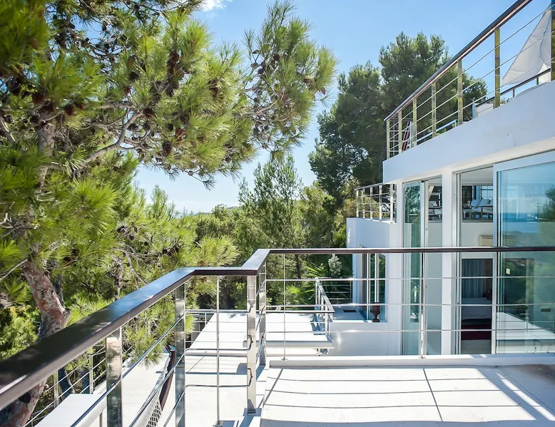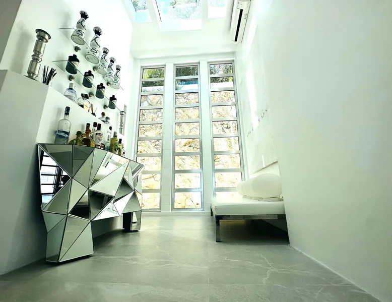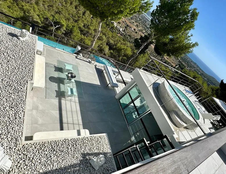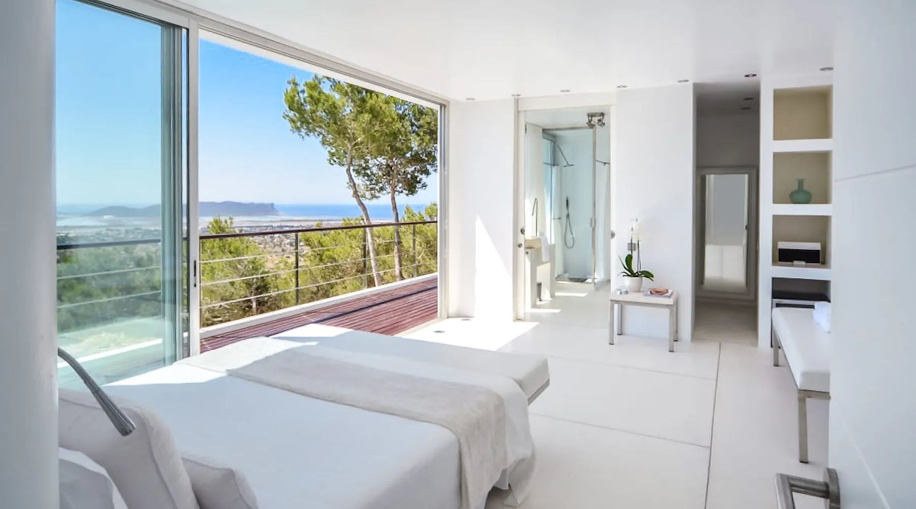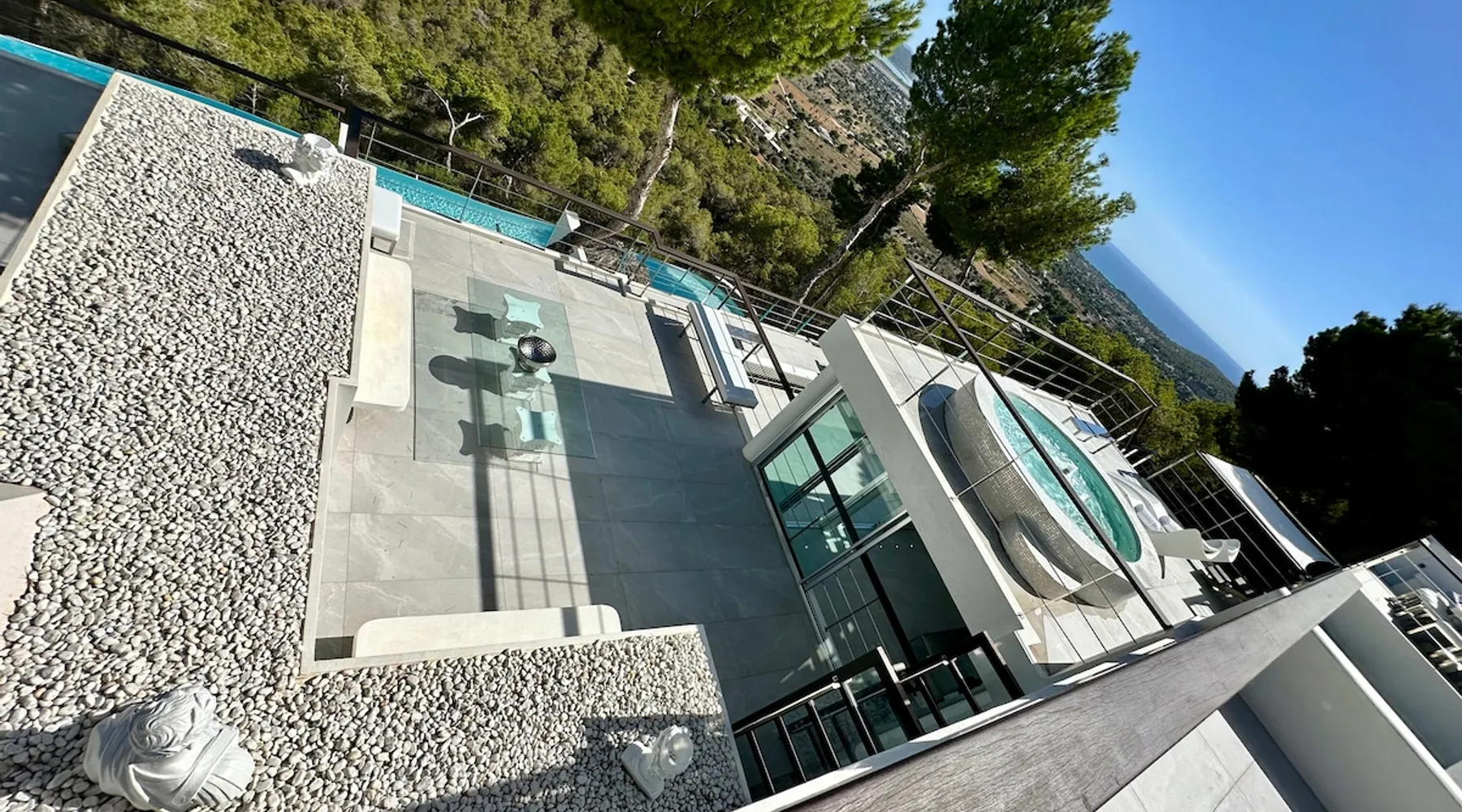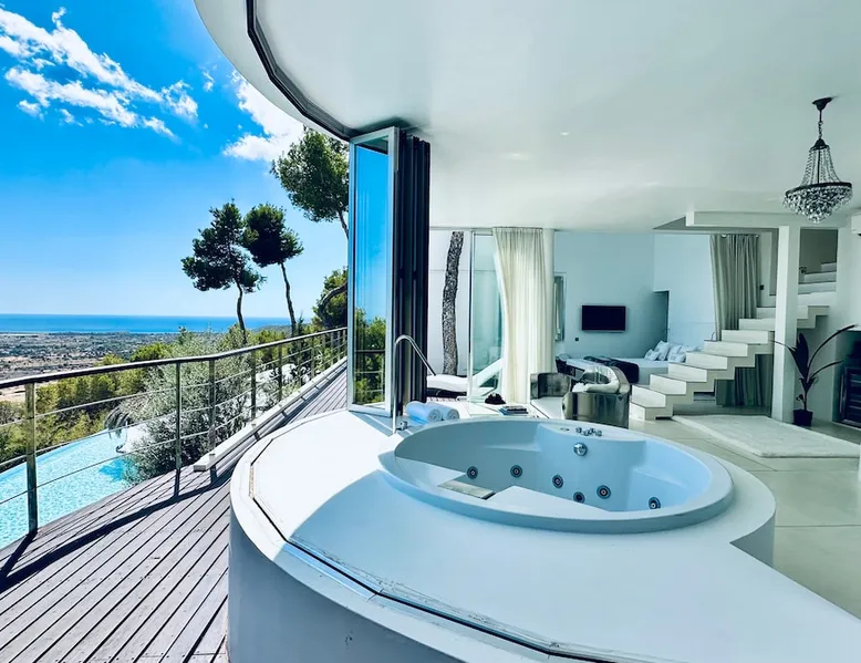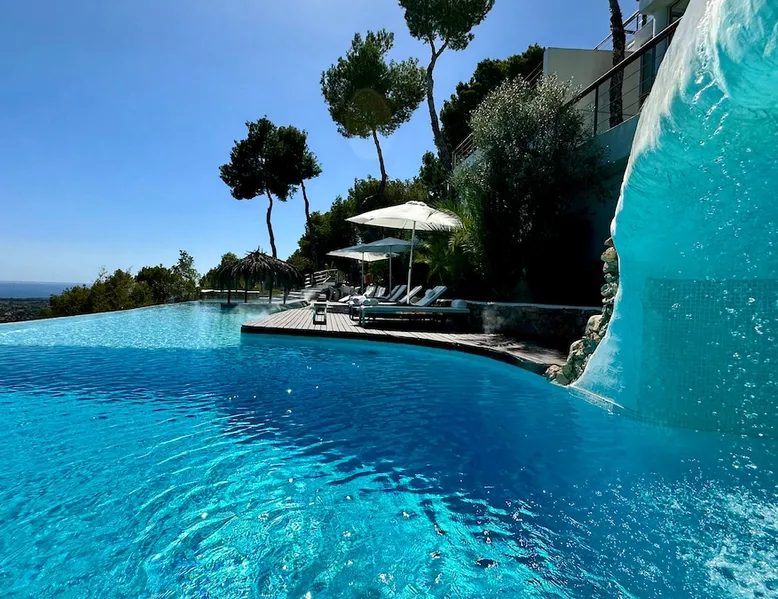 The space Villa Roca is considered to be the most Luxurious and exclusive villa in Ibiza (Conde Nast Traveller) and voted one of the 4th most fabulous Villa in the World (Harper’s Bazaar). Offering the services of a luxury hotel within the privacy of a private villa, this is the ultimate vacation destination in the Balearics. Built on its own mountain with no near neighbours, there are seven personal staff to cater for your every desire. The Chef (at extra cost) can prepare a selection of local organic ingredients and local sea-food (food costs extra), and butlers provide a round-the-clock service. Boasting spectacular 180º panoramic views of Ibiza Old Town, the beaches of Salinas, Es Codolar and the Island of Formentera, the vistas are truly world-class. The outdoor amenities include a large pool (32m/105 ft.) with waterfalls, hidden cave, floating cabana and sub-aquatic pool windows. There are also two hydro massage spa baths when you feel like unwinding in total comfort. To top it all off, you’ll find an infra-red detox sauna, pool-side bar with barman, dining and breakfast area also with barbecue. Villa Roca is one of those places where it’s almost impossible to do it justice with words alone. This ultra-modern mansion is tastefully furnished in minimalist style and is carved into the solid rock 200 m. above sea level, amid its own mature pine forest. Most of the furniture and fittings have been specially designed for Villa Roca with its impeccable 500 m2 (5,380 sq. feet) internal living space and 600m2 (6,450 sq. feet) of terraces and external living areas. In the most desired location on the island, the property is only 5 km to Ibiza Town (on the road to San José). The amazing nightlife, the clubs and bars of Ibiza are about a 10 minute drive, as are some of the best beaches on the island. Ibiza Airport (IBZ) is a mere 4 km away, so your vacation can start in earnest after touching down on Balearic soil. Copyright © Luxury Retreats. All Rights Reserved. Rental License: ETV-0980-E BEDROOM & BATHROOM Ground Level • Bedroom 1: 4-Poster King size bed, En-suite bathroom with shower and bathtub, Air conditioning, Satellite television, Sound system, Fireplace, Mini fridge, Private terrace Second Level • Bedroom 2 - Roman: King size bed, En-suite bathroom with shower and bathtub, Air conditioning, Satellite television, Sound system, Mini fridge, Private terrace • Bedroom 3 - Primary: King size bed, En-suite bathroom with shower and hot tub, Air conditioning, Satellite television, Sound system, Mini fridge, Terrace Third Level • Bedroom 4: King size bed, En-suite bathroom with shower, Air conditioning, Satellite television, DVD player, Sound system, Fireplace, Mini fridge, Terrace, Connects to Primary Bedroom 3 • Bedroom 5 – Junior Suite: King size bed, En-suite bathroom with shower and jetted bathtub, Air conditioning, Satellite television, Sound system, Mini fridge, Terrace Pool Level • Bedroom 6: Double bed, En-suite bathroom with shower, Air conditioning, Satellite television, Sound system, Mini fridge • Bedroom 7: 2 Single beds, En-suite bathroom with shower, Air conditioning, Satellite television, Sound system, Mini fridge • Bedroom 8: King size bed, En-suite bathroom with shower, Air conditioning, Satellite television, Sound system, Mini fridge FEATURES & AMENITIES • Exercise room OUTDOOR FEATURES • Sub-aquatic pool windows • Spring water mist system • Floating cabana • 12-Person bespoke hot tub • Small forest plunge pool • Dance floor/disco area • Bedouin chill-out tent • 180 degree panoramic view • Waterfalls STAFF & SERVICES At Extra Cost – advance notice may be required: • Activities and excursions • Event fee • Food cost • Stays shorter than one week Other things to note Chef at extra cost. Registration Details Ibiza - Regional registration number ETV-0980-E