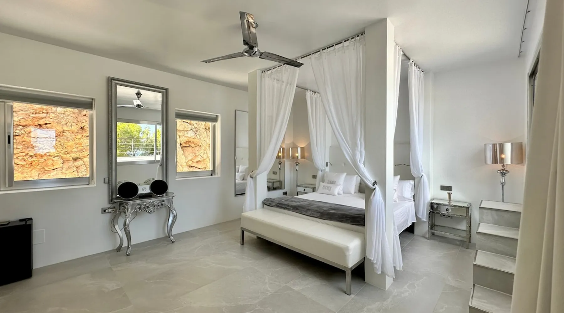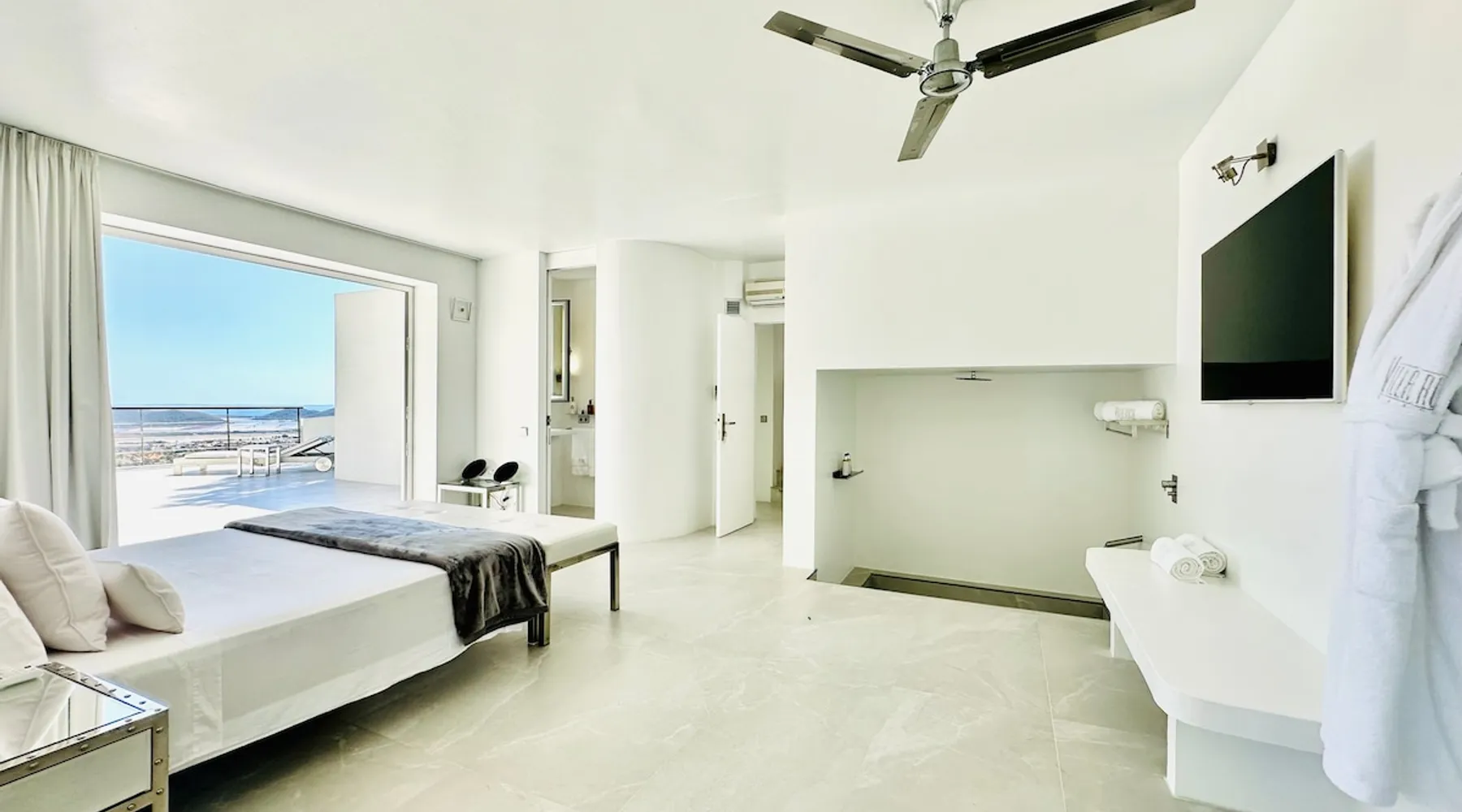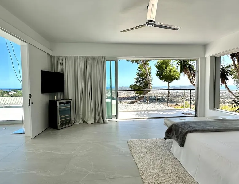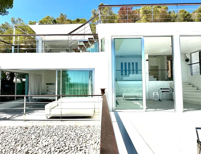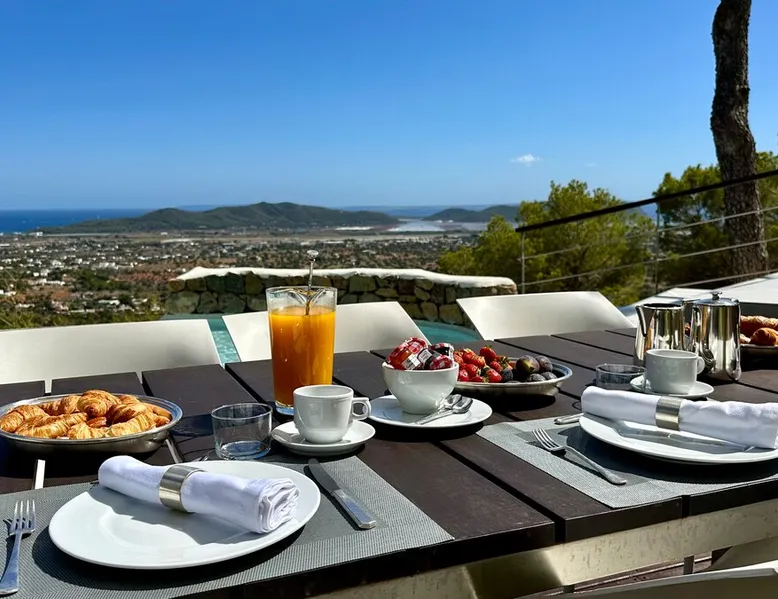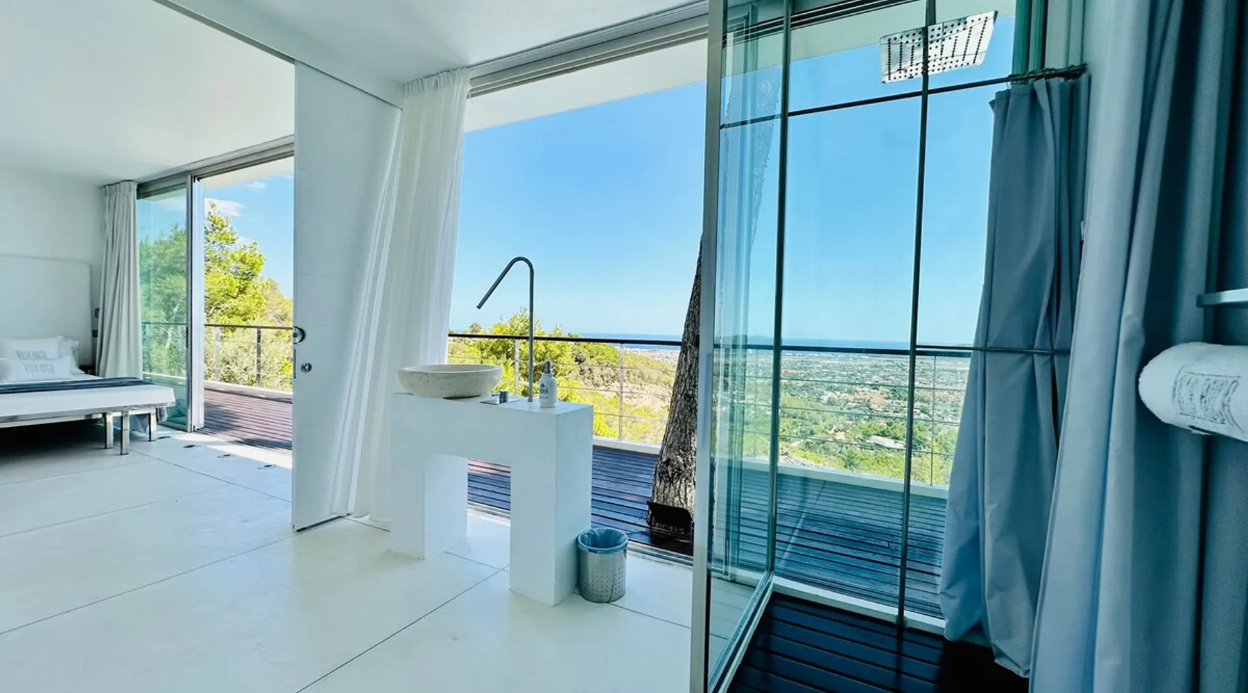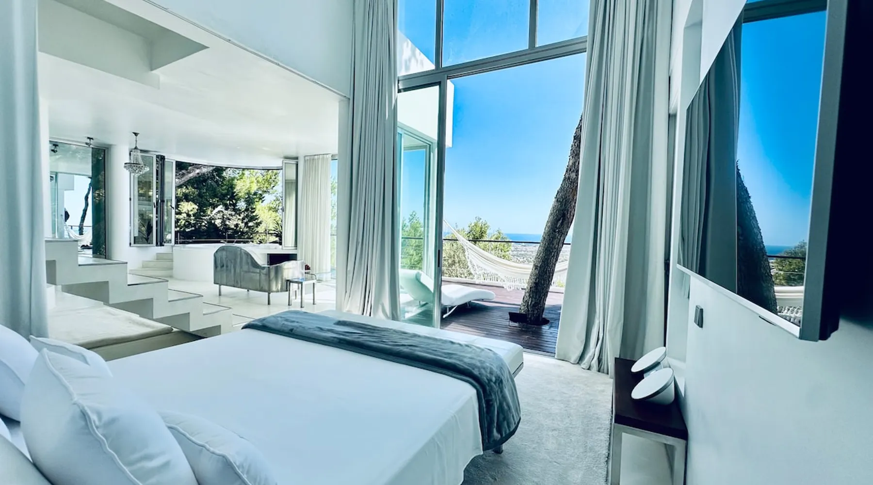 The space Villa Roca is considered to be the most Luxurious and exclusive villa in Ibiza (Conde Nast Traveller) and voted one of the 4th most fabulous Villa in the World (Harper’s Bazaar). Offering the services of a luxury hotel within the privacy of a private villa, this is the ultimate vacation destination in the Balearics. Built on its own mountain with no near neighbours, there are seven personal staff to cater for your every desire. The Chef (at extra cost) can prepare a selection of local organic ingredients and local sea-food (food costs extra), and butlers provide a round-the-clock service. Boasting spectacular 180º panoramic views of Ibiza Old Town, the beaches of Salinas, Es Codolar and the Island of Formentera, the vistas are truly world-class. The outdoor amenities include a large pool (32m/105 ft.) with waterfalls, hidden cave, floating cabana and sub-aquatic pool windows. There are also two hydro massage spa baths when you feel like unwinding in total comfort. To top it all off, you’ll find an infra-red detox sauna, pool-side bar with barman, dining and breakfast area also with barbecue. Villa Roca is one of those places where it’s almost impossible to do it justice with words alone. This ultra-modern mansion is tastefully furnished in minimalist style and is carved into the solid rock 200 m. above sea level, amid its own mature pine forest. Most of the furniture and fittings have been specially designed for Villa Roca with its impeccable 500 m2 (5,380 sq. feet) internal living space and 600m2 (6,450 sq. feet) of terraces and external living areas. In the most desired location on the island, the property is only 5 km to Ibiza Town (on the road to San José). The amazing nightlife, the clubs and bars of Ibiza are about a 10 minute drive, as are some of the best beaches on the island. Ibiza Airport (IBZ) is a mere 4 km away, so your vacation can start in earnest after touching down on Balearic soil. Copyright © Luxury Retreats. All Rights Reserved. Rental License: ETV-0980-E BEDROOM & BATHROOM Ground Level • Bedroom 1: 4-Poster King size bed, En-suite bathroom with shower and bathtub, Air conditioning, Satellite television, Sound system, Fireplace, Mini fridge, Private terrace Second Level • Bedroom 2 - Roman: King size bed, En-suite bathroom with shower and bathtub, Air conditioning, Satellite television, Sound system, Mini fridge, Private terrace • Bedroom 3 - Primary: King size bed, En-suite bathroom with shower and hot tub, Air conditioning, Satellite television, Sound system, Mini fridge, Terrace Third Level • Bedroom 4: King size bed, En-suite bathroom with shower, Air conditioning, Satellite television, DVD player, Sound system, Fireplace, Mini fridge, Terrace, Connects to Primary Bedroom 3 • Bedroom 5 – Junior Suite: King size bed, En-suite bathroom with shower and jetted bathtub, Air conditioning, Satellite television, Sound system, Mini fridge, Terrace Pool Level • Bedroom 6: Double bed, En-suite bathroom with shower, Air conditioning, Satellite television, Sound system, Mini fridge • Bedroom 7: 2 Single beds, En-suite bathroom with shower, Air conditioning, Satellite television, Sound system, Mini fridge • Bedroom 8: King size bed, En-suite bathroom with shower, Air conditioning, Satellite television, Sound system, Mini fridge FEATURES & AMENITIES • Exercise room OUTDOOR FEATURES • Sub-aquatic pool windows • Spring water mist system • Floating cabana • 12-Person bespoke hot tub • Small forest plunge pool • Dance floor/disco area • Bedouin chill-out tent • 180 degree panoramic view • Waterfalls STAFF & SERVICES At Extra Cost – advance notice may be required: • Activities and excursions • Event fee • Food cost • Stays shorter than one week Other things to note Chef at extra cost. Registration Details Ibiza - Regional registration number ETV-0980-E