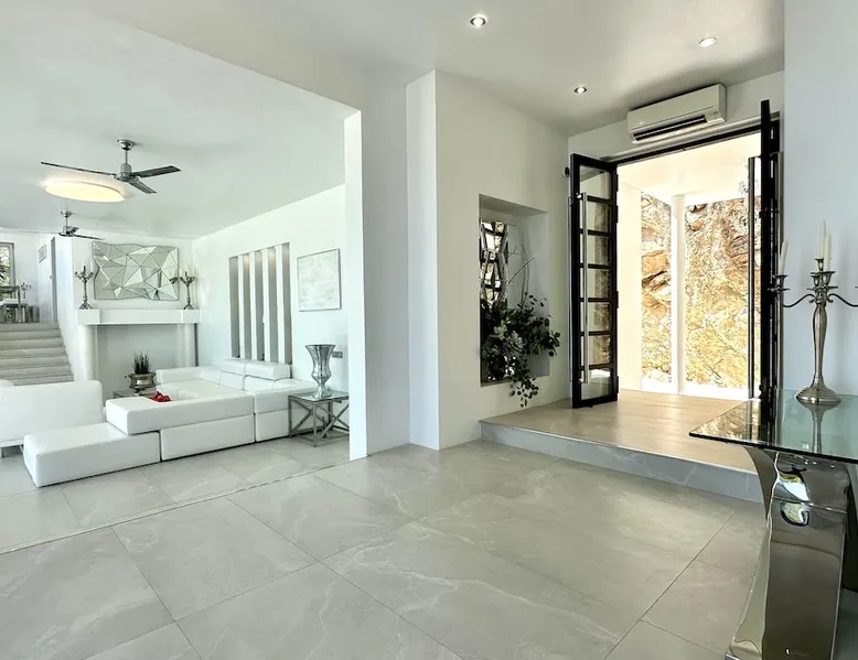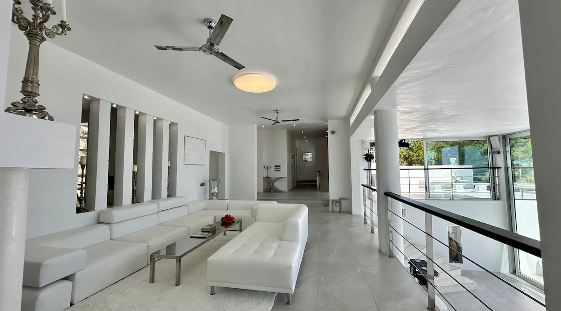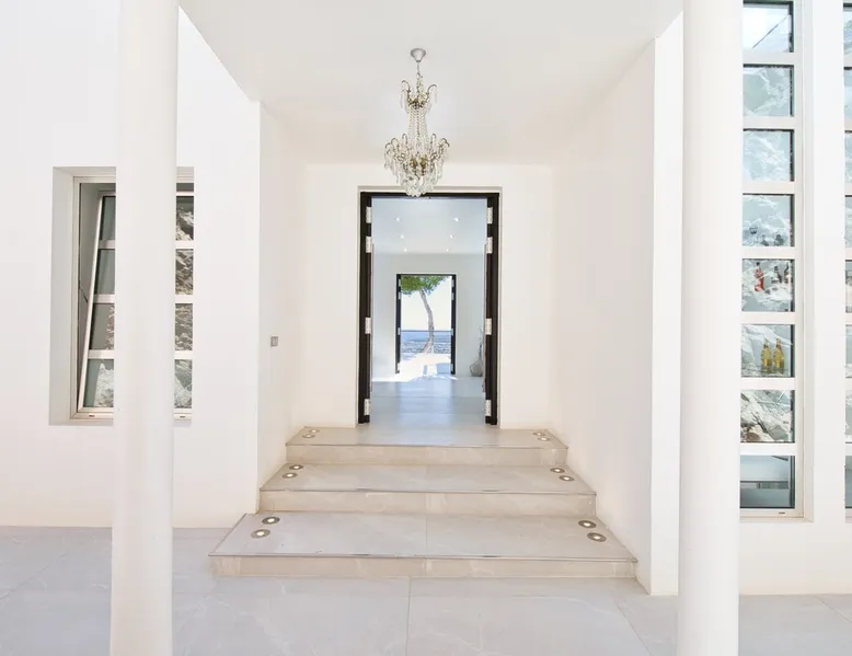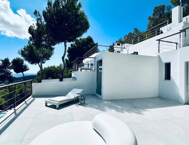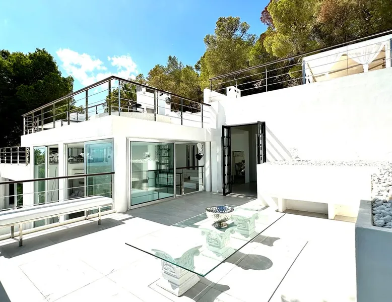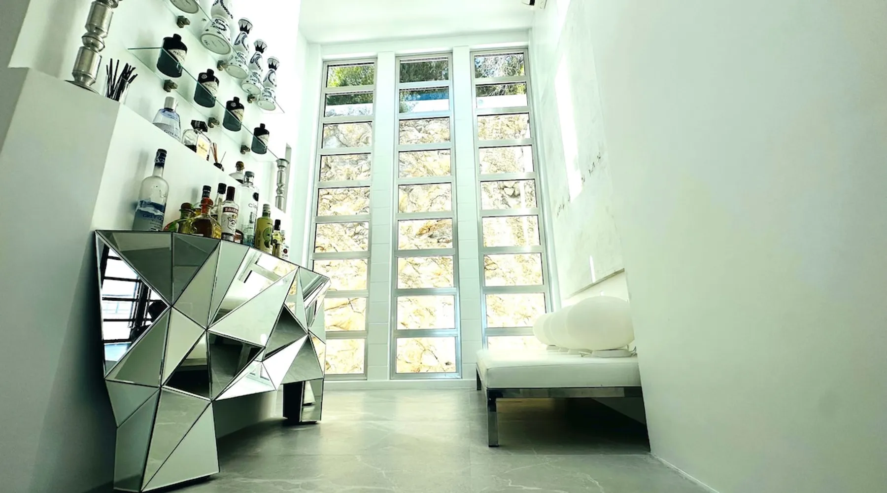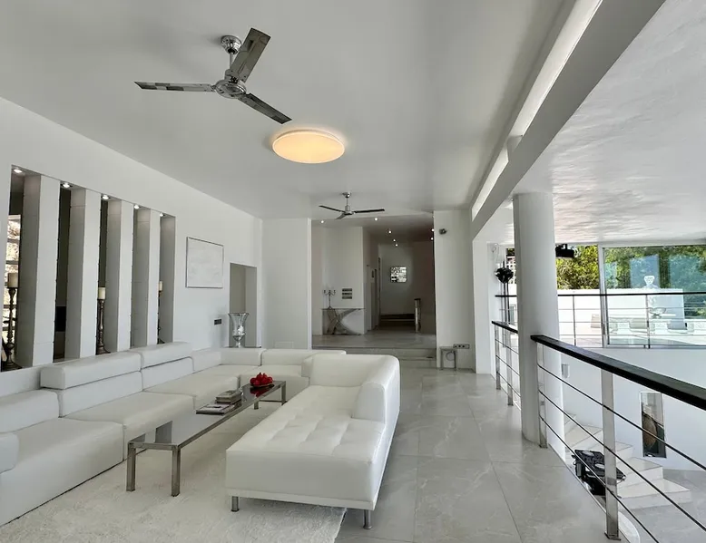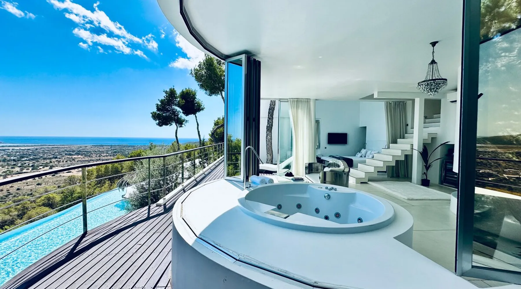 The space Villa Roca is considered to be the most Luxurious and exclusive villa in Ibiza (Conde Nast Traveller) and voted one of the 4th most fabulous Villa in the World (Harper’s Bazaar). Offering the services of a luxury hotel within the privacy of a private villa, this is the ultimate vacation destination in the Balearics. Built on its own mountain with no near neighbours, there are seven personal staff to cater for your every desire. The Chef (at extra cost) can prepare a selection of local organic ingredients and local sea-food (food costs extra), and butlers provide a round-the-clock service. Boasting spectacular 180º panoramic views of Ibiza Old Town, the beaches of Salinas, Es Codolar and the Island of Formentera, the vistas are truly world-class. The outdoor amenities include a large pool (32m/105 ft.) with waterfalls, hidden cave, floating cabana and sub-aquatic pool windows. There are also two hydro massage spa baths when you feel like unwinding in total comfort. To top it all off, you’ll find an infra-red detox sauna, pool-side bar with barman, dining and breakfast area also with barbecue. Villa Roca is one of those places where it’s almost impossible to do it justice with words alone. This ultra-modern mansion is tastefully furnished in minimalist style and is carved into the solid rock 200 m. above sea level, amid its own mature pine forest. Most of the furniture and fittings have been specially designed for Villa Roca with its impeccable 500 m2 (5,380 sq. feet) internal living space and 600m2 (6,450 sq. feet) of terraces and external living areas. In the most desired location on the island, the property is only 5 km to Ibiza Town (on the road to San José). The amazing nightlife, the clubs and bars of Ibiza are about a 10 minute drive, as are some of the best beaches on the island. Ibiza Airport (IBZ) is a mere 4 km away, so your vacation can start in earnest after touching down on Balearic soil. Copyright © Luxury Retreats. All Rights Reserved. Rental License: ETV-0980-E BEDROOM & BATHROOM Ground Level • Bedroom 1: 4-Poster King size bed, En-suite bathroom with shower and bathtub, Air conditioning, Satellite television, Sound system, Fireplace, Mini fridge, Private terrace Second Level • Bedroom 2 - Roman: King size bed, En-suite bathroom with shower and bathtub, Air conditioning, Satellite television, Sound system, Mini fridge, Private terrace • Bedroom 3 - Primary: King size bed, En-suite bathroom with shower and hot tub, Air conditioning, Satellite television, Sound system, Mini fridge, Terrace Third Level • Bedroom 4: King size bed, En-suite bathroom with shower, Air conditioning, Satellite television, DVD player, Sound system, Fireplace, Mini fridge, Terrace, Connects to Primary Bedroom 3 • Bedroom 5 – Junior Suite: King size bed, En-suite bathroom with shower and jetted bathtub, Air conditioning, Satellite television, Sound system, Mini fridge, Terrace Pool Level • Bedroom 6: Double bed, En-suite bathroom with shower, Air conditioning, Satellite television, Sound system, Mini fridge • Bedroom 7: 2 Single beds, En-suite bathroom with shower, Air conditioning, Satellite television, Sound system, Mini fridge • Bedroom 8: King size bed, En-suite bathroom with shower, Air conditioning, Satellite television, Sound system, Mini fridge FEATURES & AMENITIES • Exercise room OUTDOOR FEATURES • Sub-aquatic pool windows • Spring water mist system • Floating cabana • 12-Person bespoke hot tub • Small forest plunge pool • Dance floor/disco area • Bedouin chill-out tent • 180 degree panoramic view • Waterfalls STAFF & SERVICES At Extra Cost – advance notice may be required: • Activities and excursions • Event fee • Food cost • Stays shorter than one week Other things to note Chef at extra cost. Registration Details Ibiza - Regional registration number ETV-0980-E