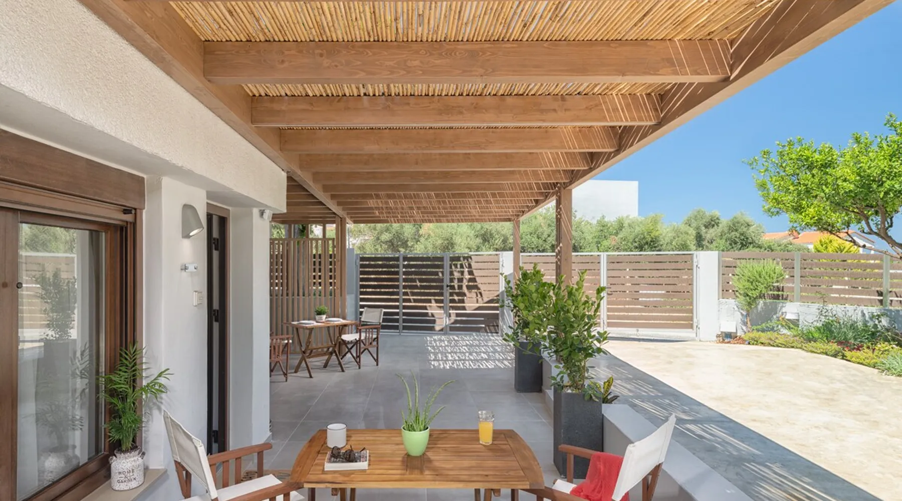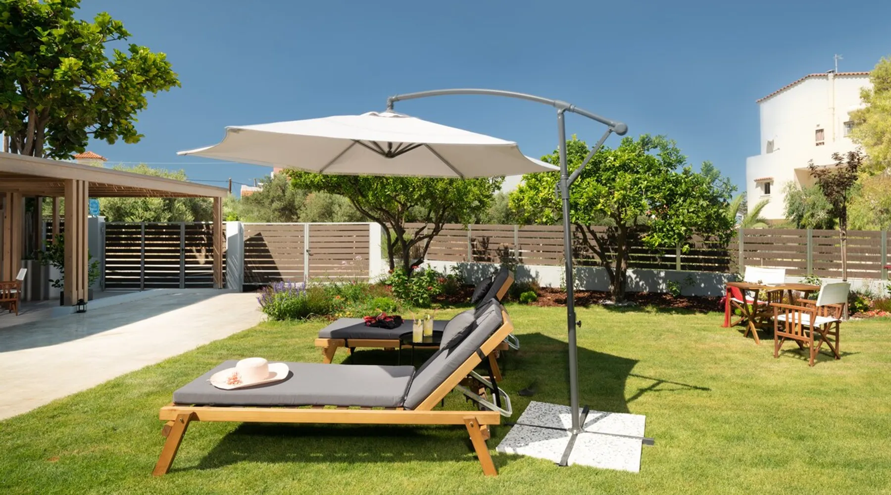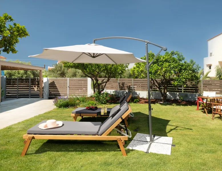 Modern style 45 square meter garden apartment right next to Limanakia beach and in 10 minute walk from Chersonissos city, refurbished in April 2024. You will be provided with spacious, fully furnished and equipped facilities & up-to-date amenities, involving a kitchen, living room, bedroom, bathroom, yard & garden. Within walking distance you may find healthcare center, cafes, banks, bakeries, supermarkets, restaurants, bus stops & taxi stands. It can accommodate up to 4 people conveniently. The space They may say that there is no place like home, but we would like to make sure that you are going to feel the comfort and joy you deserve. Besides your privacy, with 45 m2 you will have all the space you need to relax and have fun. The apartment is on the ground floor with a yard and a 50m2 garden next to it. You have access to all rooms and equipment of the house. Bedroom : air conditioning, queen bed (160x200cm), 32 inch smart tv, wardrobe, mirror, hangers, drawers, double-glazing windows-all having sliding mosquito screens, curtains, shutters, bedside tables, clean sheets, blankets, pillows and pillowcases. Bathroom: shower, hot water, mirror, laundry, hairdryer, shampoo, shower gel, detergent, hand soap, towels Fully Functional Kitchen: a large NoFrost fridge-freezer, cooker with an oven and four burners, cooker hood, kitchenware, bar with 3 stools, cupboards, drawers, fridge with freezer compartment, cutlery, dinnerware, glassware, nespresso machine, washing machine, sandwich maker, water boiler, ice cubes, seasoning and spices, olive oil, sugar, coffee. Living room: 42 inch 4K Ultra HD Smart LED TV, air conditioning, living room table, sofa bed(bed dimensions: 110x190cm), sofa bed (bed dimensions: 140x200cm), French doors,double-glazing doors and windows- all having sliding mosquito screens, curtains Yard: dining table and chairs, 30 m2 long Garden: 50m2 long, 2 wooden beach chairs with pillows, 2 bamboo chairs with pillows Also Available for you: private parking, Wi-Fi Internet access, desk area, wardrobe, hoover, iron, drying rack, first aid kit, fire extinguisher, smoke detector, water heater. Windows are equipped with double glazing. In order to respect the neighbors it is not allowed to have parties in the apartment. Smoking is forbidden in the interior, but you are able to smoke in the yard. Registration Details 00002749654