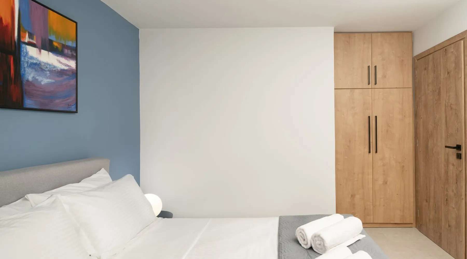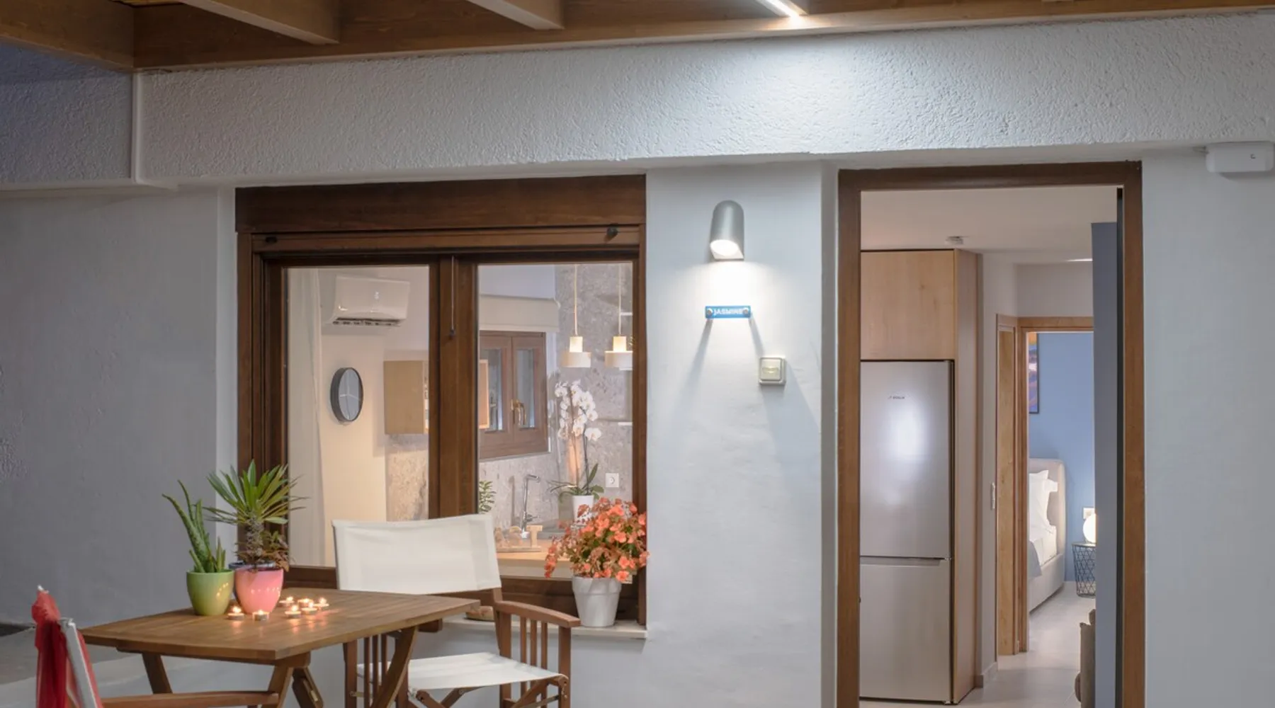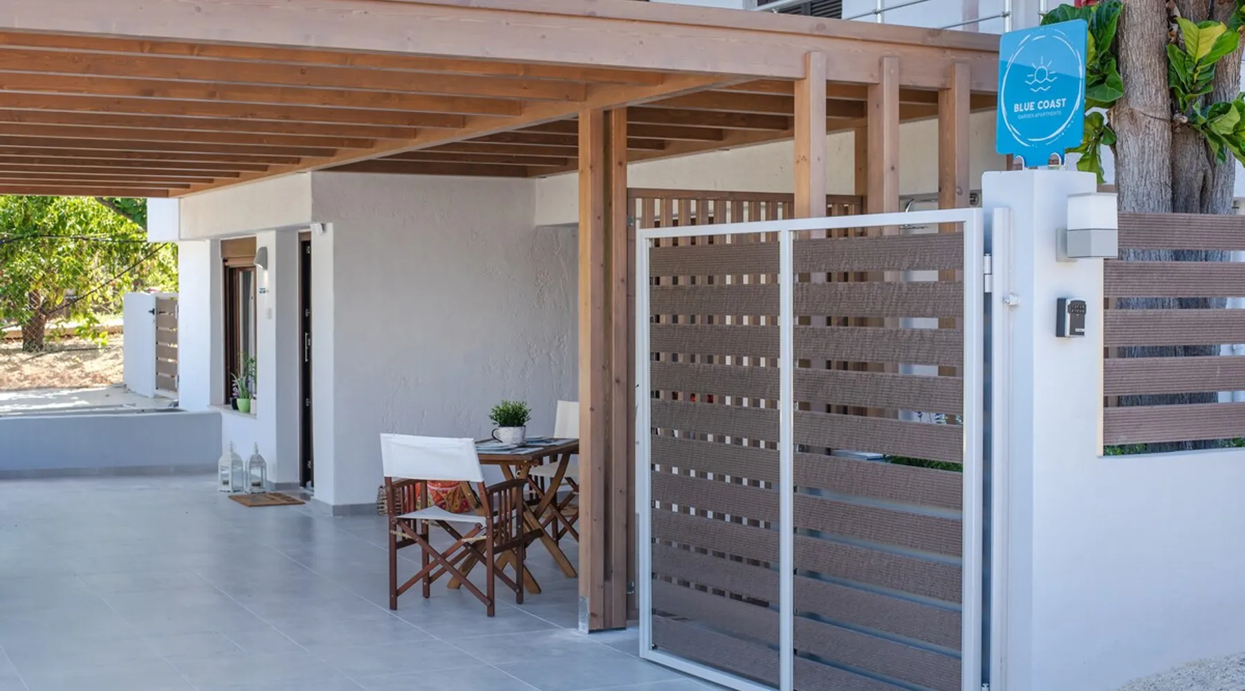 Modern style 45 square meter garden apartment right next to Limanakia beach and in 10 minute walk from Chersonissos city, refurbished in April 2024. You will be provided with spacious, fully furnished and equipped facilities & up-to-date amenities, involving a kitchen, living room, bedroom, bathroom, yard & garden. Within walking distance you may find healthcare center, cafes, banks, bakeries, supermarkets, restaurants, bus stops & taxi stands. It can accommodate up to 4 people conveniently. The space They may say that there is no place like home, but we would like to make sure that you are going to feel the comfort and joy you deserve. Besides your privacy, with 45 m2 you will have all the space you need to relax and have fun. The apartment is on the ground floor with a yard and a 50m2 garden next to it. You have access to all rooms and equipment of the house. Bedroom : air conditioning, queen bed (160x200cm), 32 inch smart tv, wardrobe, mirror, hangers, drawers, double-glazing windows-all having sliding mosquito screens, curtains, shutters, bedside tables, clean sheets, blankets, pillows and pillowcases. Bathroom: shower, hot water, mirror, laundry, hairdryer, shampoo, shower gel, detergent, hand soap, towels Fully Functional Kitchen: a large NoFrost fridge-freezer, cooker with an oven and four burners, cooker hood, kitchenware, bar with 3 stools, cupboards, drawers, fridge with freezer compartment, cutlery, dinnerware, glassware, nespresso machine, washing machine, sandwich maker, water boiler, ice cubes, seasoning and spices, olive oil, sugar, coffee. Living room: 42 inch 4K Ultra HD Smart LED TV, air conditioning, living room table, sofa bed(bed dimensions: 110x190cm), sofa bed (bed dimensions: 140x200cm), French doors,double-glazing doors and windows- all having sliding mosquito screens, curtains Yard: dining table and chairs, 30 m2 long Garden: 50m2 long, 2 wooden beach chairs with pillows, 2 bamboo chairs with pillows Also Available for you: private parking, Wi-Fi Internet access, desk area, wardrobe, hoover, iron, drying rack, first aid kit, fire extinguisher, smoke detector, water heater. Windows are equipped with double glazing. In order to respect the neighbors it is not allowed to have parties in the apartment. Smoking is forbidden in the interior, but you are able to smoke in the yard. Registration Details 00002749654
