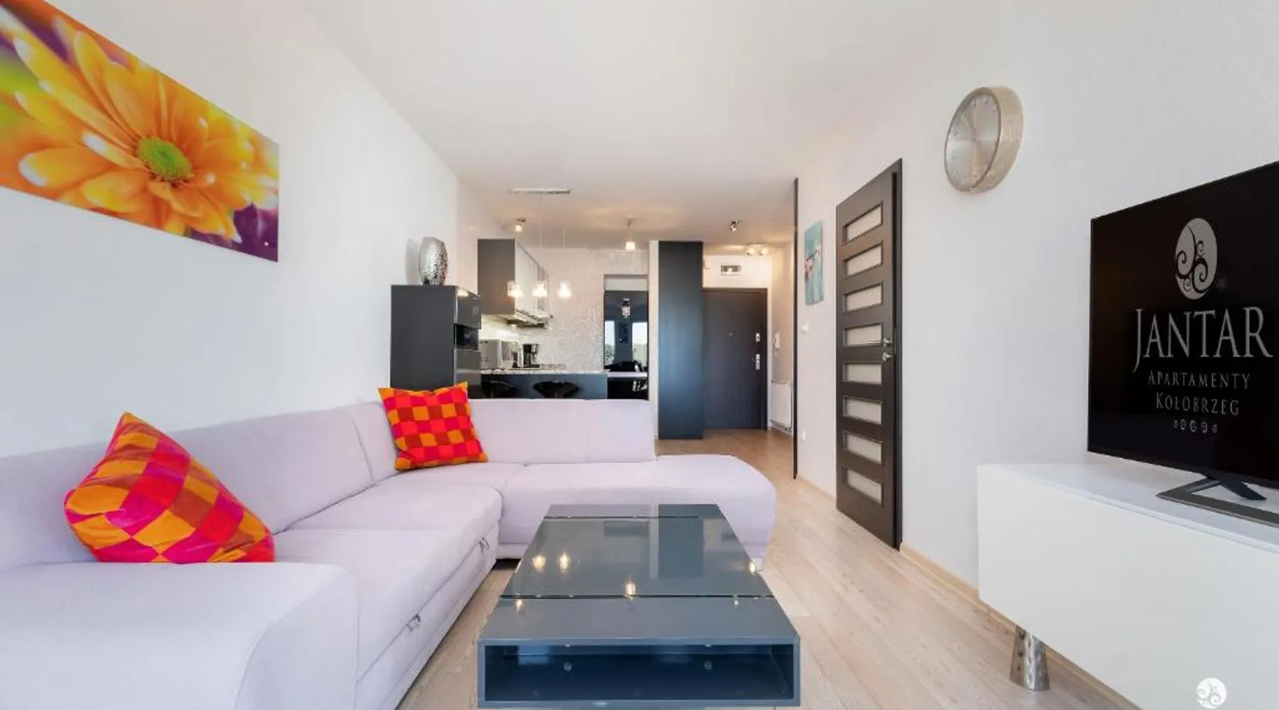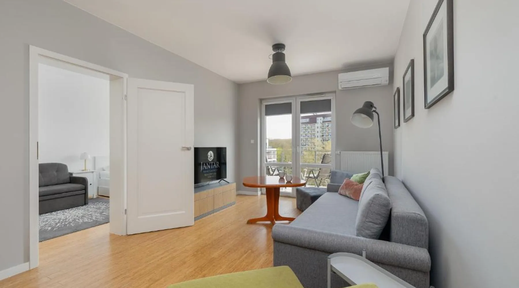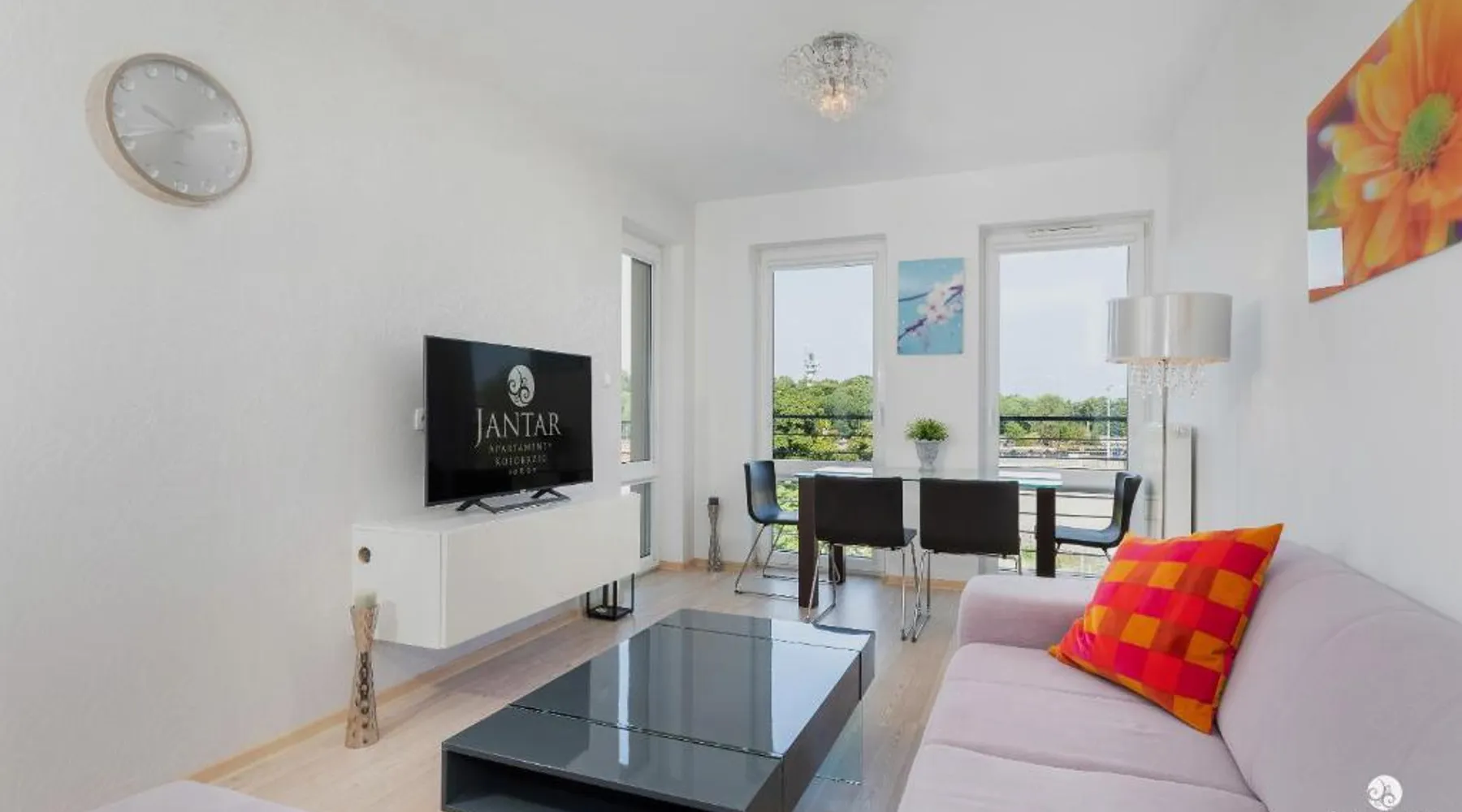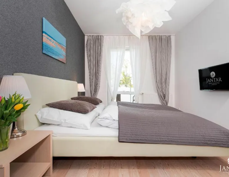 Comfortable Accommodations: Jantar Apartamenty Residence Maritimo in Kołobrzeg offers modern apartments with private bathrooms, sea views, and balconies. Each apartment includes a kitchenette, washing machine, and free toiletries. Dining Experience: The on-site restaurant serves lunch, dinner, and cocktails in a contemporary ambiance. Guests can also enjoy a coffee shop and outdoor dining area. Convenient Location: Located 65 mi from Solidarity Szczecin-Goleniów Airport, the apartment is a short walk from Kolobrzeg Central Beach and nearby attractions such as Kołobrzeg Lighthouse and Kołobrzeg Railway Station. Boating is available in the surroundings. Guest Satisfaction: Highly rated for its convenient location and room comfort, the property provides a paid airport shuttle service, elevator, and family rooms. This apartment is consisted of of 2 living rooms, 1 separate bedroom and 1 bathroom with a walk-in shower and free toiletries. In the kitchenette, guests will find a stovetop, a refrigerator, a dishwasher and kitchenware. Featuring a balcony with sea views, this apartment also offers a washing machine and a flat-screen TV. The unit offers 2 beds.