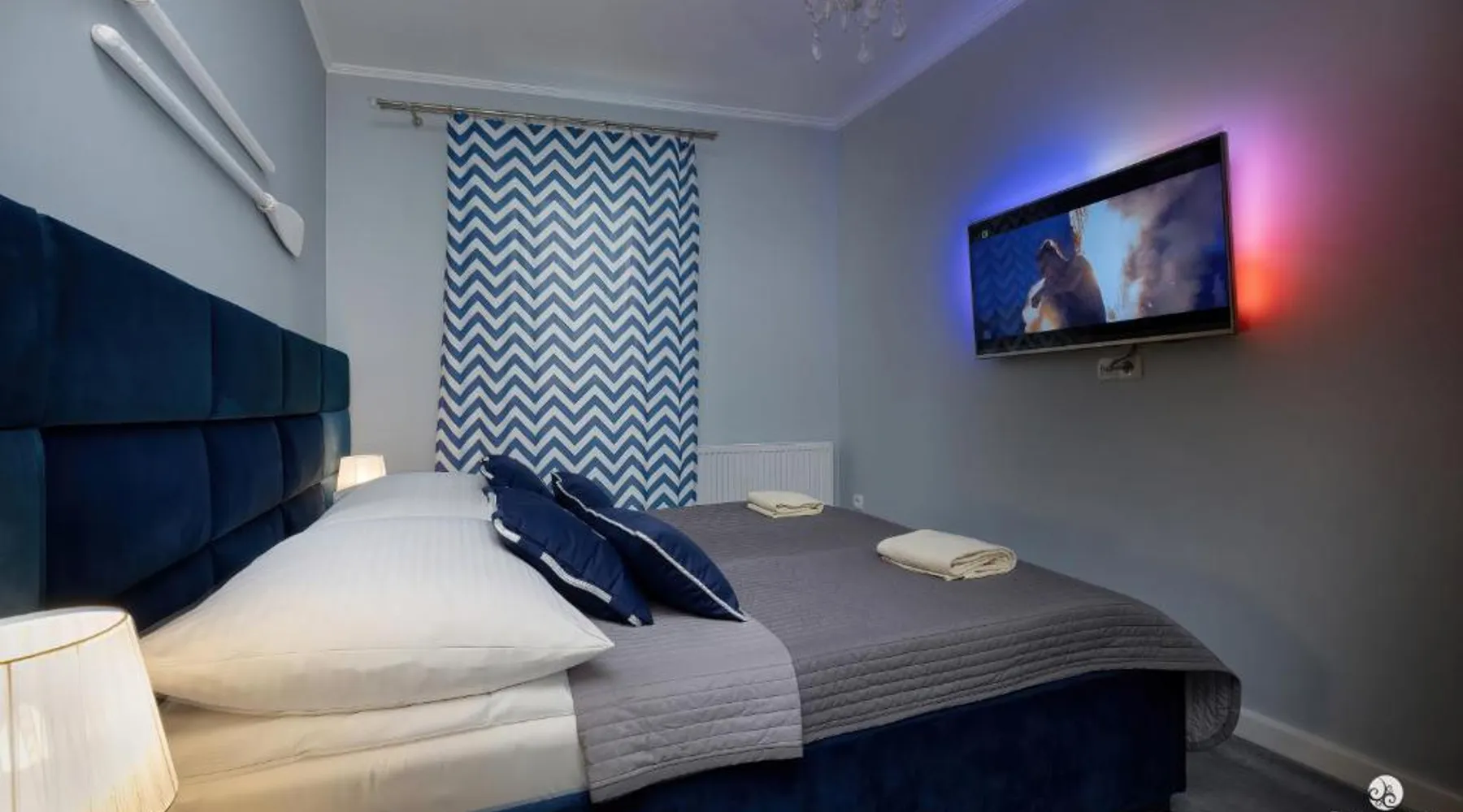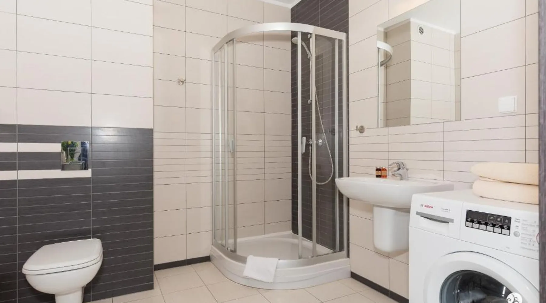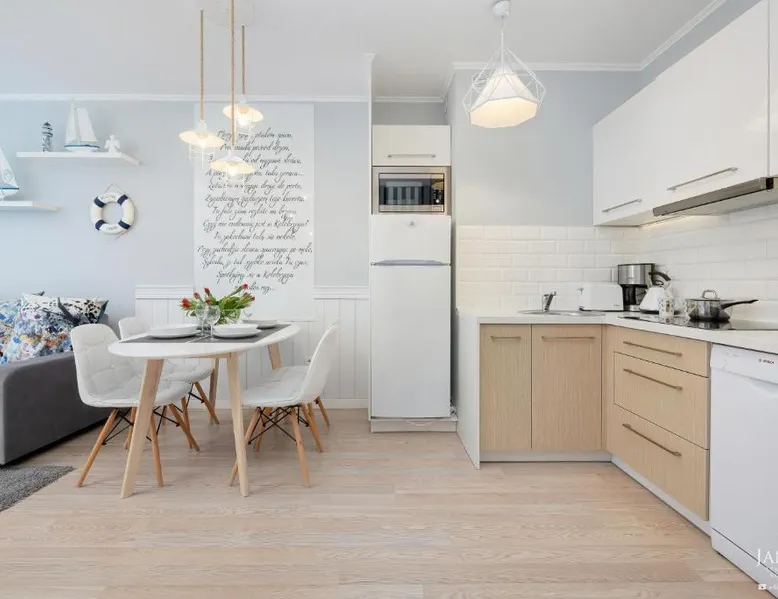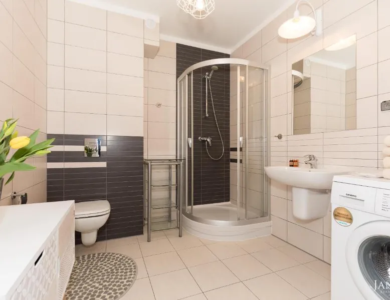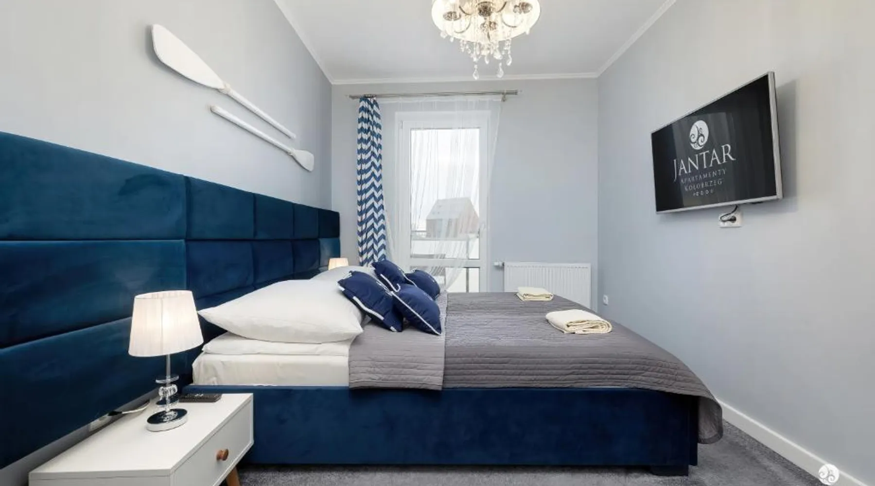 Comfortable Accommodations: Jantar Apartamenty Residence Maritimo in Kołobrzeg offers modern apartments with private bathrooms, sea views, and balconies. Each apartment includes a kitchenette, washing machine, and free toiletries. Dining Experience: The on-site restaurant serves lunch, dinner, and cocktails in a contemporary ambiance. Guests can also enjoy a coffee shop and outdoor dining area. Convenient Location: Located 65 mi from Solidarity Szczecin-Goleniów Airport, the apartment is a short walk from Kolobrzeg Central Beach and nearby attractions such as Kołobrzeg Lighthouse and Kołobrzeg Railway Station. Boating is available in the surroundings. Guest Satisfaction: Highly rated for its convenient location and room comfort, the property provides a paid airport shuttle service, elevator, and family rooms. This apartment is consisted of of 2 living rooms, 1 separate bedroom and 1 bathroom with a walk-in shower and free toiletries. In the kitchenette, guests will find a stovetop, a refrigerator, a dishwasher and kitchenware. Featuring a balcony with sea views, this apartment also offers a washing machine and a flat-screen TV. The unit offers 2 beds.