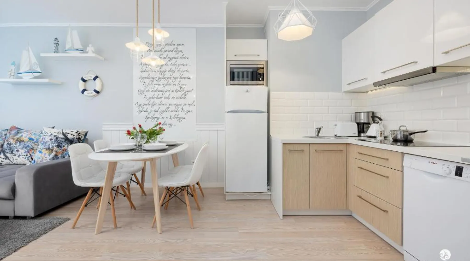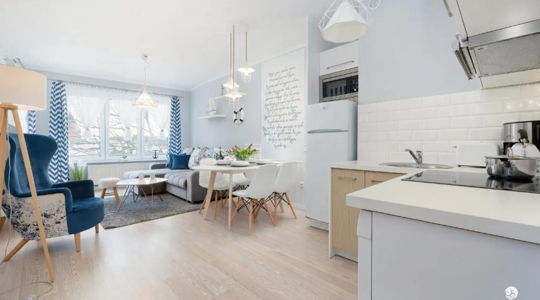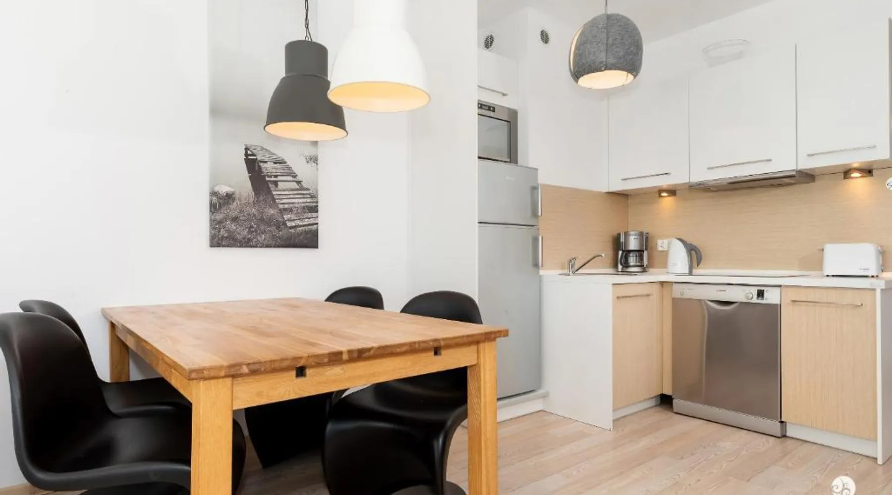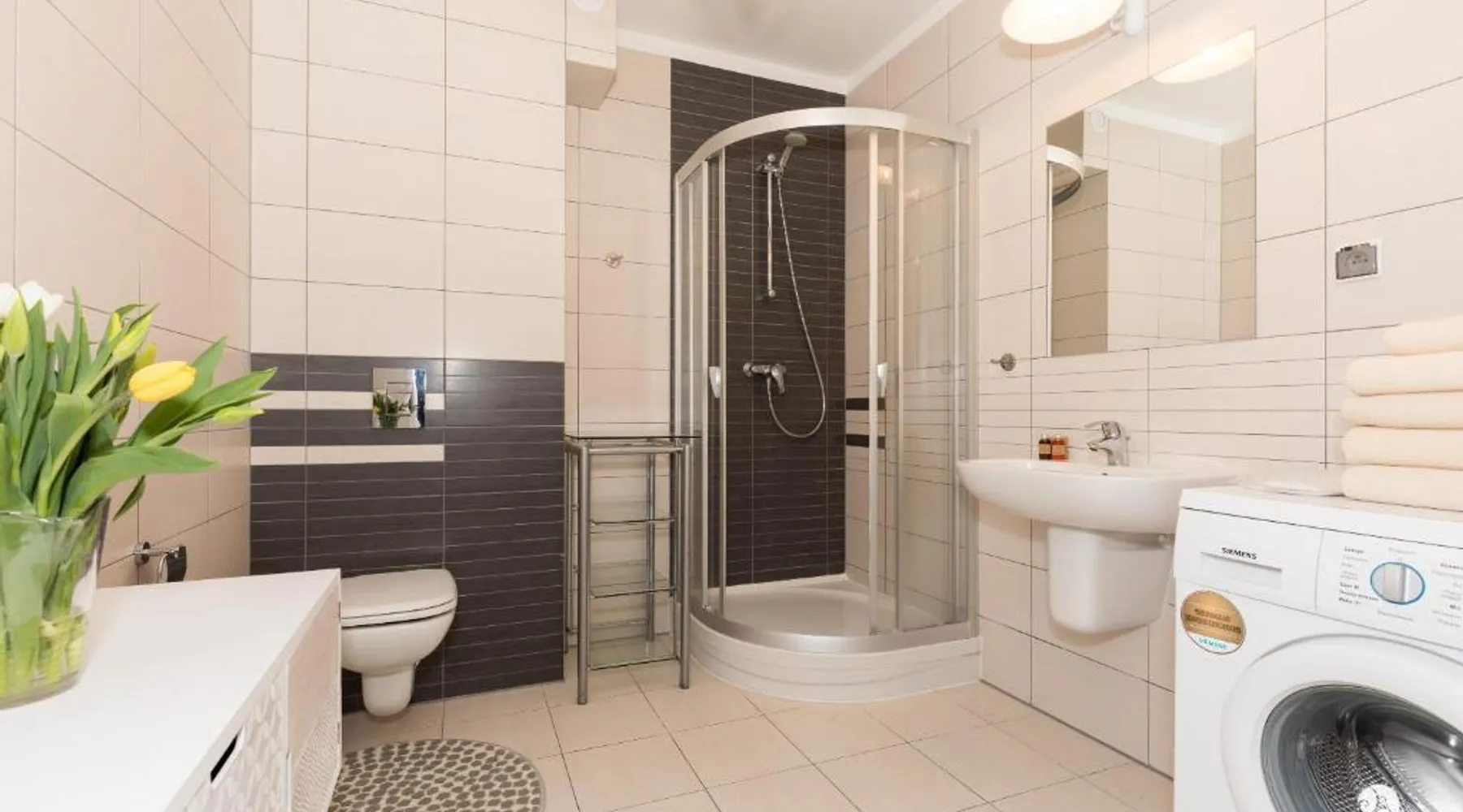 Comfortable Accommodations: Jantar Apartamenty Residence Maritimo in Kołobrzeg offers modern apartments with private bathrooms, sea views, and balconies. Each apartment includes a kitchenette, washing machine, and free toiletries. Dining Experience: The on-site restaurant serves lunch, dinner, and cocktails in a contemporary ambiance. Guests can also enjoy a coffee shop and outdoor dining area. Convenient Location: Located 65 mi from Solidarity Szczecin-Goleniów Airport, the apartment is a short walk from Kolobrzeg Central Beach and nearby attractions such as Kołobrzeg Lighthouse and Kołobrzeg Railway Station. Boating is available in the surroundings. Guest Satisfaction: Highly rated for its convenient location and room comfort, the property provides a paid airport shuttle service, elevator, and family rooms. This apartment is consisted of of 2 living rooms, 1 separate bedroom and 1 bathroom with a walk-in shower and free toiletries. In the kitchenette, guests will find a stovetop, a refrigerator, a dishwasher and kitchenware. Featuring a balcony with sea views, this apartment also offers a washing machine and a flat-screen TV. The unit offers 2 beds.