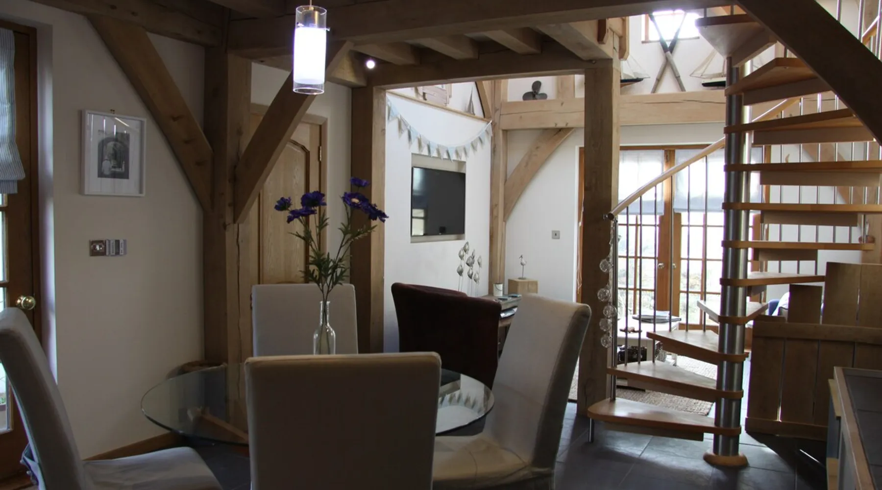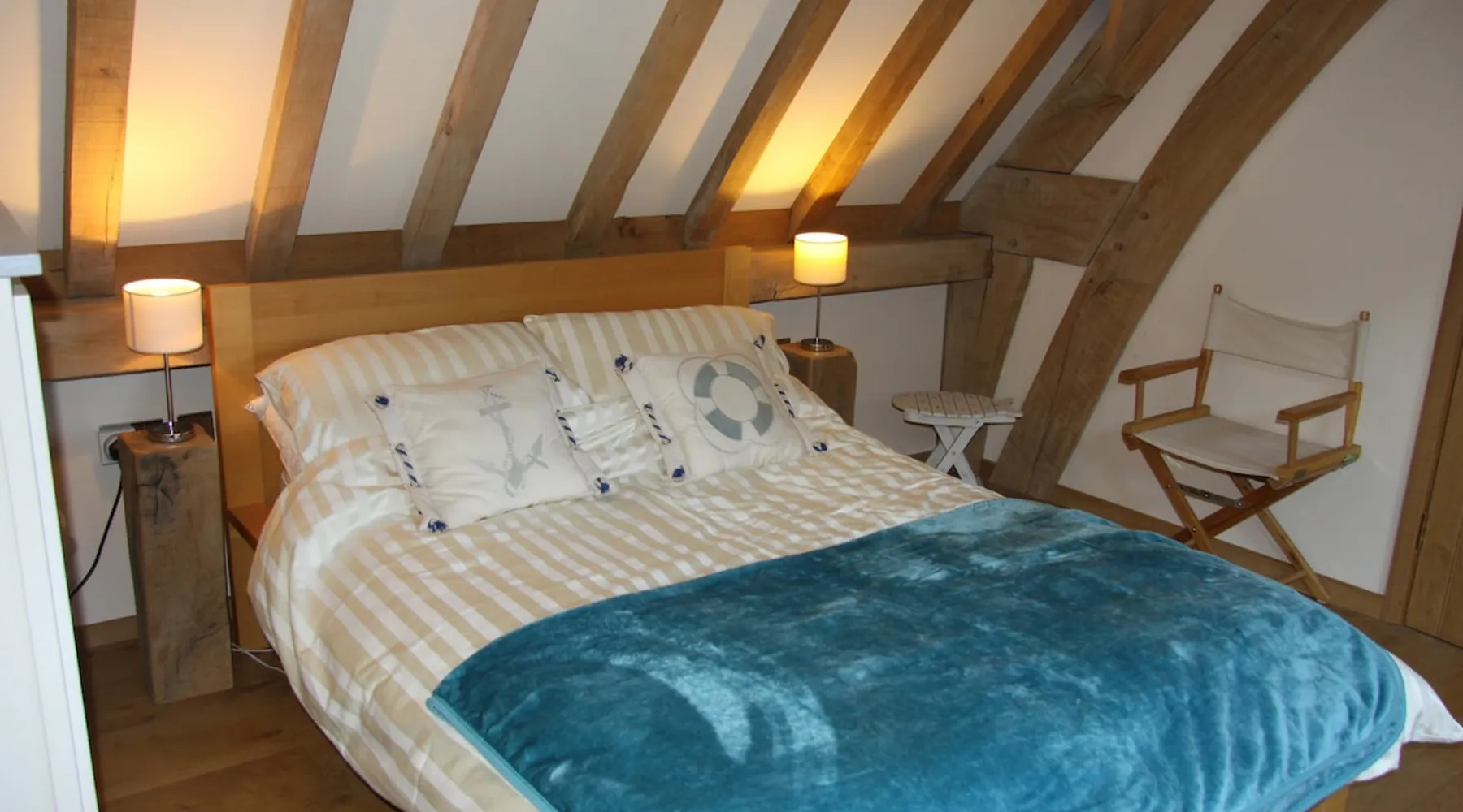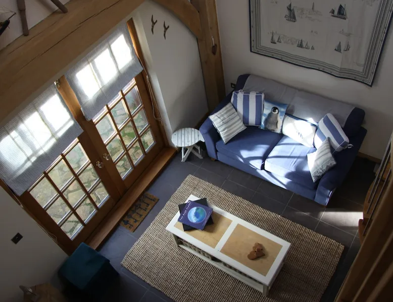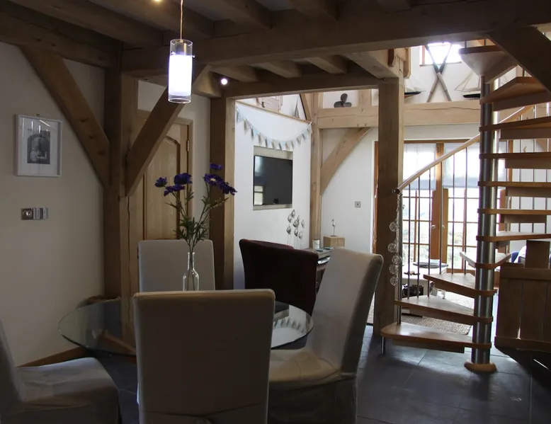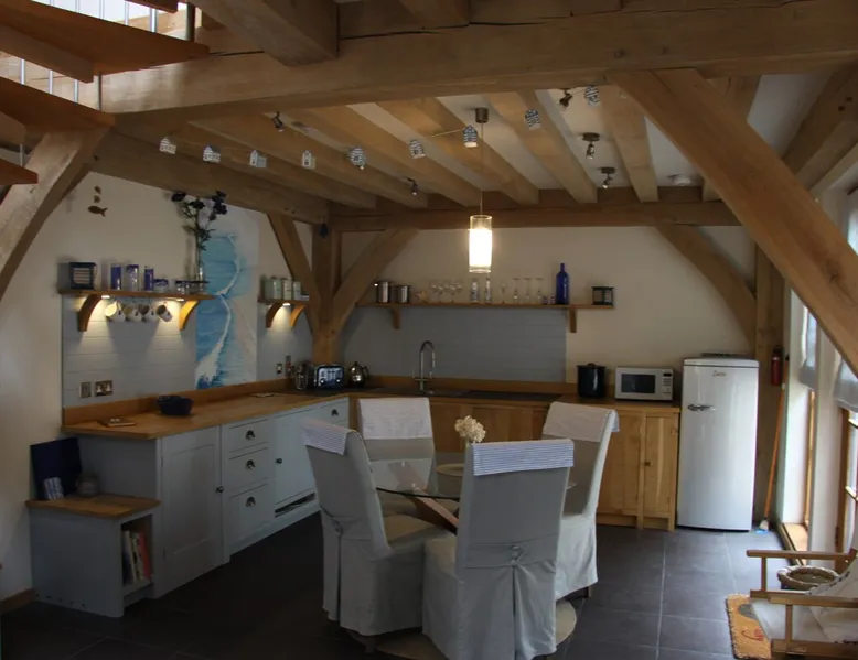 Our green oak frame granite barn welcomes you into a warm and cosy home in a country village setting. Our aim is to make our apartment really special so that you take away good memories from your stay. Closeby are country walks, shops, two local pubs with restaurants within walking distance and fabulous beaches are a five minute drive away. The bus stops minutes away to take you wherever you want in our island. Nous parlons français couramment. The space A lovely oak frame barn alongside our house has its own private entrance and parking on site. The barn has a lounge, dining area, a spiral staircase which leads to a mezzanine and a double bedroom with ensuite shower room. There is a TV in the lounge and the bedroom. The apartment is well-equipped with all crockery, cutlery and glasses for your stay together with a two ring ceramic hob, combination micro-wave oven, ninja speed cooker, kettle for tea and coffee making, also a toaster, fridge, freezer, dishwasher, washer-dryer, all within the apartment. Towels and linens are provided, everything has been carefully chosen for you and you will be completely independent during your stay. Our Granite Barn Apartment feels calm, cosy and spacious for a truly chilled out stay. Guest access Guests will have their own independent entrance and space