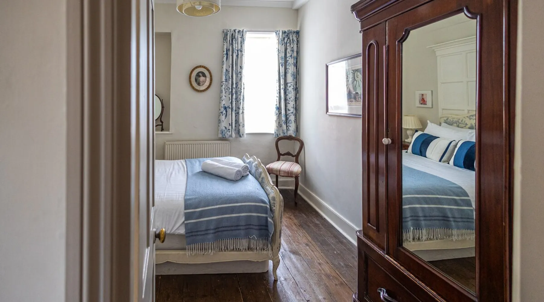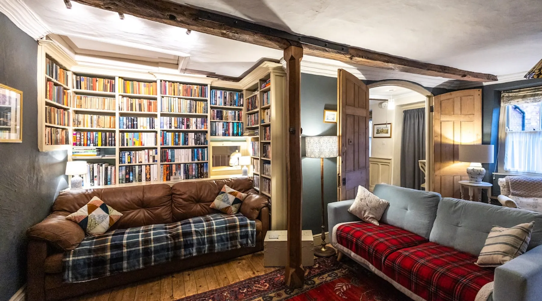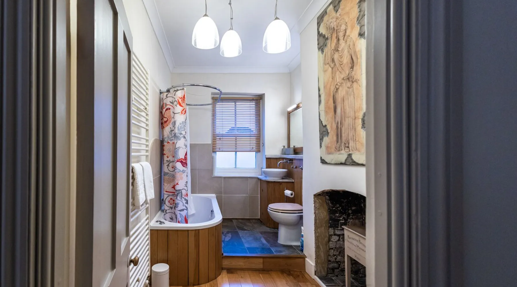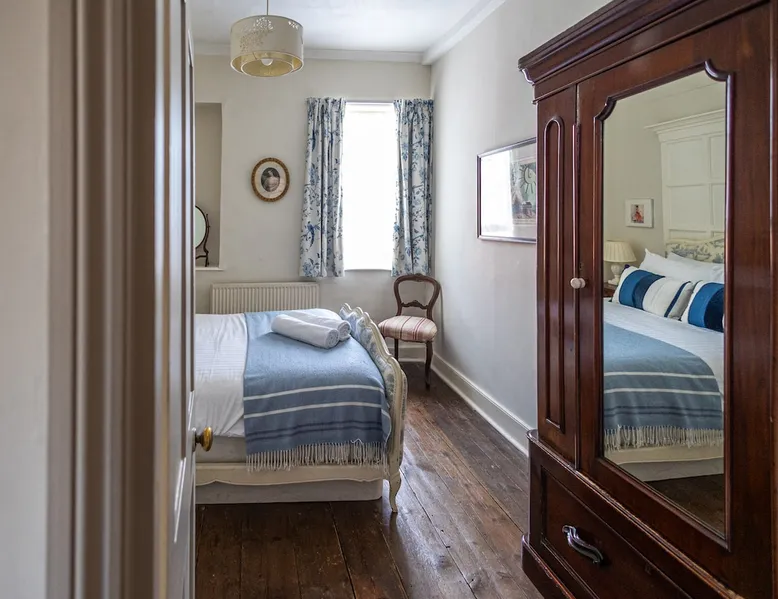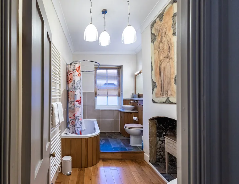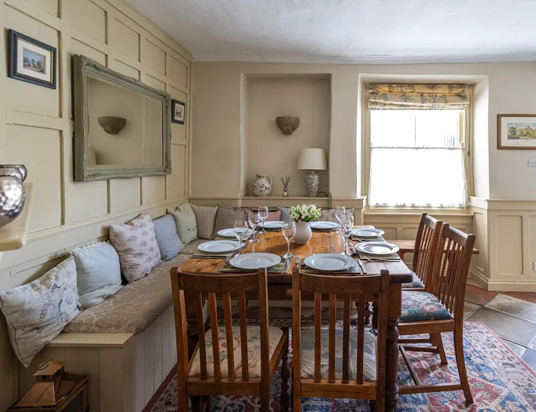 A beautiful listed building located on a quiet lane in the centre of the pretty market town of Blandford Forum, offering the perfect place to explore Dorset or simply relax in one of the cosy sitting rooms and indulge in one of the house's many books. Plenty of board games and DVDs will keep the younger ones entertained or get outside to the nearby River Stour to spot otters and kingfishers (just a 5 minute walk from the house) or head in any direction to Dorset's spectacular countryside. The space Old Red Lion house is a treat. This Georgian house is in the middle of the thriving town – on a quiet lane through an archway just off Market Place. Step through the wide blue door in to a friendly place, awash with warm colours, art, market finds and funny little nooks and crannies. There’s plenty of space, we have created an easy home you can share with friends and family (our own boys love it here!). Downstairs there’s a big sitting room with wood-burner, books, comfy sofas, colourful rugs. This opens out to a sociable dining area with old pine table and masses of cushions on benches; the kitchen has a two-oven stove, coffee machine and all you need to cook for a hungry hoard. Stone steps lead up to another elegantly furnished sitting room – a lovely spot to chat or read. Pretty bedrooms have well-dressed beds: two on the first floor and two up more stairs at the top of the house - each floor has a shared bathroom. Your garden is at the end of the lane: a sheltered patch for snoozes in the sun, snifters before dinner – and you can spot great wildlife on a stunning river walk. Guest access You'll have the whole house to yourselves so can relax in peace (in the knowledge that Hilary is on hand by phone to answer any queries). The house can accommodate 8 guests on the ground floor in the living room or dining room, but if some of you need space, head up to the sitting room at first floor level where there are more comfortable sofas. Other things to note We have a spiral stone staircase which can be tricky for elderly folk and young children. Young children must be supervised at all times on the ground floor as we have no stairgate at the bottom of the spiral staircase. Unfortunately we cannot accommodate pets due to pet allergies and the garden is not connected to the house.