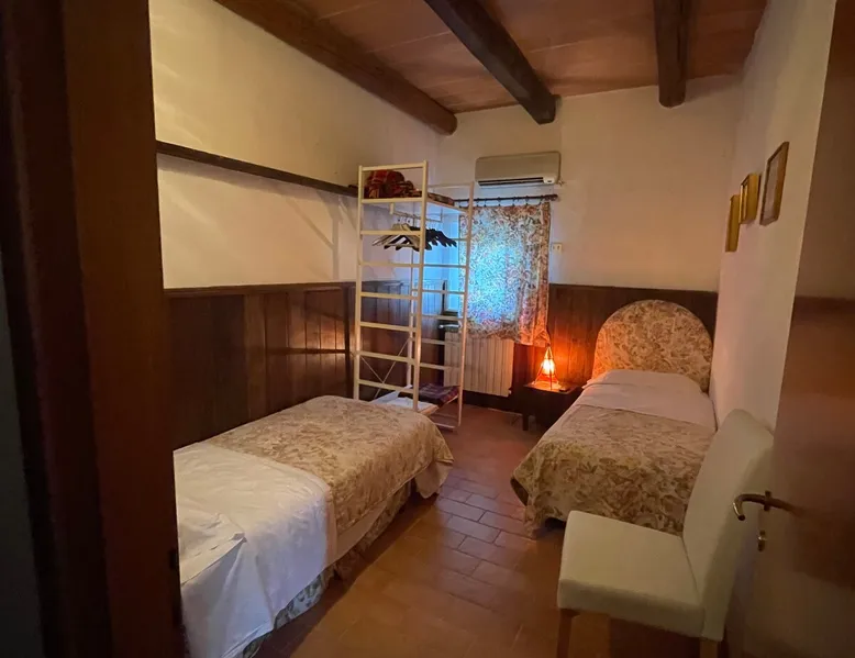 The detached house is located within a large property cultivated with cereals and olive trees, it is a farmhouse that has 6 apartments of various sizes and types inserted in a large park with shared pool. Small house on the ground floor, outdoor area with private barbecue. equipped kitchen and living area with TV, bedroom nr 1 with double bed (with air conditioning) bedroom nr 2 with 2 single beds with air conditioning,bathroom with shower. Registration details IT052025B5E486WXL4