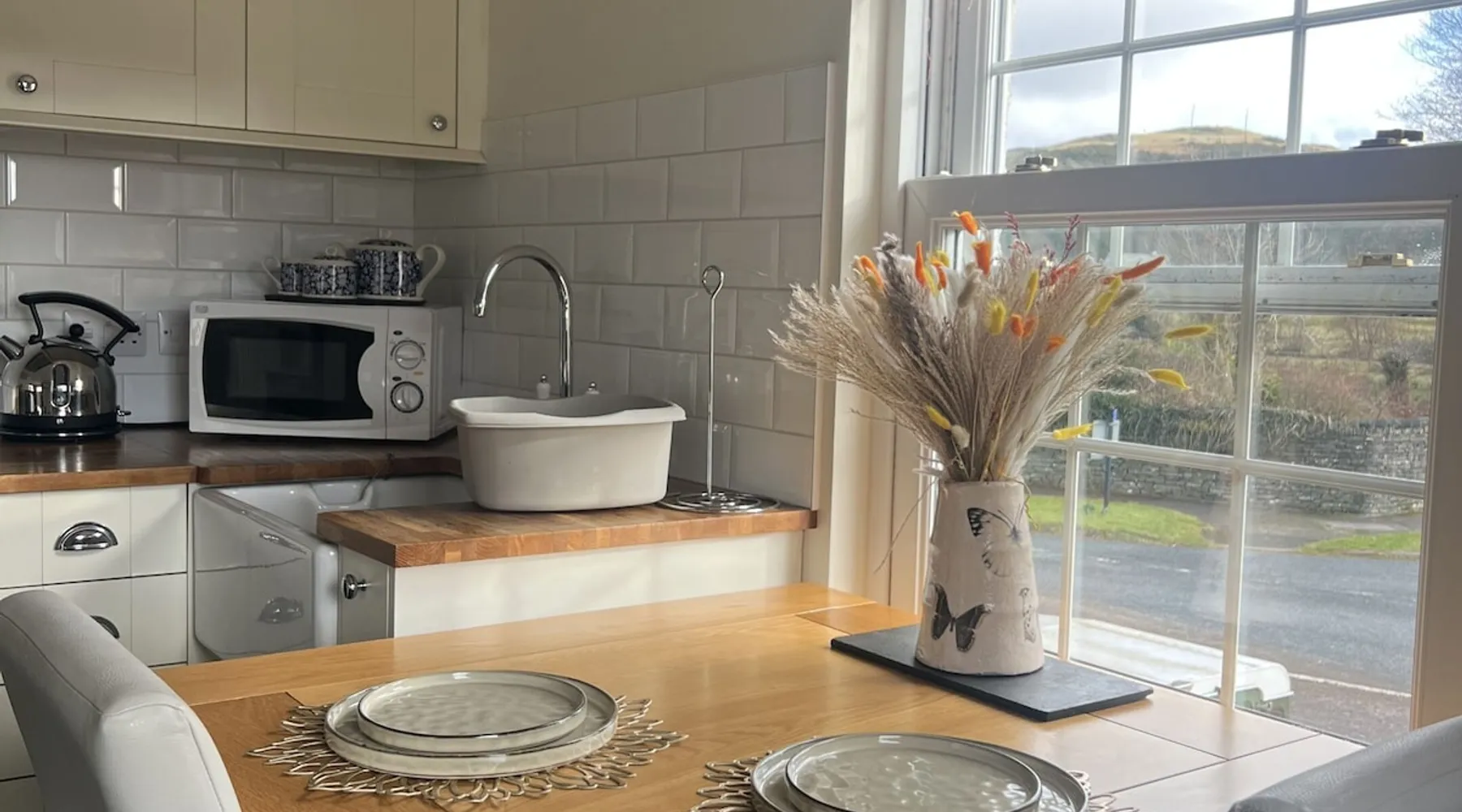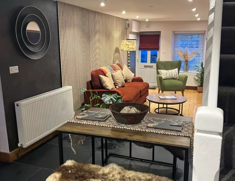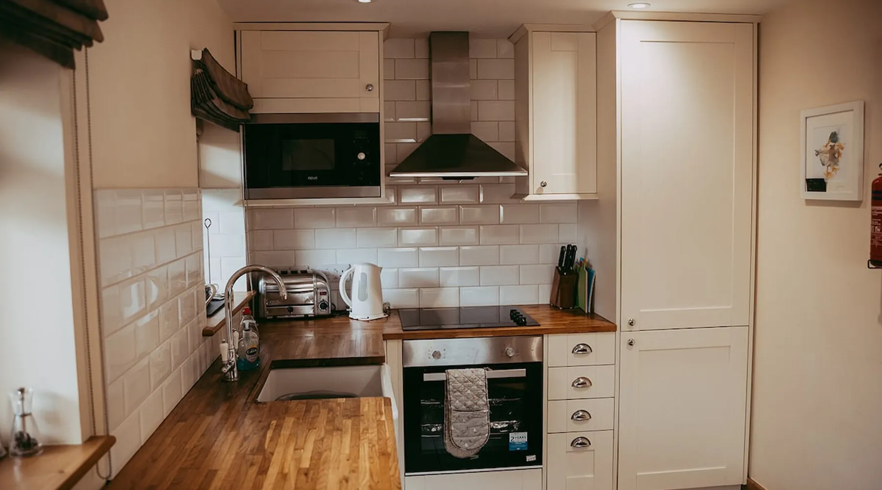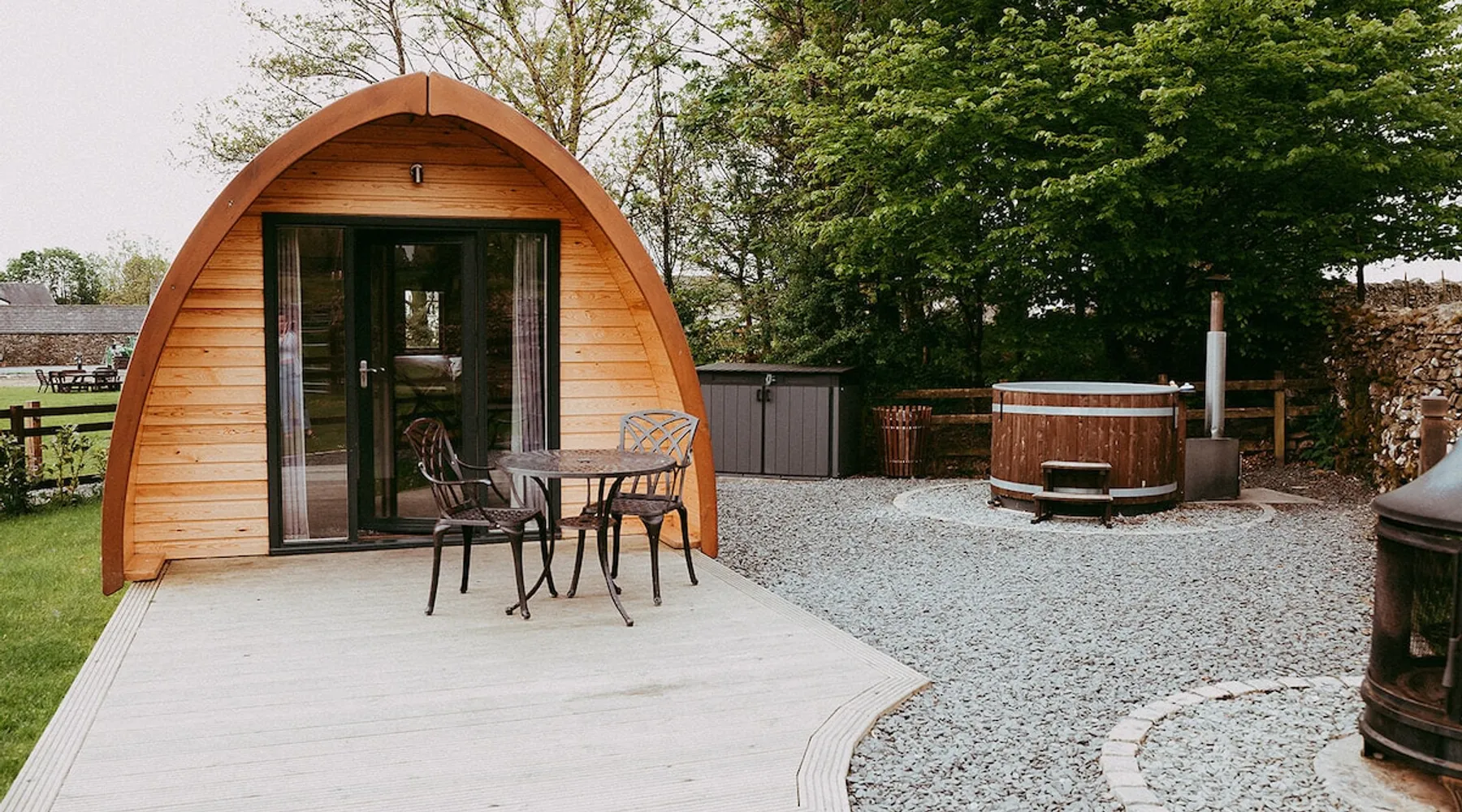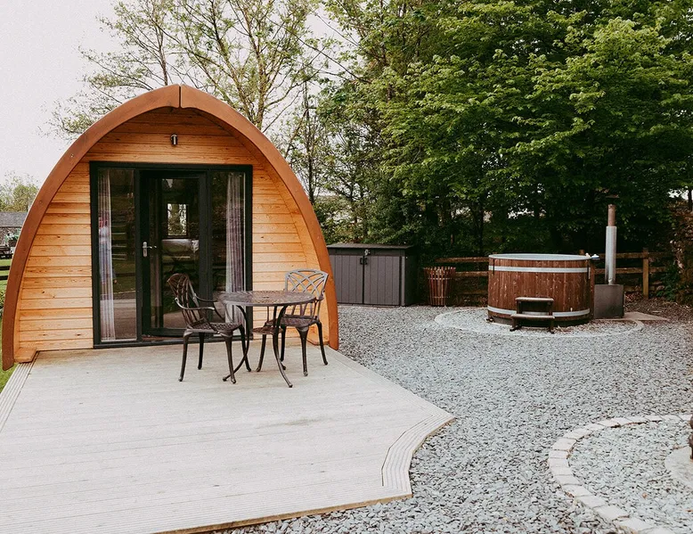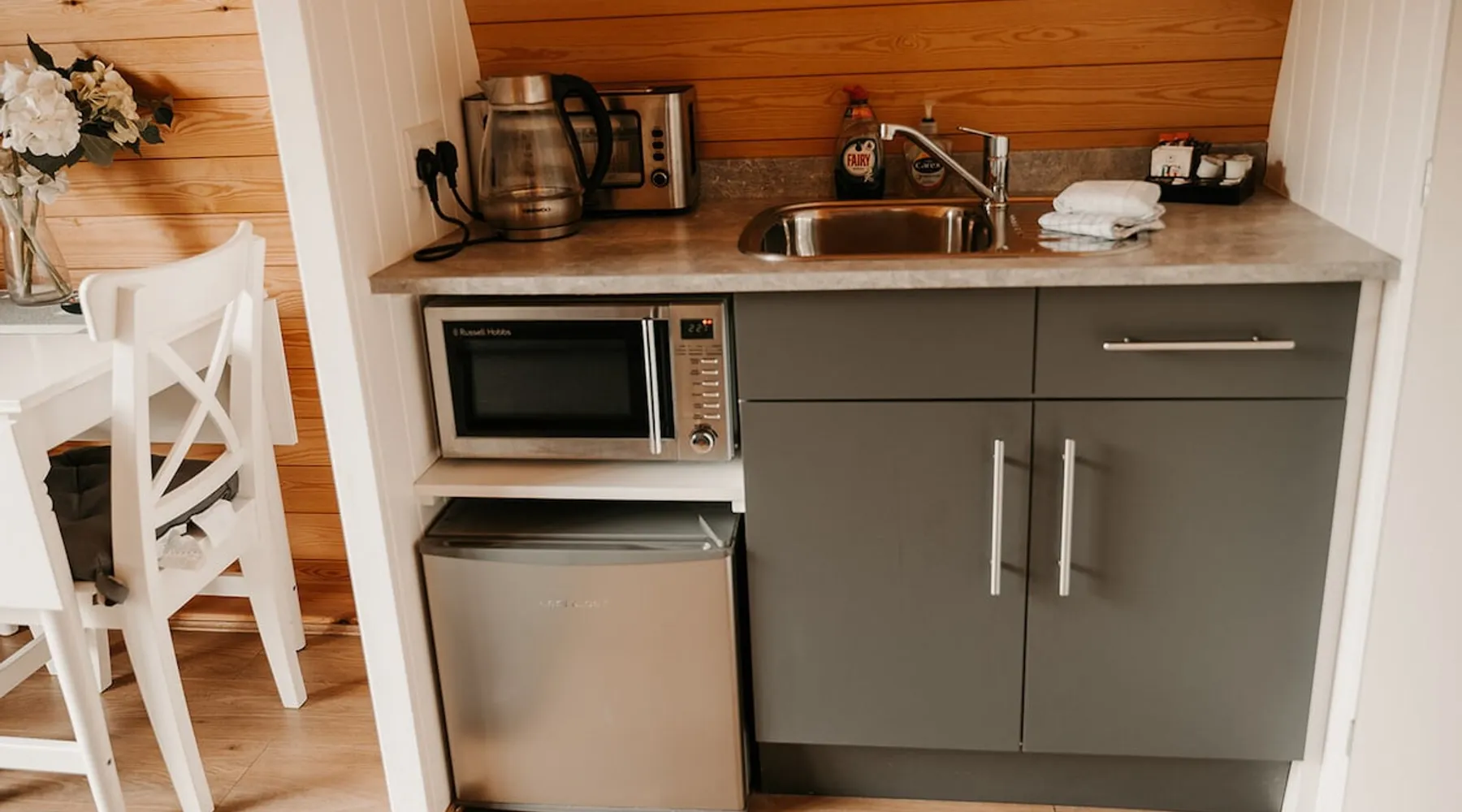 Caterkwik Developments Ltd Luxury Holiday cottages and glamping experiences in the lake district The space Saddleback Cottage is a lower floor unit sleeping two in a king size bed. The beds can be split in to two singles upon request. This unit has a hot tub in the fenced garden area and is for exclusive use of the cottage guests (not shared) The living space is a cosy area with a wood burner perfect for those colder nights. The living space has an open kitchenette area with everything you need to cook throughout your stay. Other things to note We are located next door to the Wilson arms and Torver Deli