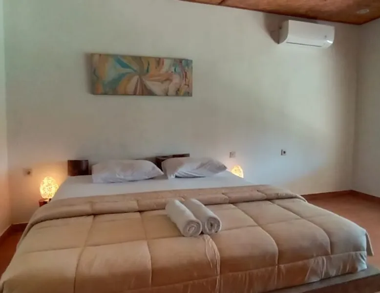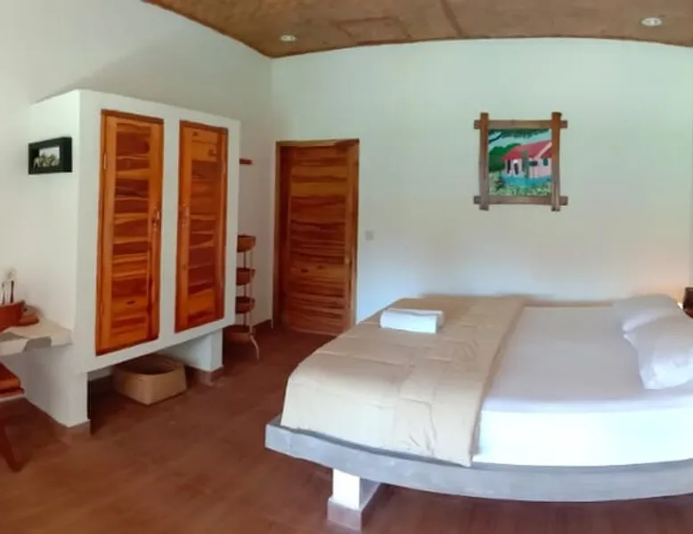 La Cama Bali is nestled in the heart of the Pecatu area on the Bukit Peninsula. We are only a 10 minute walk to Bingin and Impossibles Beach. This spacious bungalow offers a large king size bed, AC and an open plan private bathroom with hot shower . The space When you stay at La Cama you become part of our family. We go above and beyond to make sure you are welcomed and looked after. Staying at La Cama is an authentic Balinese experience. You are living in the heart of our village. Our neighbors have agricultural properties - the natural sounds will be your alarm. Guest access The entire bungalow and balcony are yours. Each bungalow overlooks our pool which has lounge chairs and a large day bed to relax on. We also have a large private carpark and a restaurant where you can purchase local food and drinks . Other things to note - Roosters and dogs are living around . - Breakfast not included .