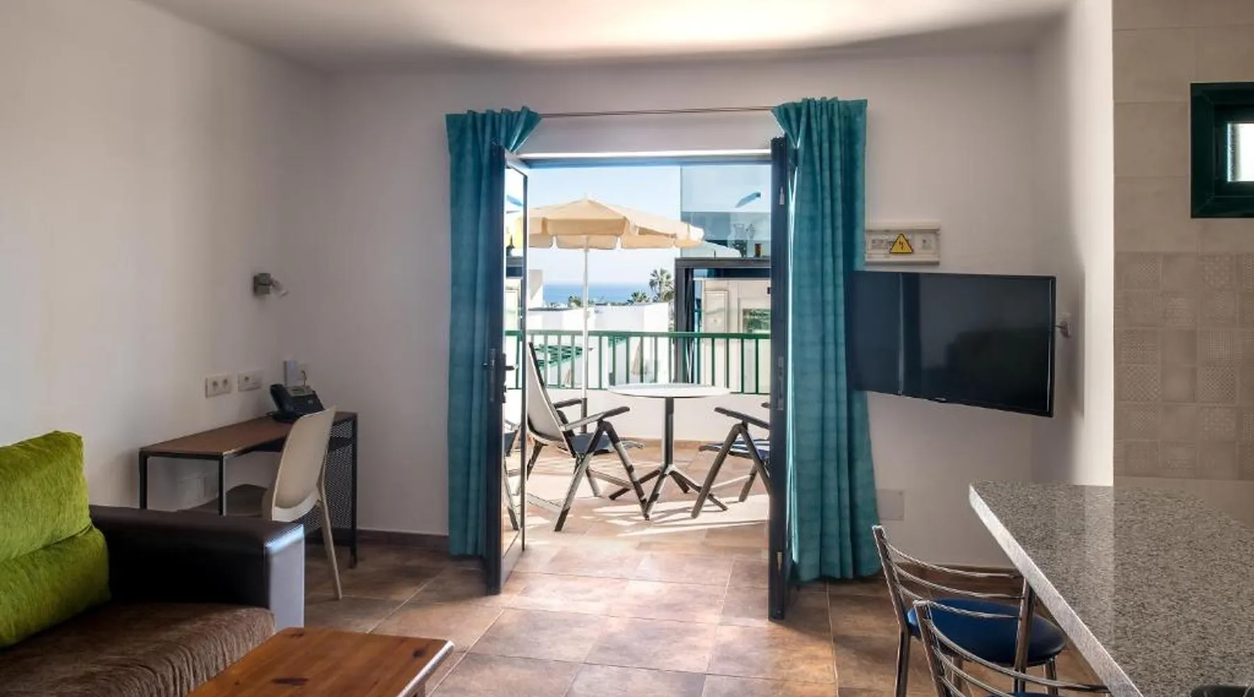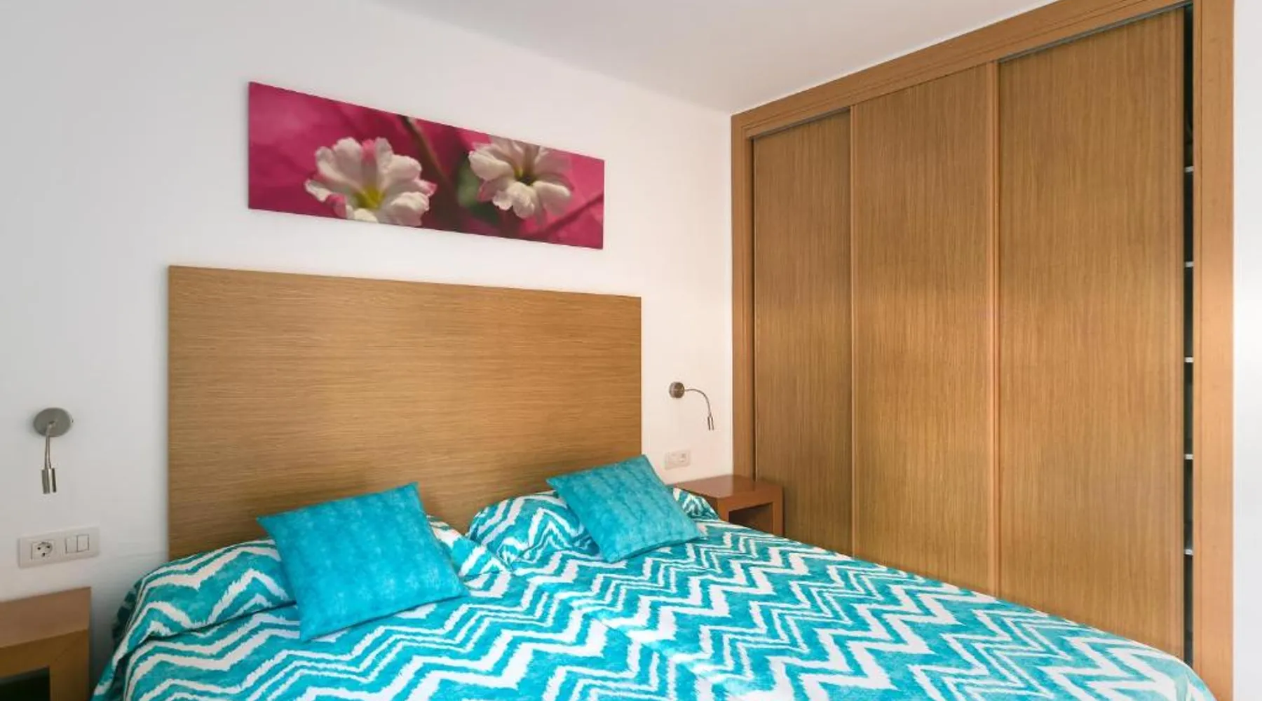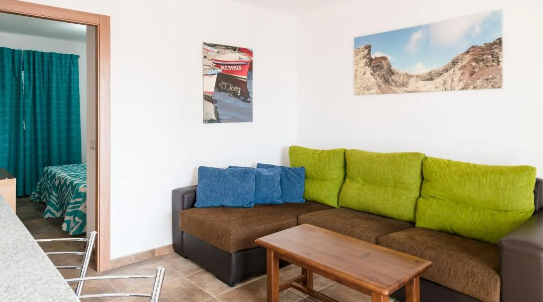 Apartamentos Villa Canaima is 10 minutes’ walk from Matagorda Beach in Lanzarote’s Puerto del Carmen resort. It offers apartments with flat-screen satellite TV, free WiFi, and an outdoor pool with loungers. All apartments at Villa Canaima have central heating and air-conditioning in the bedrooms and come with a balcony or terrace and a kitchenette with a microwave and oven. Apartments can be located on the ground floor or any of the first 3 floors of the building. Apartamentos Villa Canaima is 4.3 mi from Lanzarote Golf Course and only 10 minutes’ drive from Lanzarote Airport. Timanfaya National Park is 12 mi away. This modern two-bedroom apartment has bright décor and a furnished balcony with views of the sea. It comes with a kitchenette and a lounge area with flat-screen satellite TV. There is air conditioning and heating in the bedroom.