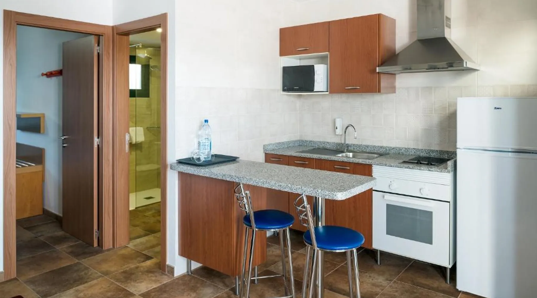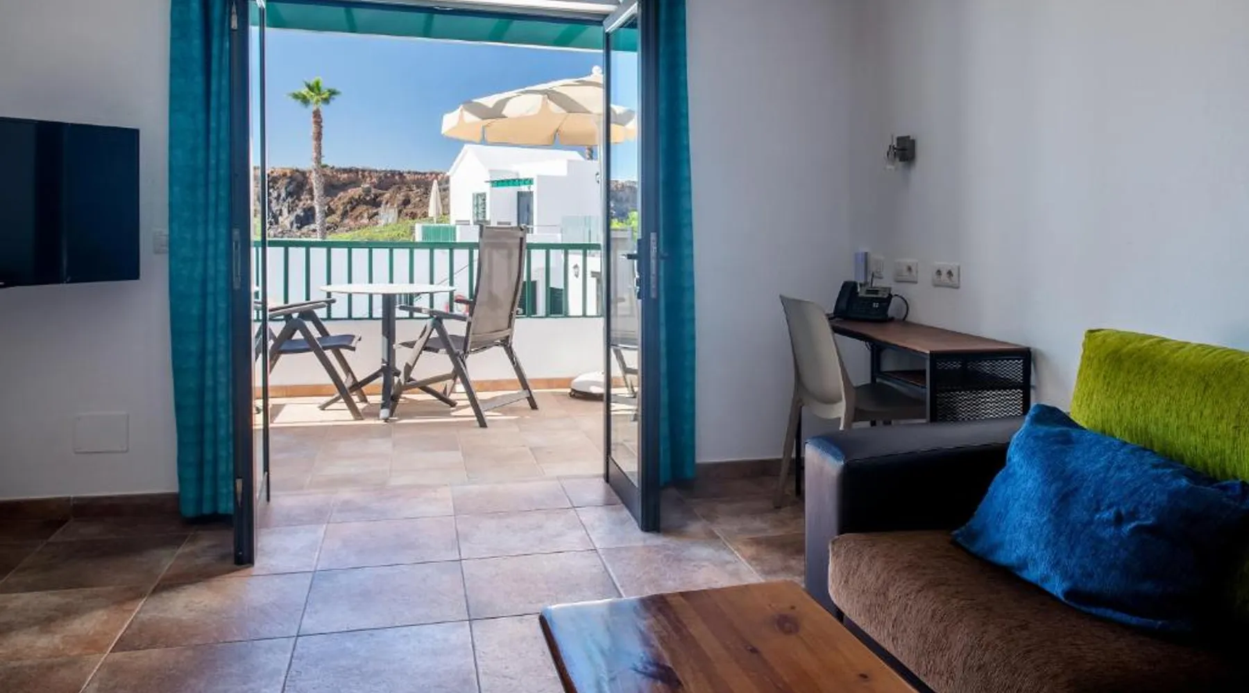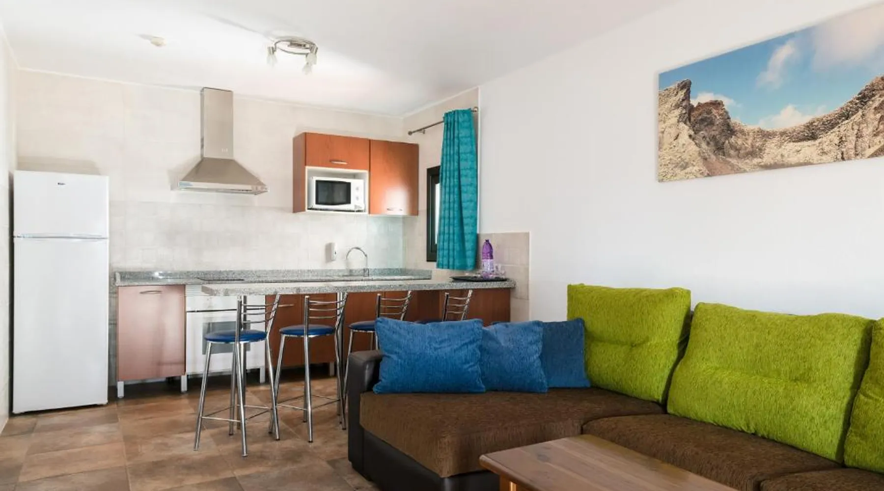 Apartamentos Villa Canaima is 10 minutes’ walk from Matagorda Beach in Lanzarote’s Puerto del Carmen resort. It offers apartments with flat-screen satellite TV, free WiFi, and an outdoor pool with loungers. All apartments at Villa Canaima have central heating and air-conditioning in the bedrooms and come with a balcony or terrace and a kitchenette with a microwave and oven. Apartments can be located on the ground floor or any of the first 3 floors of the building. Apartamentos Villa Canaima is 4.3 mi from Lanzarote Golf Course and only 10 minutes’ drive from Lanzarote Airport. Timanfaya National Park is 12 mi away. This modern two-bedroom apartment has bright décor and a furnished balcony with views of the sea. It comes with a kitchenette and a lounge area with flat-screen satellite TV. There is air conditioning and heating in the bedroom.