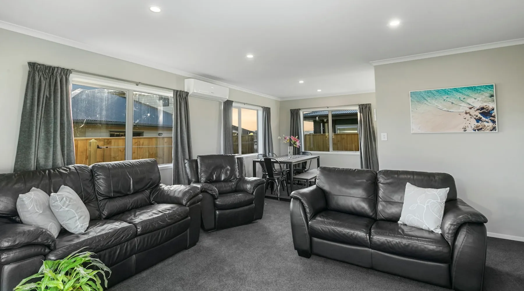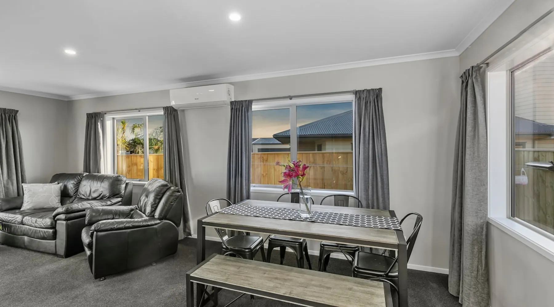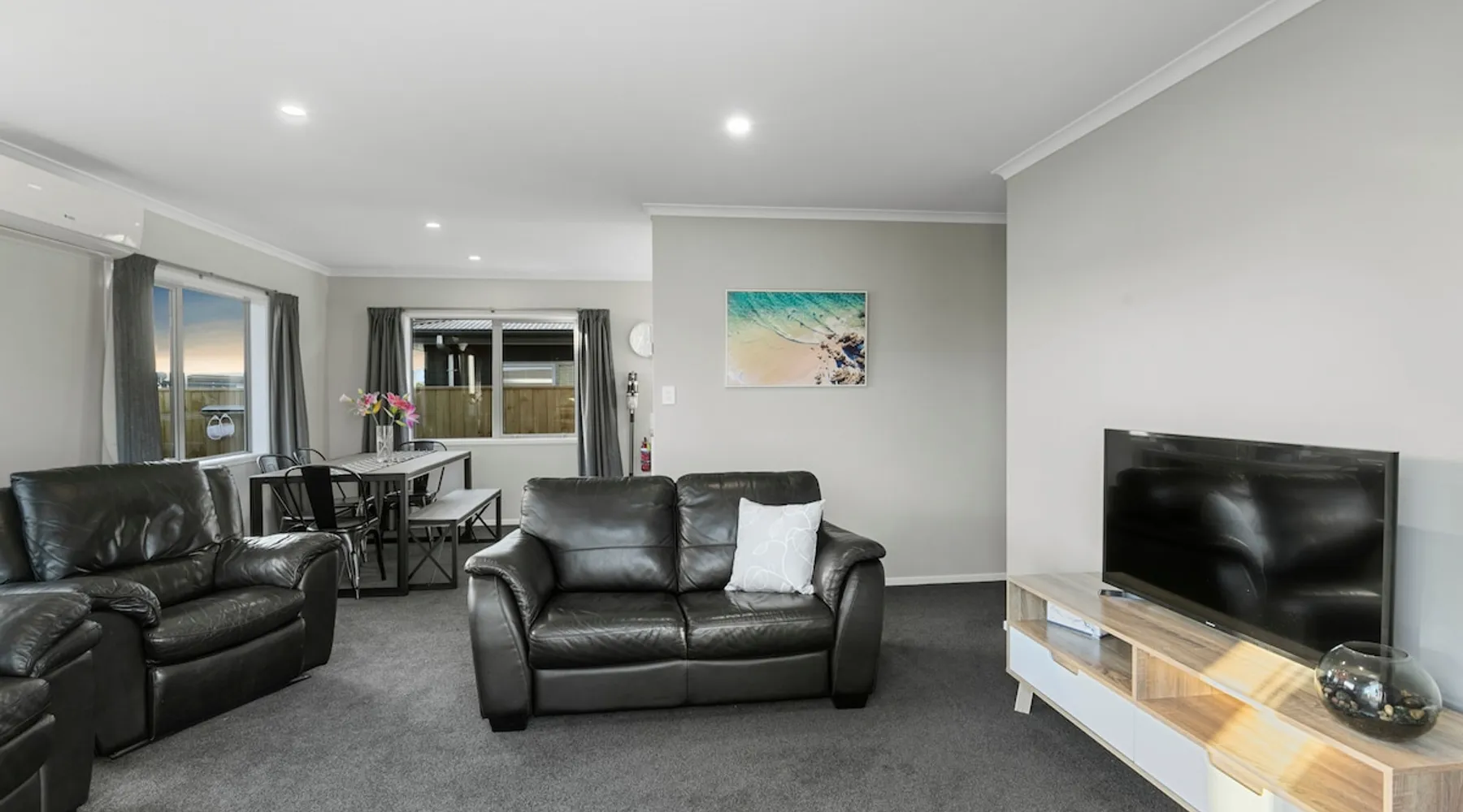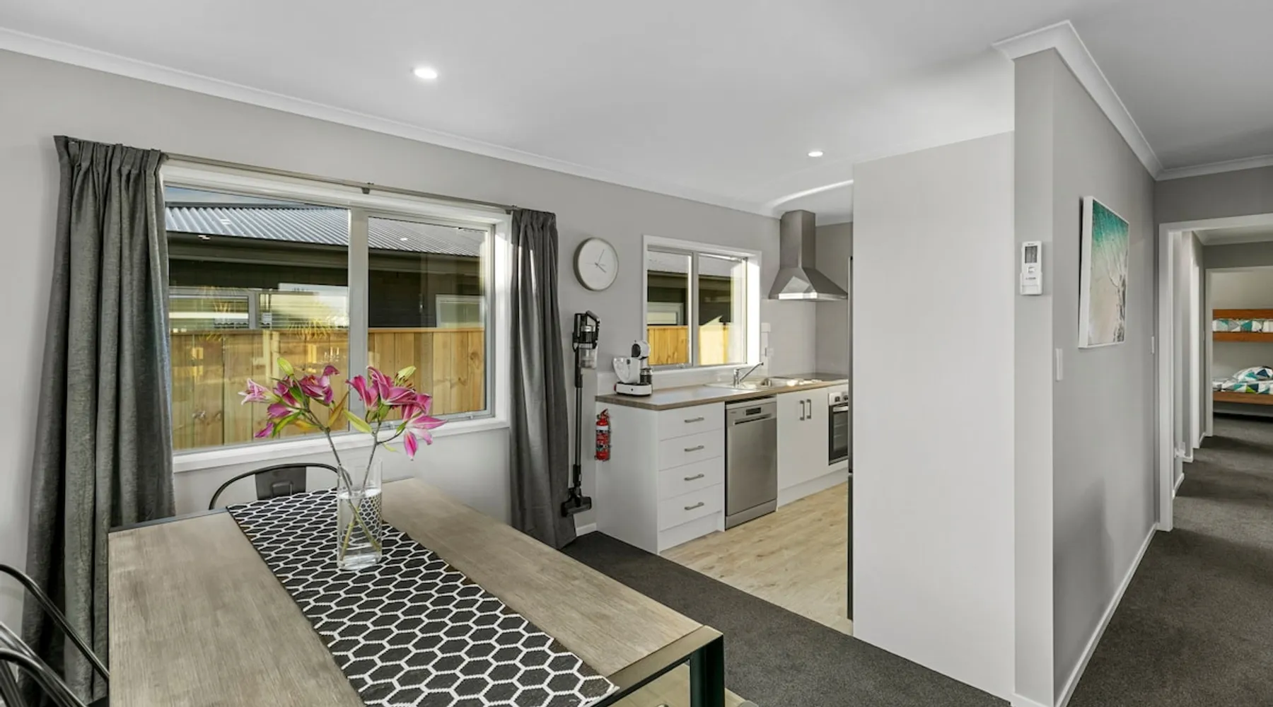 If you are wanting a relaxing break away in a modern property near the beach then this is the one! Modern on Malthus is a near new standalone 3 bedroom, 2 bathroom house with a sunny deck. A quiet area with a fully fenced section, safe for kids to play. The space Cosy, warm and modern. Sunny deck for relaxing with a cold drink. 3 bedrooms; 2 x Queen and 1 x set of bunks - 2 bathrooms and a separate toilet. Living area with Smart TV and Wi-Fi. Kitchen with cooking facilities and basic amenities. Heat Pump. Guest access Off street parking. 2kms from the beach and playground/pump track and close to cafes and shops.