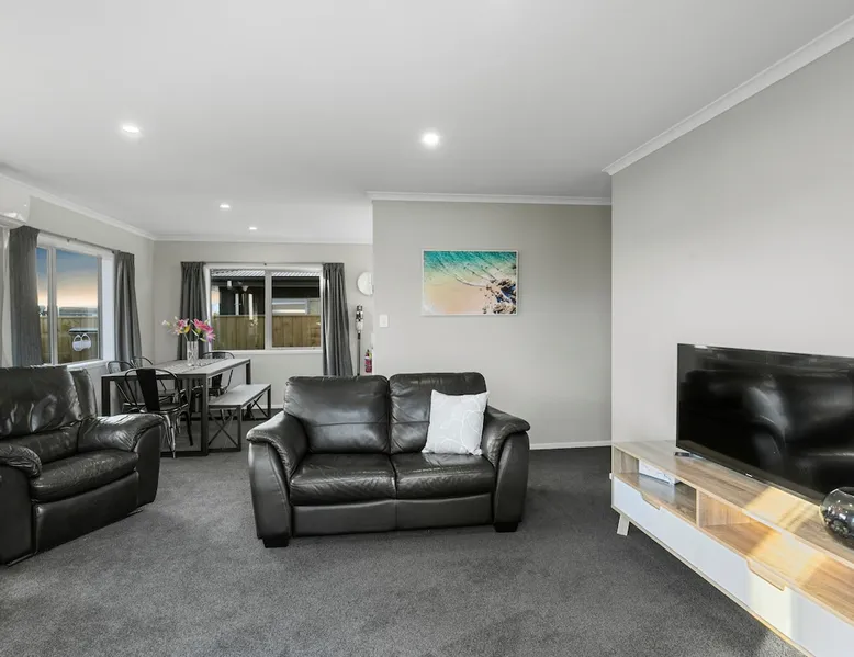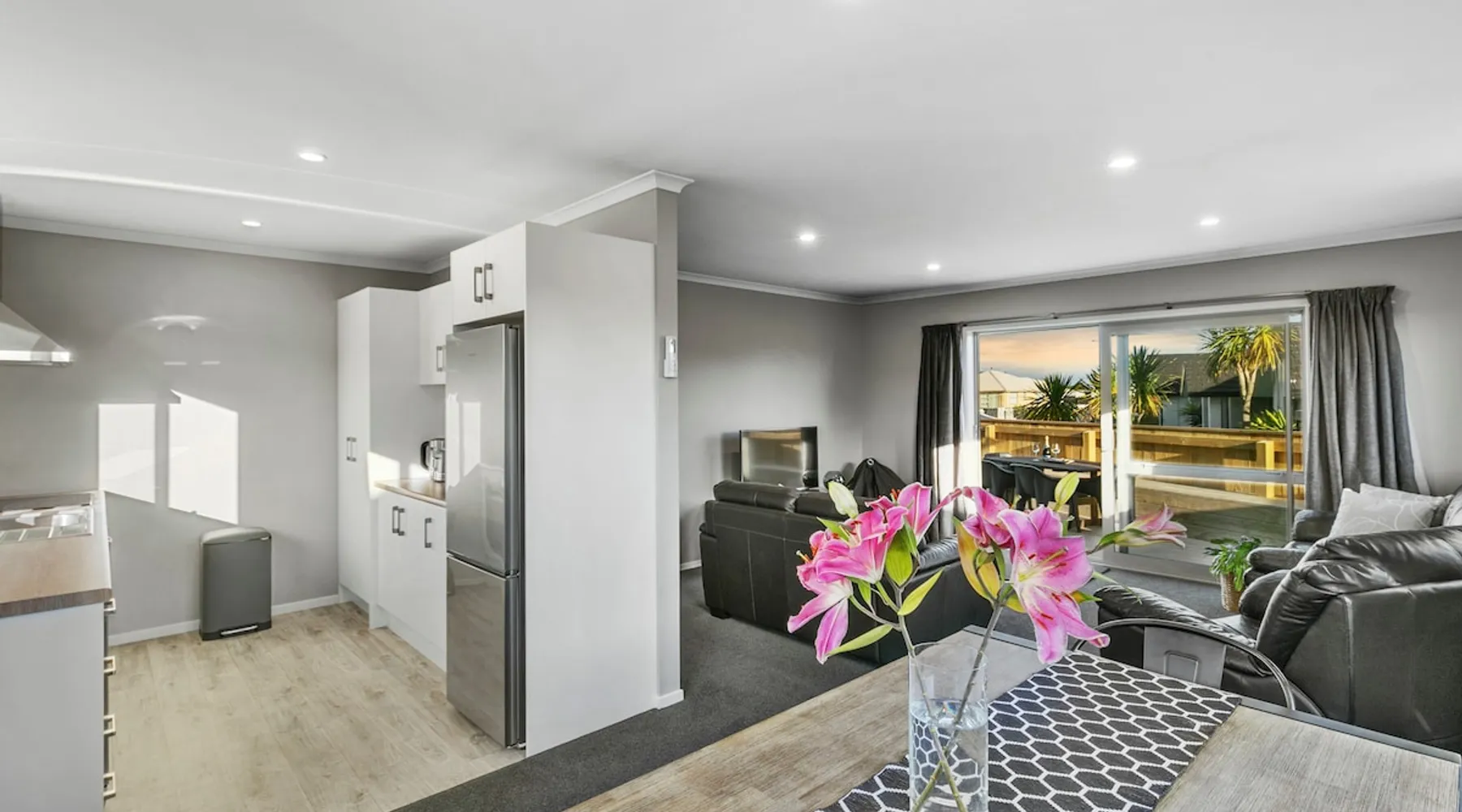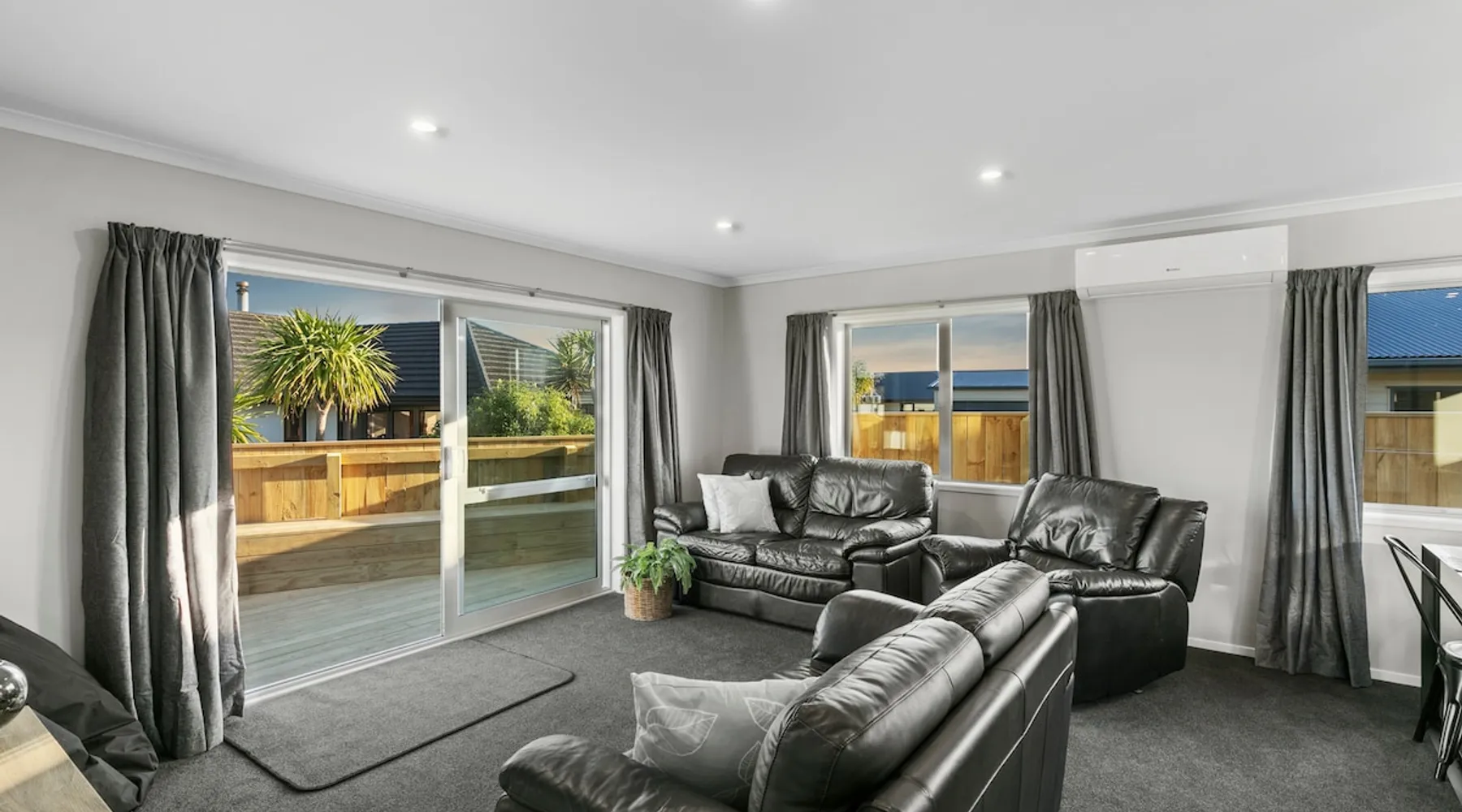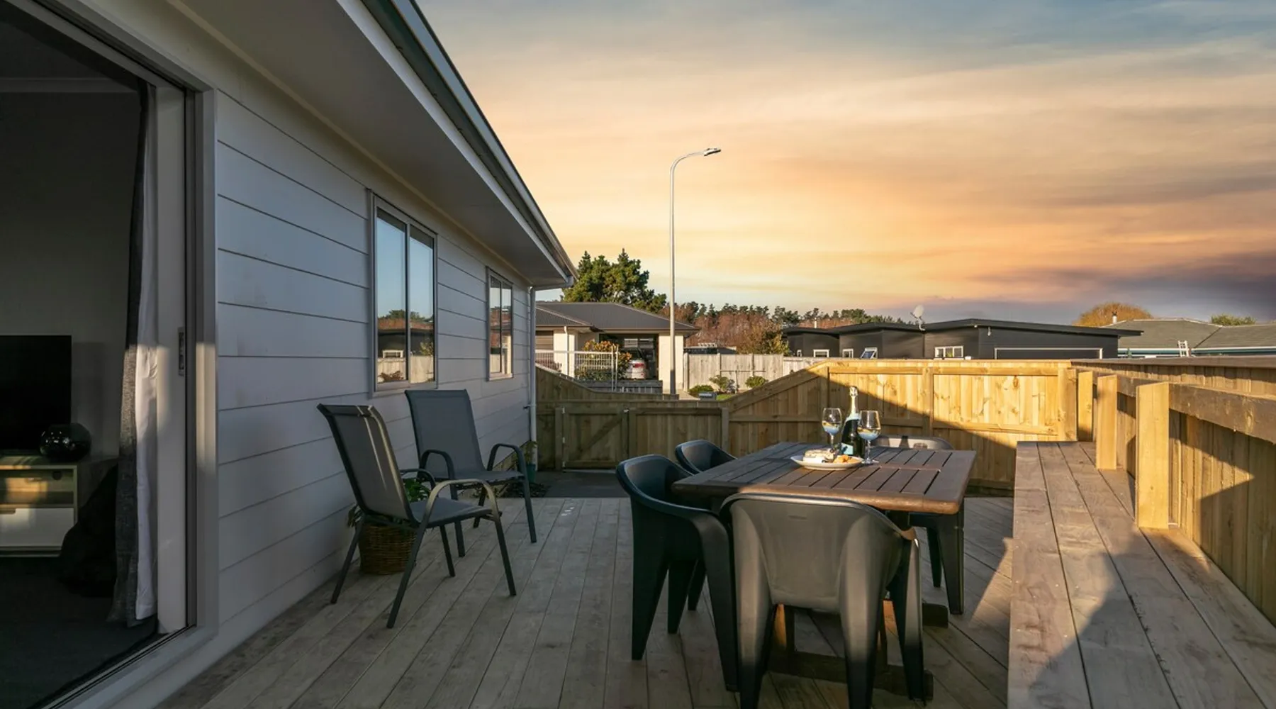 If you are wanting a relaxing break away in a modern property near the beach then this is the one! Modern on Malthus is a near new standalone 3 bedroom, 2 bathroom house with a sunny deck. A quiet area with a fully fenced section, safe for kids to play. The space Cosy, warm and modern. Sunny deck for relaxing with a cold drink. 3 bedrooms; 2 x Queen and 1 x set of bunks - 2 bathrooms and a separate toilet. Living area with Smart TV and Wi-Fi. Kitchen with cooking facilities and basic amenities. Heat Pump. Guest access Off street parking. 2kms from the beach and playground/pump track and close to cafes and shops.