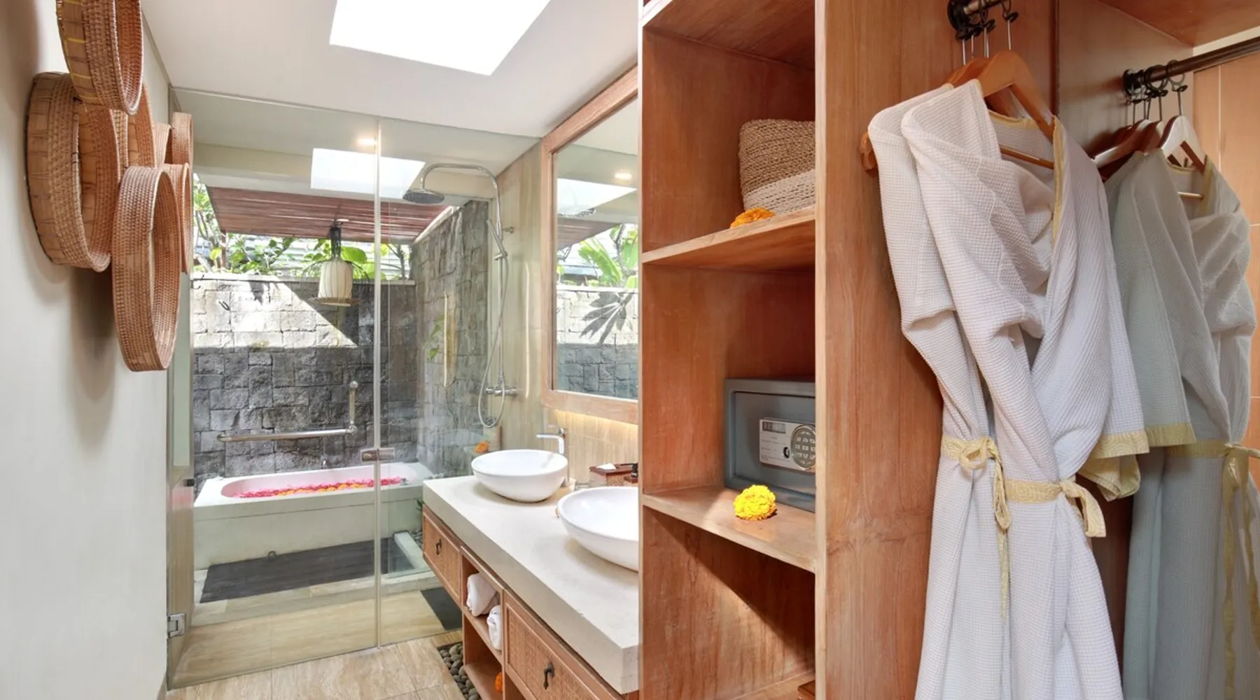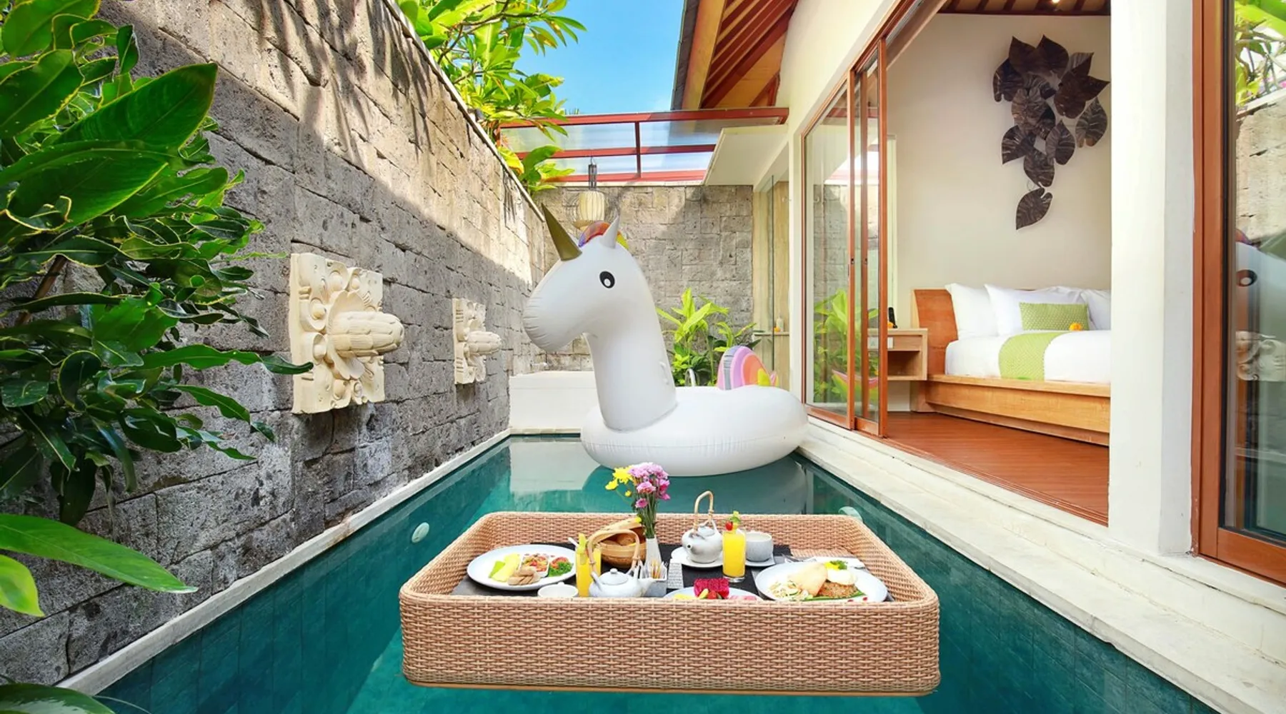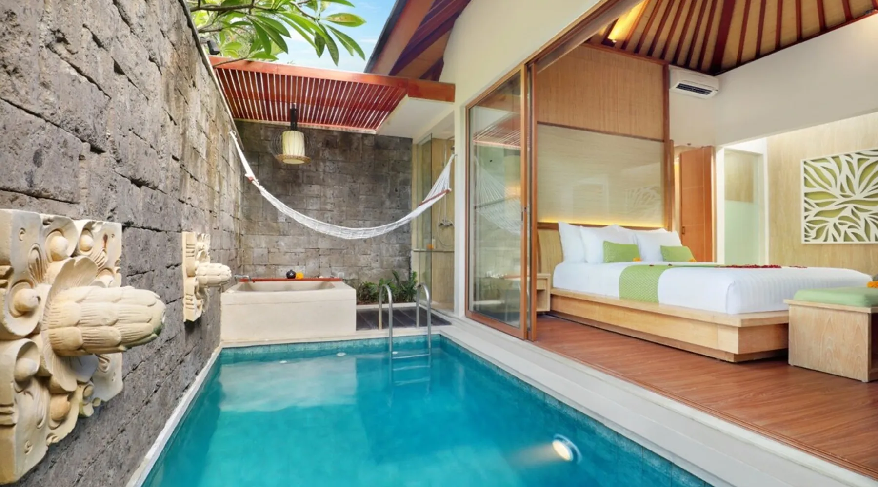 A cozy and chic stay in Legian, The Villa features a spa bath and a pool, where guests can relax on the pool float or on the hanging sofa. Legian Beach is 1.4 km away. Free WiFi is available throughout the property. The space - Private Pool Villa - Breakfast Included - Netflix - Alexa Guest access - Private Pool - Public Pool - Spa - Closest Beach Other things to note - Smoking is allowed outside the room - Pick up and drop off service available with additional charge - Tours and activities are available - Romantic decorations are available with additional charge.