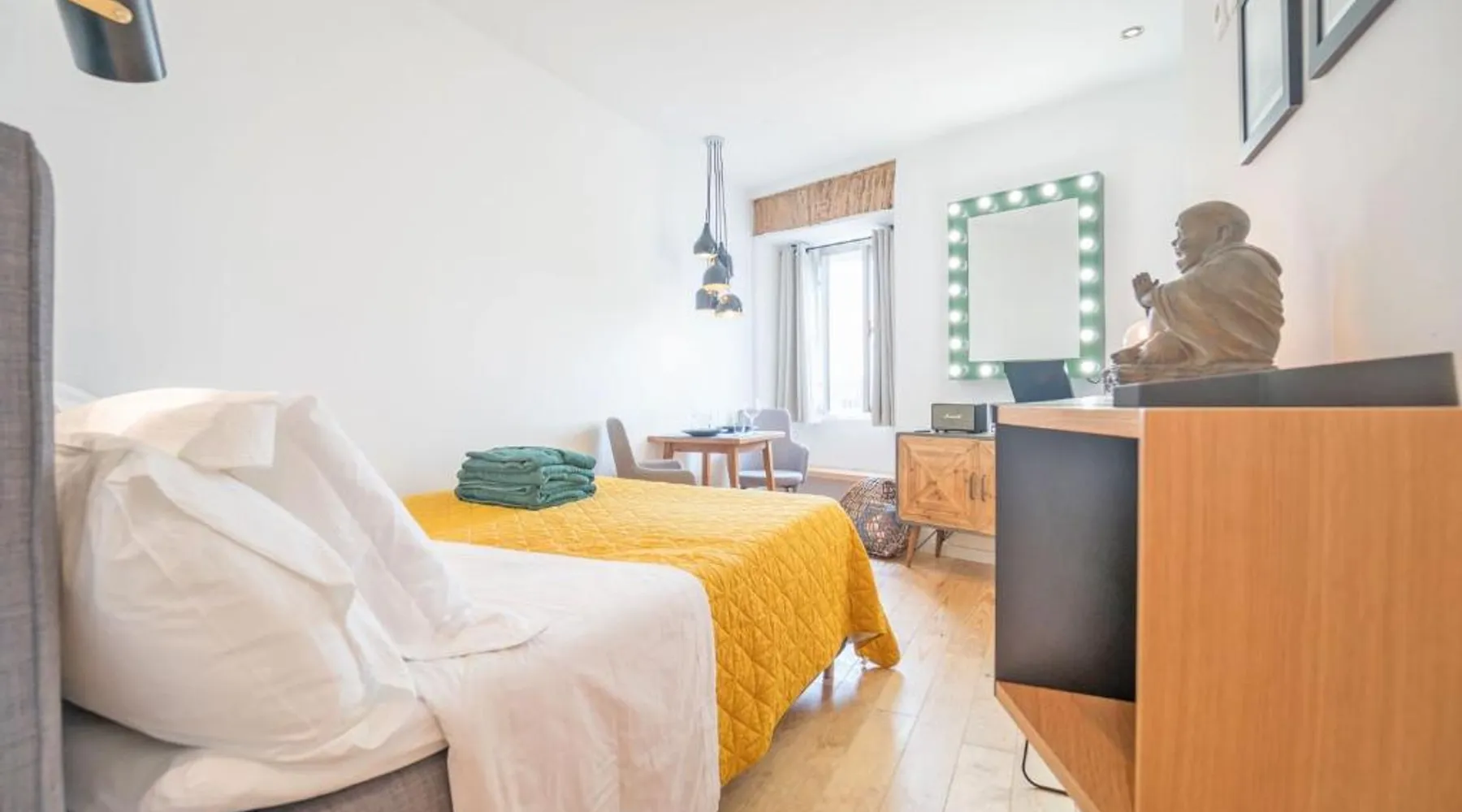 Prime City Center Location: Downtown Comfy Suite in Lisboa offers a central position with St. George's Castle less than 0.6 mi away, Rossio a 5-minute walk, and Dona Maria II National Theater 1640 feet nearby. Humberto Delgado Airport is 4.3 mi from the property. Comfortable Accommodations: The apartment features one bedroom and one bathroom with air-conditioning, a kitchenette, and a private entrance. Guests enjoy free WiFi, a 24-hour front desk, and soundproofing for a restful stay. Modern Amenities: The apartment includes a dining area, city views, parquet floors, and a patio. Additional amenities include streaming services, a TV, and a fully equipped kitchen with a coffee machine and microwave. Nearby Attractions: Nearby attractions include Commerce Square, Miradouro da Senhora do Monte, and Luz Football Stadium. Guests appreciate the convenient location, excellent restaurant options, and diverse food and drink choices. Boasting a private entrance, this air-conditioned apartment comes with a kitchen, 1 bedroom and 1 bathroom with a walk-in shower and a hairdryer. Guests can make meals in the kitchen that features a stovetop, a refrigerator, kitchenware and an oven. The apartment features a flat-screen TV with streaming services, soundproof walls, a tea and coffee maker, a seating area as well as city views. The unit has 1 bed.