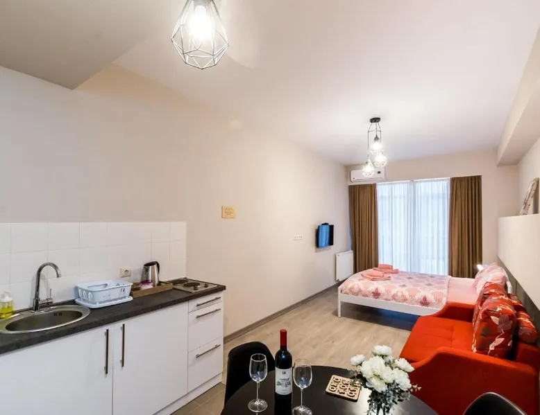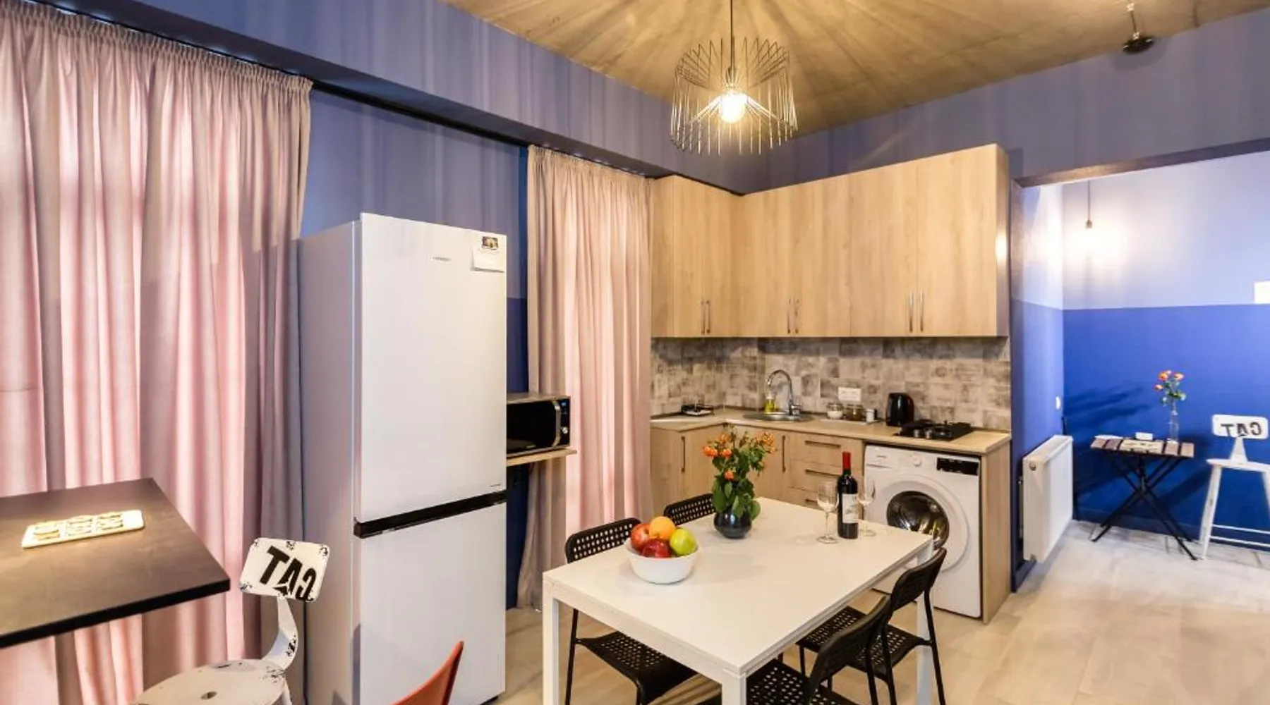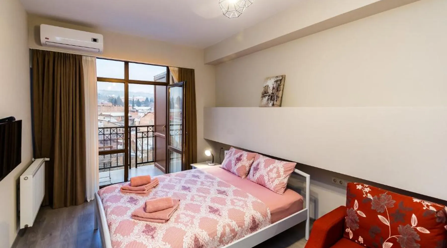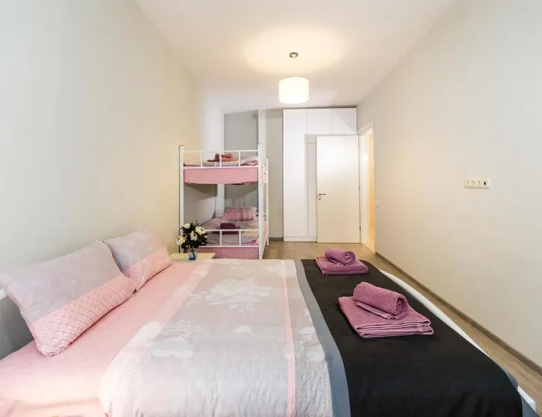 Modern Comforts: Modern Avlabari in Old Town offers a comfortable apartment in Tbilisi. Guests enjoy free WiFi, air-conditioning, and a fully equipped kitchenette. The property features a private bathroom with a walk-in shower and a terrace with garden views. Convenient Facilities: The apartment includes a paid airport shuttle service, elevator, 24-hour front desk, family rooms, and a tour desk. Free on-site parking is available, along with a dining area and soundproofing for added comfort. Prime Location: Located 7.5 mi from Tbilisi International Airport, the apartment is near Freedom Square (1.2 mi), Presidential Palace (less than 0.6 mi), and Metekhi Church (9-minute walk). Other attractions include Saint George's Armenian Cathedral (0.6 mi) and Sameba Cathedral (12-minute walk). Guests appreciate the scenic views and convenient location. Boasting a private entrance, this air-conditioned apartment features 1 living room, 3 separate bedrooms and 1 bathroom with a walk-in shower and a bath. In the well-equipped kitchen, guests will find a stovetop, a refrigerator, kitchenware and a microwave. The spacious apartment features a washing machine, soundproof walls, a tea and coffee maker as well as a terrace with mountain views. The unit has 7 beds.