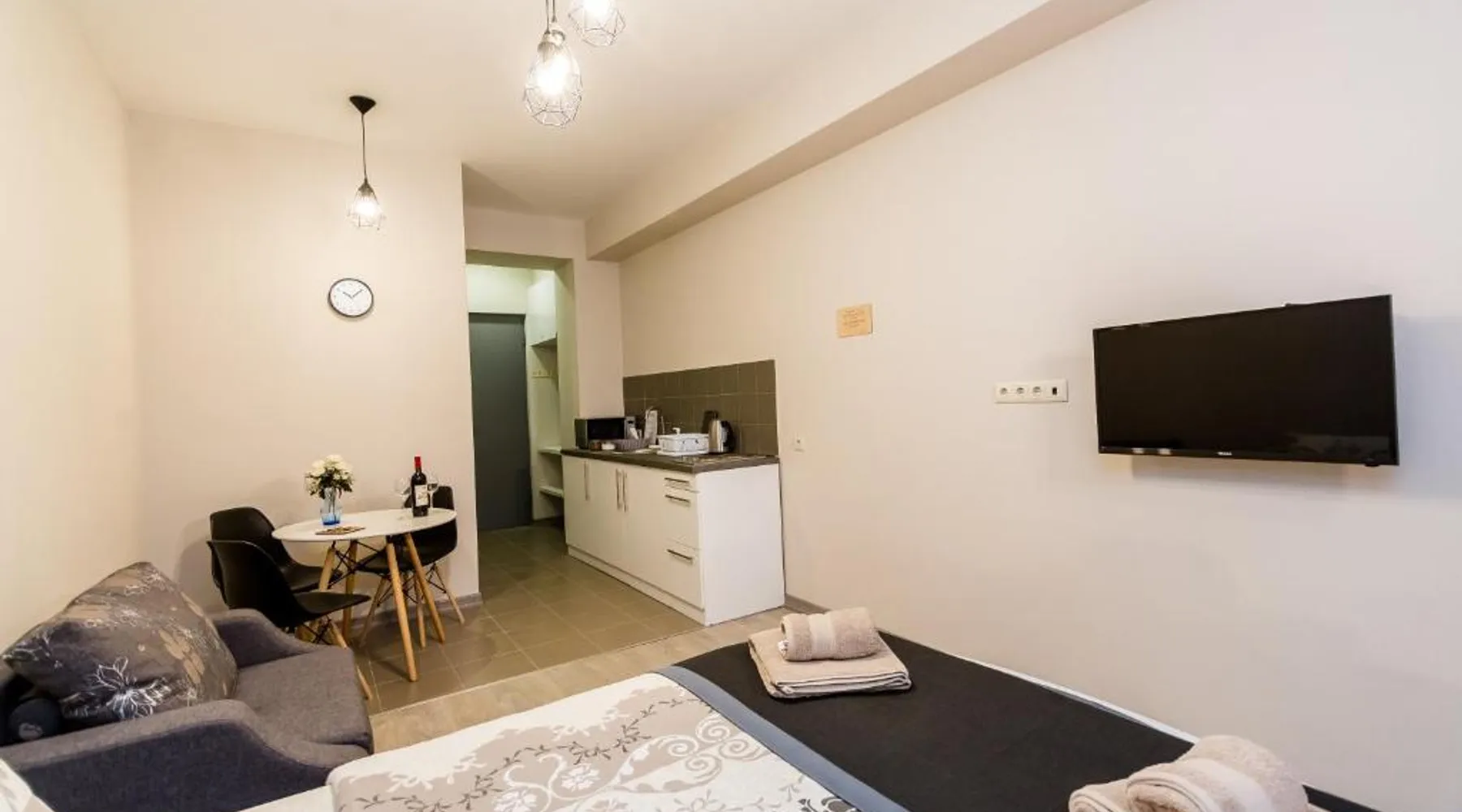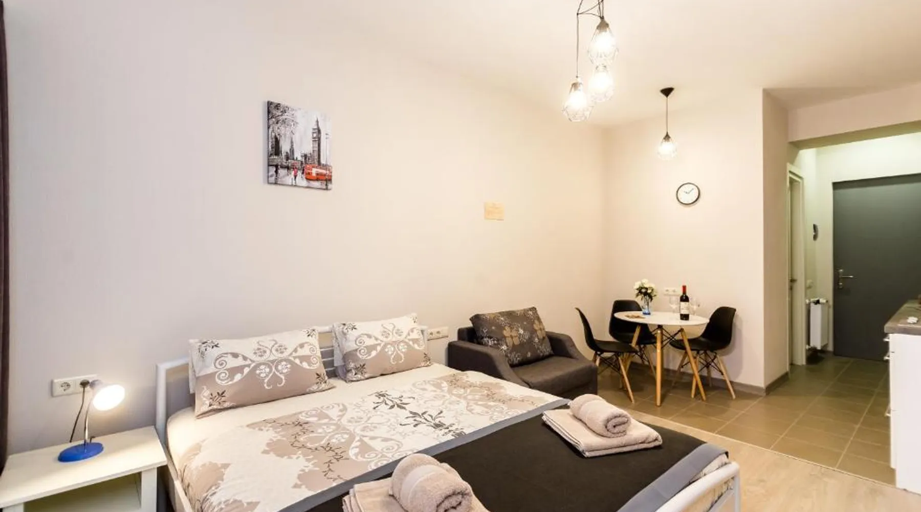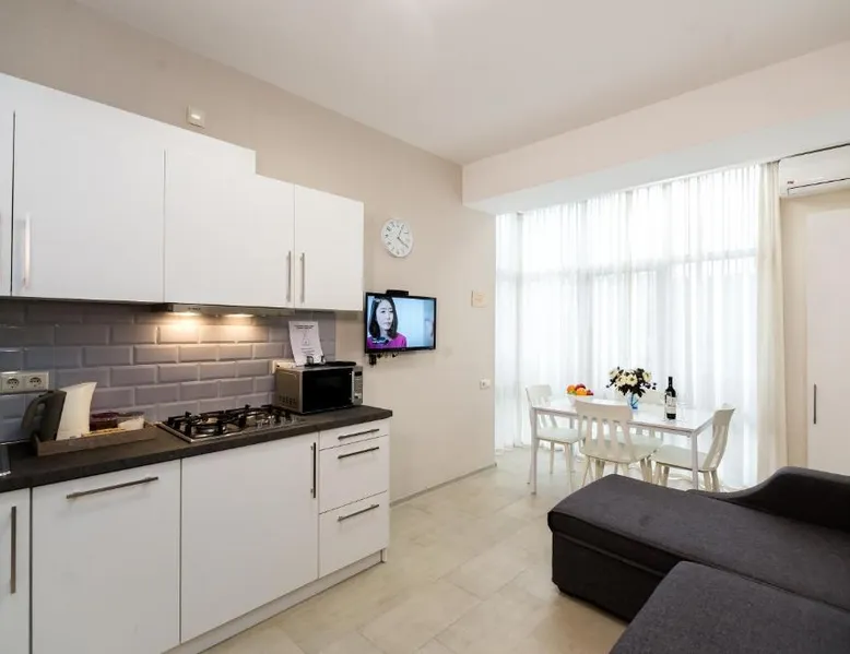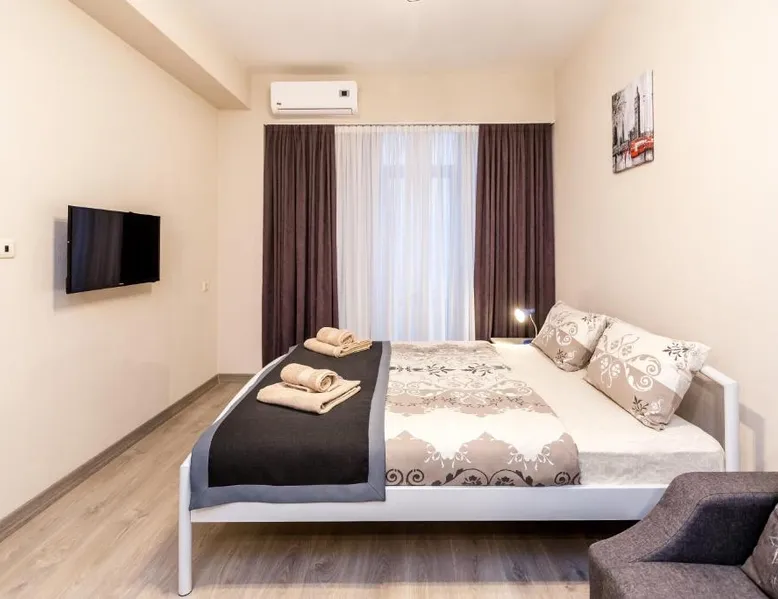 Modern Comforts: Modern Avlabari in Old Town offers a comfortable apartment in Tbilisi. Guests enjoy free WiFi, air-conditioning, and a fully equipped kitchenette. The property features a private bathroom with a walk-in shower and a terrace with garden views. Convenient Facilities: The apartment includes a paid airport shuttle service, elevator, 24-hour front desk, family rooms, and a tour desk. Free on-site parking is available, along with a dining area and soundproofing for added comfort. Prime Location: Located 7.5 mi from Tbilisi International Airport, the apartment is near Freedom Square (1.2 mi), Presidential Palace (less than 0.6 mi), and Metekhi Church (9-minute walk). Other attractions include Saint George's Armenian Cathedral (0.6 mi) and Sameba Cathedral (12-minute walk). Guests appreciate the scenic views and convenient location. Boasting a private entrance, this air-conditioned apartment features 1 living room, 3 separate bedrooms and 1 bathroom with a walk-in shower and a bath. In the well-equipped kitchen, guests will find a stovetop, a refrigerator, kitchenware and a microwave. The spacious apartment features a washing machine, soundproof walls, a tea and coffee maker as well as a terrace with mountain views. The unit has 7 beds.