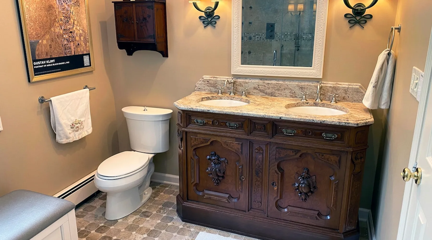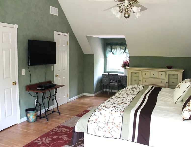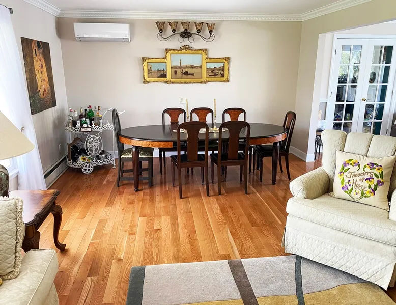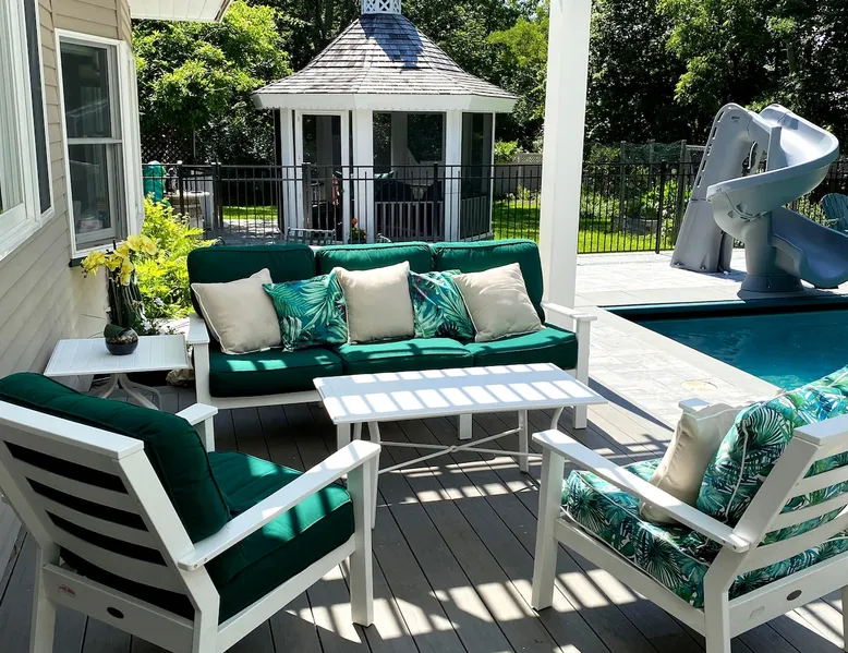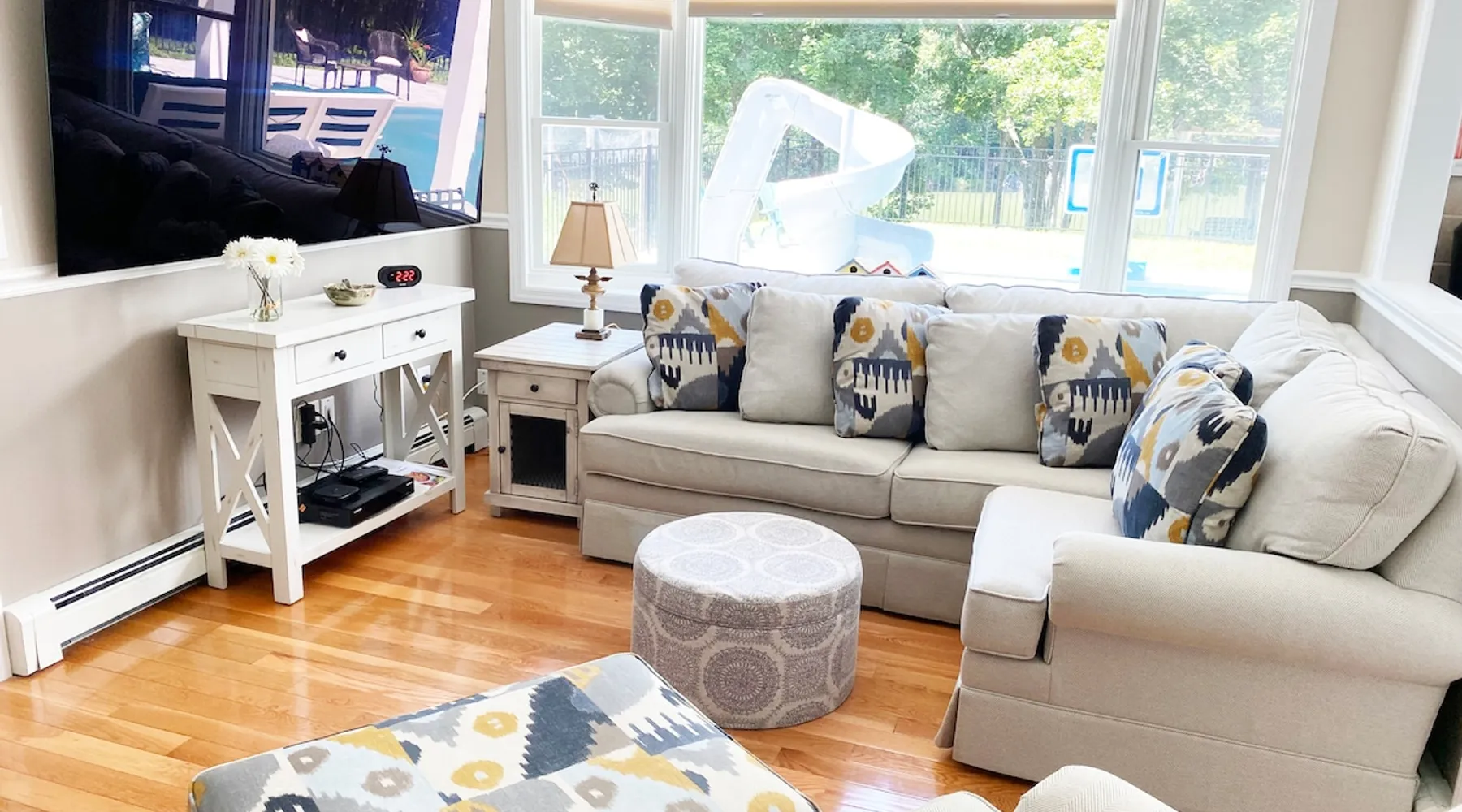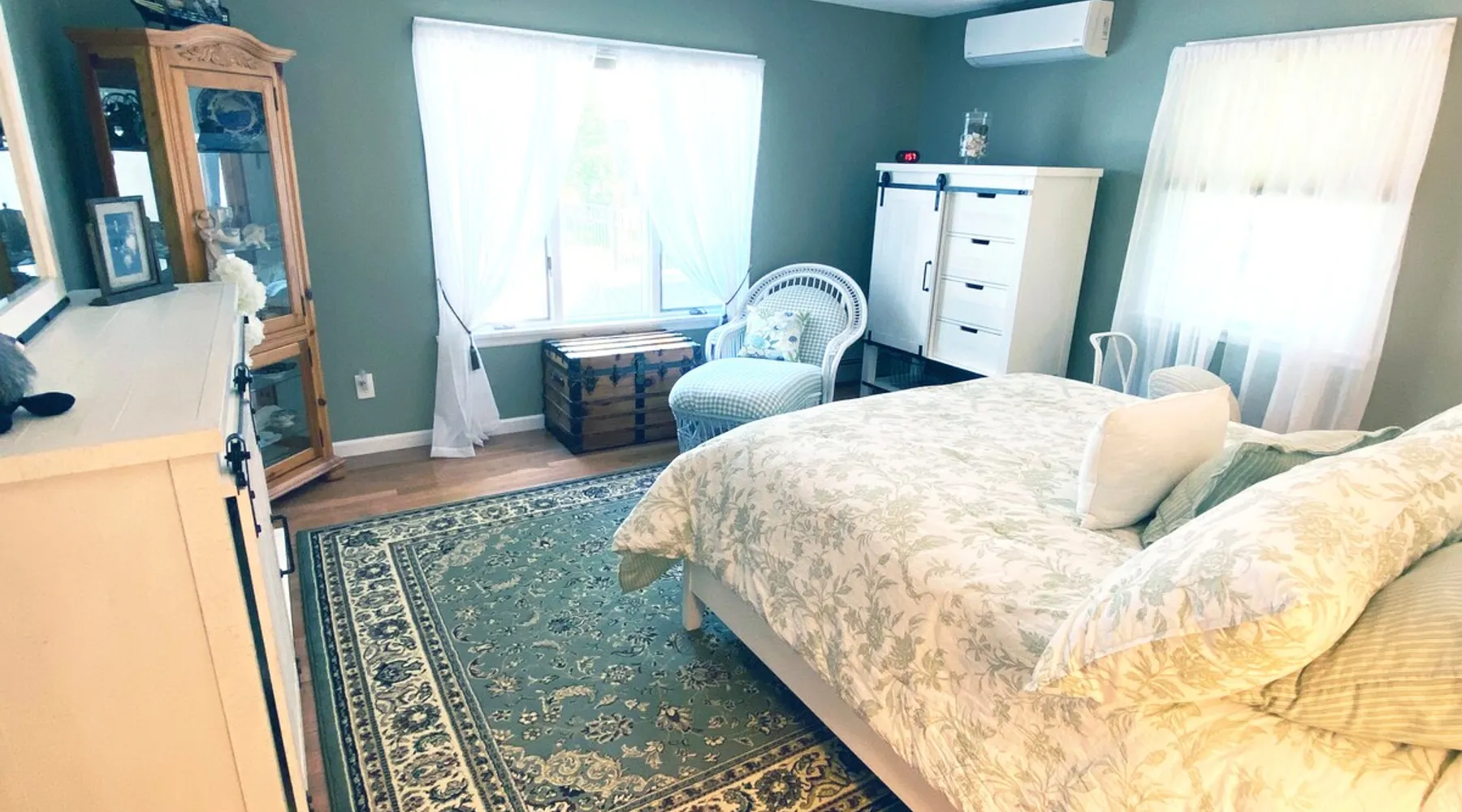 We bought our wonderful house six years ago and have made many important renovations. We just added a combination bocce ball court and putting green, right next to the amazing new gunite, inground, solar-heated, salt-water swimming pool with hot tub, helical slide and basketball hoop. They are built and ready for fun. The gravel driveway is now paved with asphalt and has two additional parking spaces. The space We are constantly making improvements to the property. Last year we rebuilt the back deck and pergola. We added a solar-heated swimming pool and spa. We upgraded the guest bathroom with a mural. We replaced the furniture in bedroom #3 with a gorgeous modern set and we updated the electric trains in the playroom. Some of the previous upgrades include solar power, full house air conditioning, a brand new master bed/bath, new decks in the front and back, a rear deck pergola, new rear deck furniture, new window shades throughout the house, central vacuum, a new panoramic kitchen window and door, a new Celestron telescope, a new Bosch dishwasher, major upgrades to the goldfish/koi pond, a new second floor washer/dryer, a newly tiled Jack & Jill bathroom, a 220V Tesla charger and 110V outlets for electric car charging in the garage. Three years ago we added a new 3-bed raised vegetable and flower garden. You'll be able to pick a fresh tomato or zucchini for your salad. We also finished painting the front porch, rear deck, pergola and swing. Then we removed two kitchen cabinets and the window to create the space for a gigantic panoramic window and door. The view from the kitchen is now breathtaking. Last year's improvements were the addition of a panoramic bay window in the TV room. We now have a wall of glass to view the backyard and the creek. We also rebuilt the gazebo and screened it in with a new roof and new railing. The new Celestron telescope is installed and operational. It's powerful and robotic, but fragile and complicated. It can be controlled from the TV room and viewable on the TV. If you want to use the telescope, you will have to hire a professional to spend the evening with you (by Zoom conference) and teach you and your children the use of the telescope and all of the features of the night sky. (I'll supply name, phone, email, rates, etc.) How cool will it be to see craters on the moon or the rings of Saturn or a distant galaxy? Our house has some very unique characteristics. It is very large, with two master bedrooms, equally wonderful, but different. The first one has a new bathroom with a large multi-directional spray shower and a double sink that rests on an 1880 French dresser. The second master bedroom has a beautiful sitting area and large bathroom with a combination tub/shower and a personal dressing table. The swimming pool is the hub of activity in the backyard. The kids will use the helical slide again and again and the basketball hoop is great fun. The side yards are big and good for children to run around and play while you BBQ out back or sip a cocktail on the deck or in the heated spa. You also have free use of the canoe. Downstairs there are two bedrooms, each with separate full baths, one being a newly tiled Jack and Jill connecting bathroom. One bedroom has a regular-sized crib, a portacrib and a pack-n-play. There is plenty of closet space as well. Upstairs also includes an office with a view of the creek. It has a convertible sofa, which I didn't list as a fifth bedroom, but could function as one. Some of the more unique features are a library with a spiral staircase, that leads to a large children’s playroom above the garage (which includes a wonderful set of Lionel electric trains and a dollhouse). Adjacent to the library is a TV room with comfy chairs and a set of barbell weights from 5 lbs to 25 lbs. The eat-in kitchen has all the standard and luxury amenities, including a new gas range, a new Bosch dishwasher, a microwave, a blender and a Keurig machine. There are very few bugs and mosquitoes (not none, but few). We sit on the back deck, with a glass of wine, until the sun goes down and don’t need bug spray. And we just added an outdoor ceiling fan that is very refreshing while blowing any bugs away. There's also a covered, two-seat swing next to the creek; a good spot to watch the ducks, swans and geese swim by. When it's quiet, you'll see deer and wild turkeys visit the property. The house is special and mainly for our family’s use, so we ask you to take good care of it. It's on a very quiet residential street, with very few cars. You'll be right in the middle of wine and farm country and right next to Greenport. The Orient Point Ferry to Connecticut is only 19 minutes away (possible day trips include a visit to Mohegan Sun). The south fork of Long Island is a hop and a skip away via Shelter Island ferries.