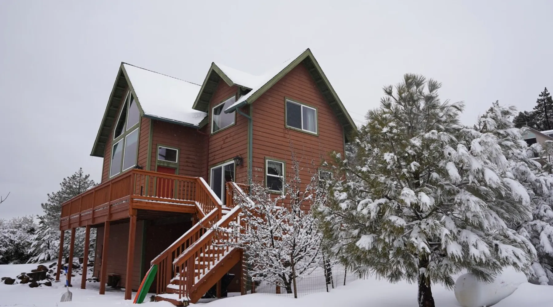 Looking for serenity? This beautiful, fully stocked home has an amazing view of Lake Cuyamaca and is a short drive to the historic gold mining town of Julian. A large kitchen and dining area have access to the redwood deck which stretches the length of the house, great for enjoying the unobstructed views. Have fun playing in the game-room, taking in the incredible views, & watching the wildlife venture by! We have WIFI internet, so you can stay connected during your get-away. The space We're new to AirBnB, but we've been renting the cabin as a vacation rental for decades! Please visit our website for more background information: hansenshideaway dot com The house features two queen beds and 4 twin beds. A large kitchen and dining area is ideal for cooking and gathering together with direct access to the redwood deck which stretches the front length of the house, great for enjoying the unobstructed views. Both the master bedroom and the loft have views of the lake. A fireplace is found in the family room, along with a HDTV, Roku media streamer in "guest mode" (you use your own streaming accounts), Blu-Ray/DVD player, and surround-sound audio system with bluetooth receiver. We have over-the-air HDTV and wireless internet, but not cable/dish. In the basement you will find the game room, where everyone wants to spend their time shooting pool, playing air hockey, foosball, a vintage Super Nintendo gaming system, or many of the table games. Younger kids will love setting up giant Brio train sets or using their imagination as they build fantasy worlds with the buckets of toys available to them. A washer and dryer are also located in the basement. The kitchen is fully stocked with all standard utensils, cookware, and appliances. Linens (towels and sheets) are provided for your use. We have central air and heating for your comfort, as well as a wood burning fireplace; wood is NOT provided, so please be sure to bring your own or purchase some at the lake or in town. Please be aware that the cabin is on septic and the septic system cannot handle volume of use beyond the listed occupancy. We cannot accept requests for parties, wedding receptions, or any other gatherings of people for this reason. There is no public refuse collection and the county closed the nearby dump - most residents carry their trash out with them when they go "down the hill". Since we are not a hotel, it can be days between guest departure and when our housekeeper arrives. Trash left behind invites insects and bad smells if indoors, animals tear it apart if left outdoors. Thus, trash needs to be taken with you when you leave, which is not uncommon for cabin rentals. We have a powered trash compactor and provide bags, it does an amazing job of minimizing the size of your trash! Guest access The entire house is available to you; locked cabinets in the basement are off-limits, however, as is the shed in back of the house. Other things to note All times of the year offer something unique! Fall and winter are the most popular for the local San Diegans to visit the mountains due to the fall colors and 'Apple Days' in Julian, as well as the snow and cold weather that can come with winter. Spring can be beautiful as the hills turn deeply green and flowers are in abundance. Summer offers warm evenings that are easily spent on the deck marveling at all the stars which you just can't see from urban areas. Wildlife will visit throughout the year, including deer, wild turkey, racoons and birds of many varieties.