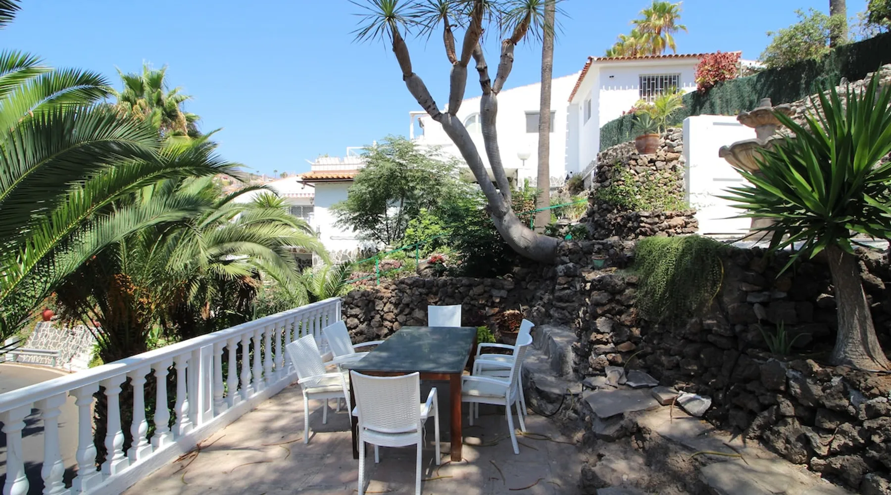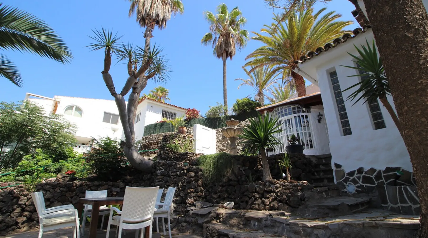 Nice canarian style house in Chayofa just 10min by car to playa las vistas beach and Los Cristianos or Las Americas. There is very nice and green area around with a lot of palm trees and tipical canarian plants. The house has 25m long community pool, 2 bedrooms, 2 bathrooms, 2 dining rooms, fully equipped kichen. Here is sofa bed in living room. You can enjoy your diner in a cozy garden under canarian pin tree and drago tree, listening spanish live music from local restaurants. Registration Details Canary Islands - Regional registration number VV-38-4-0092085 Spain - National registration number ESFCTU0000380160001877120000000000000VV-38-4-00920850
