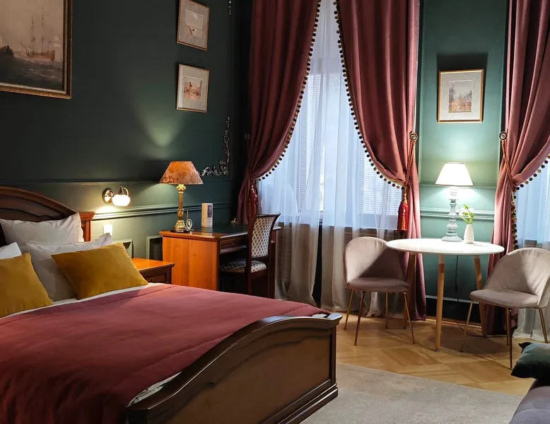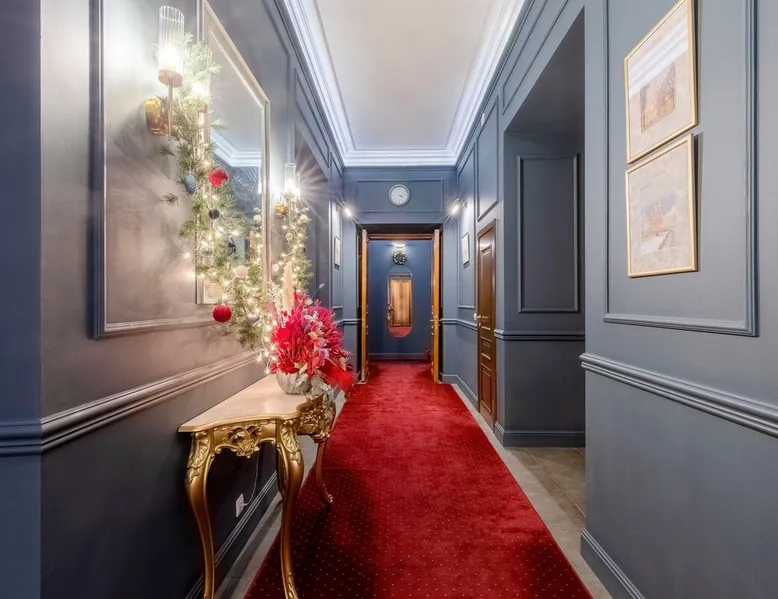 Cozy, stylish , there is everything, even more. The spacious studio is part of the OM complex, includes a large double bed, a convertible sofa, a kitchenette with dishes and accessories, a bathroom(shower) with a toilet. The windows overlook a typical St. Petersburg enclosed courtyard, calm and quiet. In summer there is no exhausting heat, great ventilation system and no direct sun. For lovers of white nights, wide granite windowsills with cuddles, from the windows you can see the city salute. The space The aparthotel is part of the OM apartment complex, located on Millionnaya Street, connecting Dvortsovaya Square and the Field of Mars. Beautiful building in the very center of historical center, the last reconstruction of the mid-19th century. At different times, various famous historical figures lived or worked there. High ceilings, lepnina, a fireplace, and rare artifacts with a thoughtful setting and a more convenient location will make your stay amazing, informative, comfortable, and enjoyable. After passing through the wrought-iron gate, turn left, the entrance is on the left, from the yard. We go up to the 2nd floor. Here you will be greeted by a host or receptionist ( 24-hour desk), familiarize you with the rules, hand over the keys, and escort you to the studio. Each of them is unique, equipped with a kitchenette, dishes, a ventilation system,a bathroom made of natural stone with a heated floor,modern smart TV with a large diagonal, linen, towels, bathrobes, equipment. Guests on the premises are provided with free Wi-Fi, cable TV, tea , coffee. Guest access Studio opens to a common corridor. A washing machine with detergents and rinsers is in a common space(₽) Other things to note There are more than 2 guests to let them know in advance. The use of the fireplace is possible after passing the instruction for an additional fee( firewood + additional cleaning)